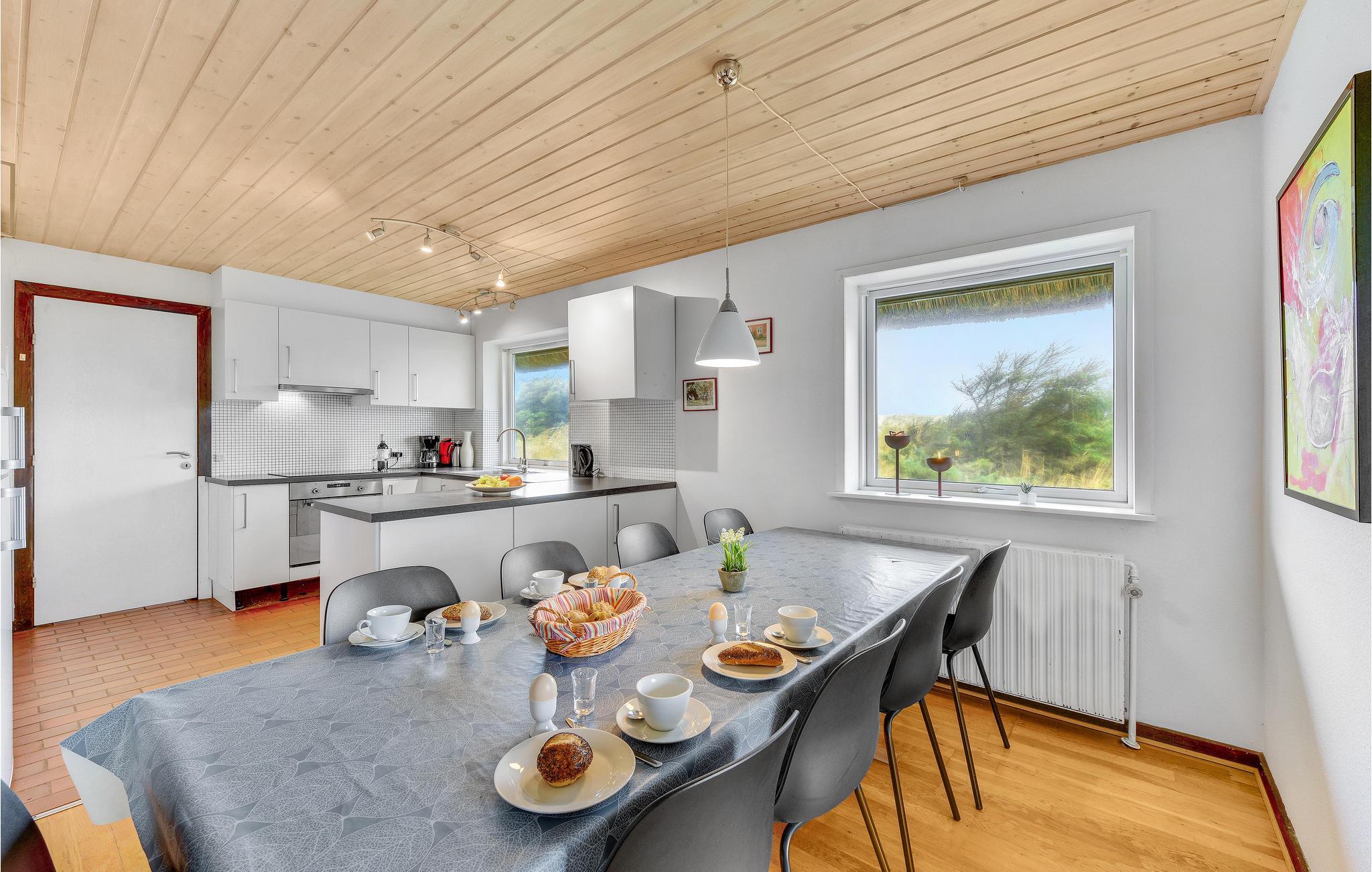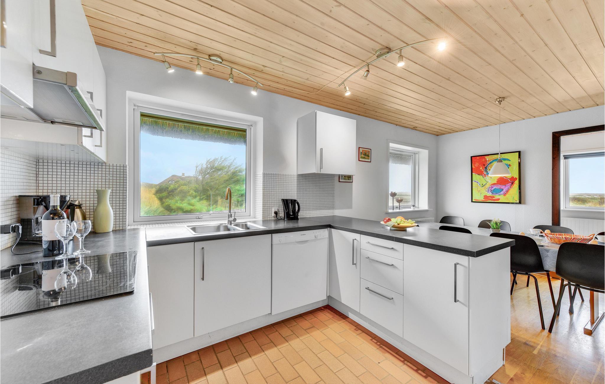 Ønsker I et stort feriehus til en aktiv familie samt en god beliggenhed, kun et stenkast fra det brusende Vesterhav? Så er dette hus måske lige noget for jer. Feriehuset er meget simpelt indrettet med funktionelle møbler. På 1. sal er der et stort aktivitetsrum med bl.a. billiard, bordfodbold og bordtennis, her ligger ligeledes 2 af de 5 soveværelserl.
