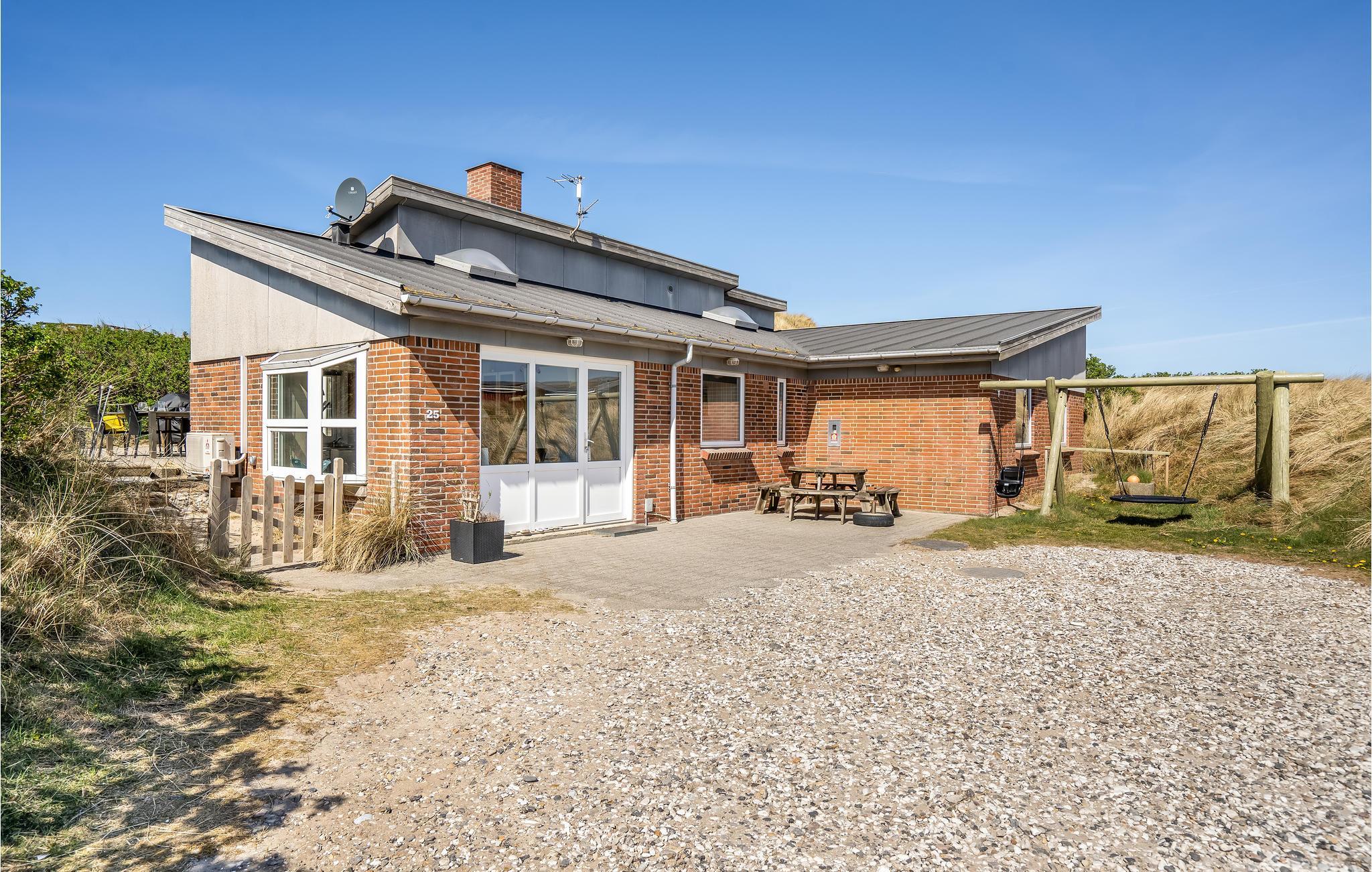 Glæd jer til en afslappende ferie i fantastiske omgivelser. Dette velindrettede feriehus har nemlig en forrygende placering på en dejlig grund i klitterne og blot 250 meter fra det brusende Vesterhav. Huset har plads til 10 personer, som kan brede sig i det store hus. Året rundt er huset en god base, for også i vintermånederne kan jeres børn få timevis til at gå med at pladske i indendørspoolen, mens de voksne kan læne sig tilbage i spabadet. Stuen giver jer en hyggelig ramme om måltider og rolige aktiviteter, og når solen er fremme venter der en god terrasse, hvor I kan grille.