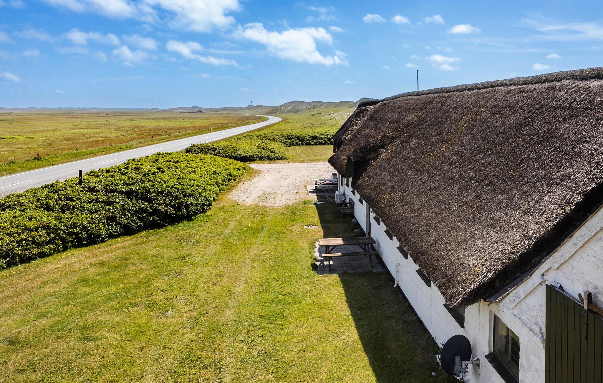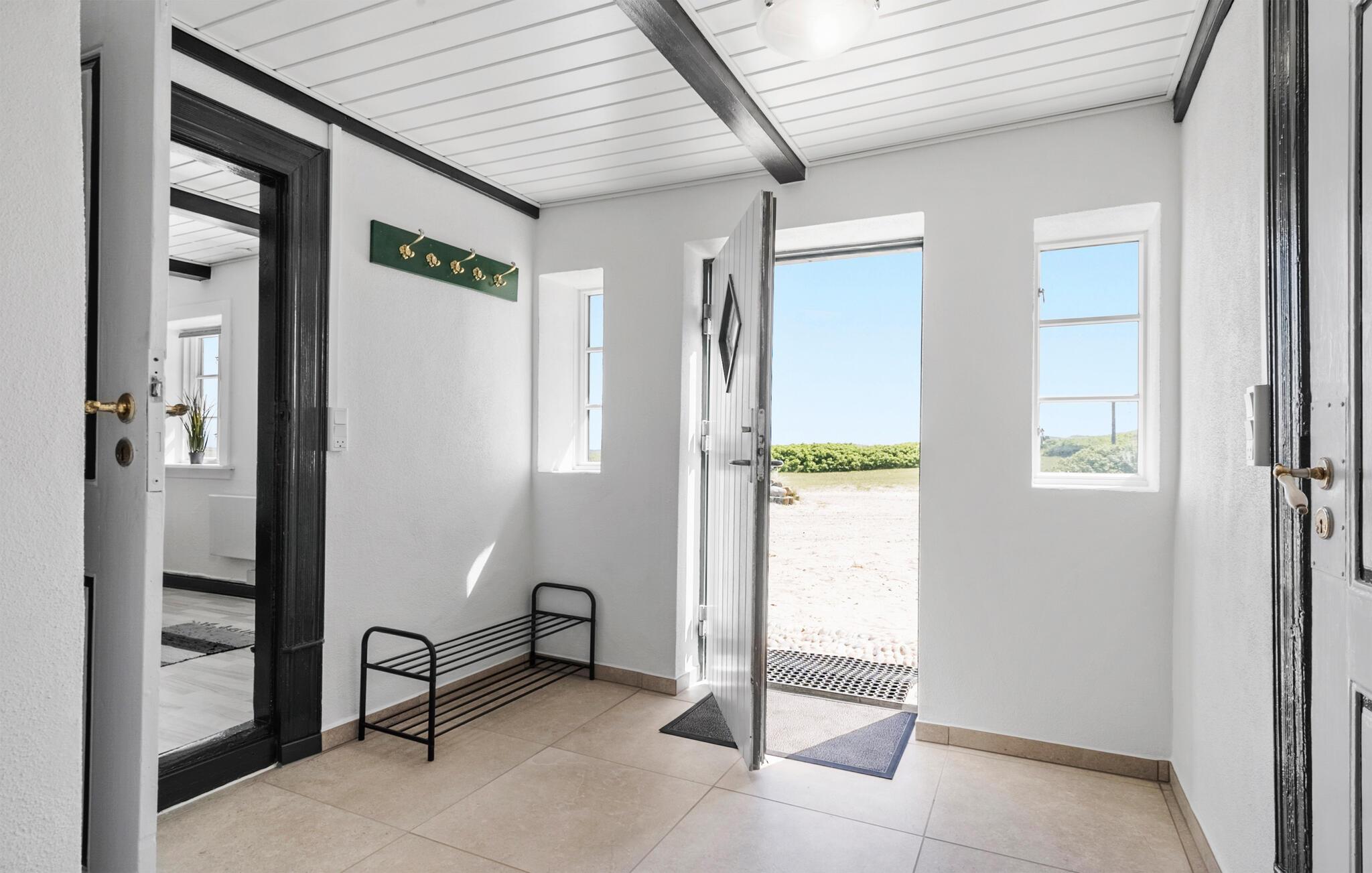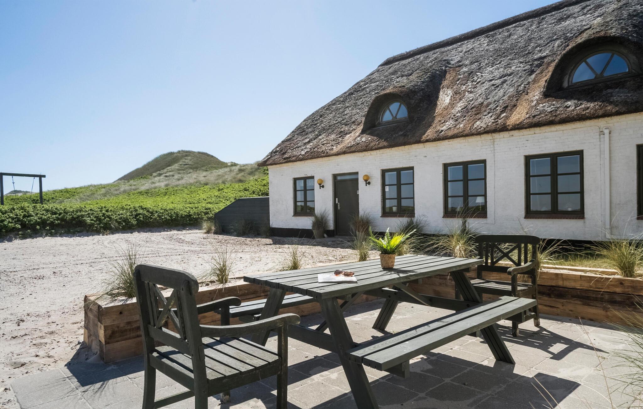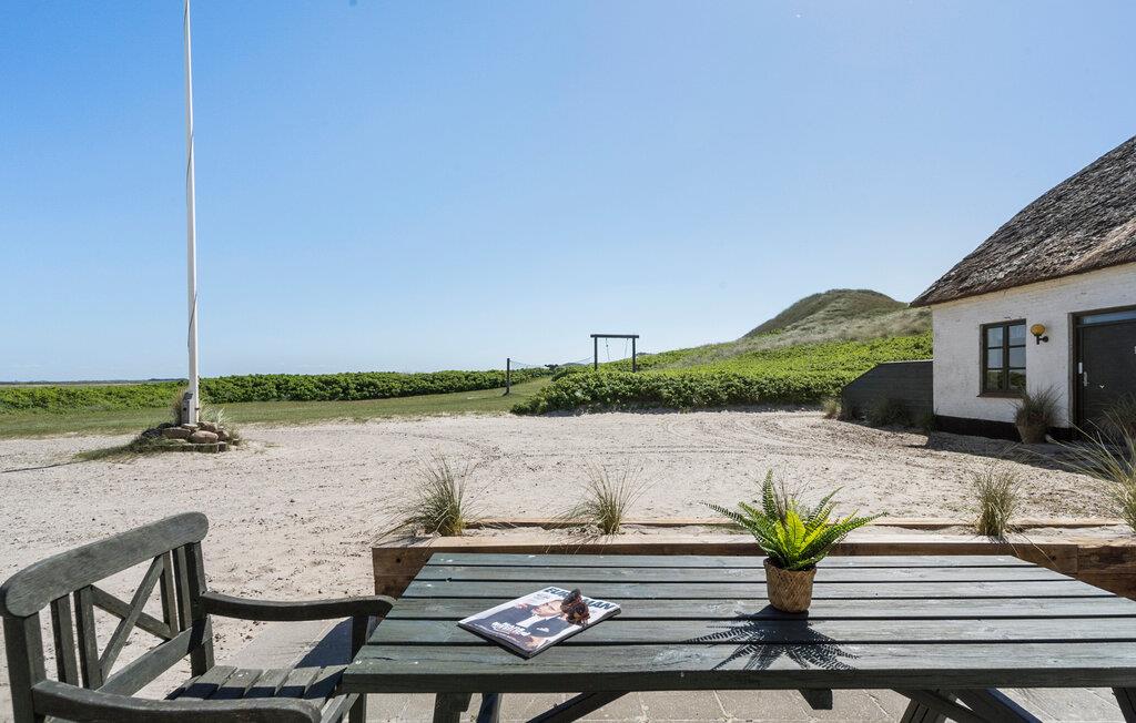 I første klitrække i Houvig ligger denne ferielejlighed, som er det ideelle udgangspunkt for en ferie tæt på naturen. Den direkte adgang til stranden giver jer mulighed for afslappede gåture og gode timer i den friske havluft. Fra terrassen kan I nyde en imponerende udsigt over havet og Vest Stadil Fjord. Inde i lejligheden finder I plads til hele familien. Den lyse opholdsstue emmer af fine detaljer, der gør noget ekstra ved feriestemningen. Nyd en middag med kig til de fritlagte bjælker og sæt jer til rette i de nøje udvalgte møbler, som passer ind i husets historie.