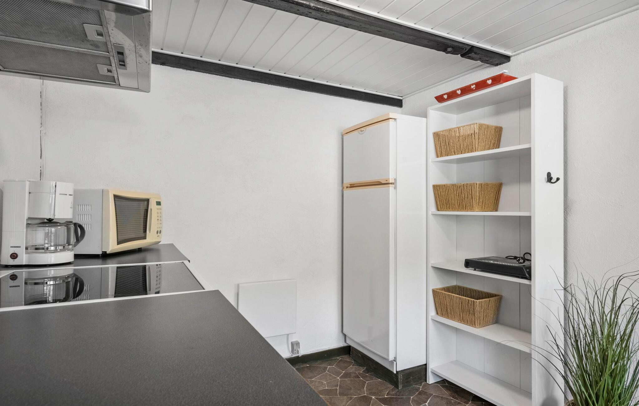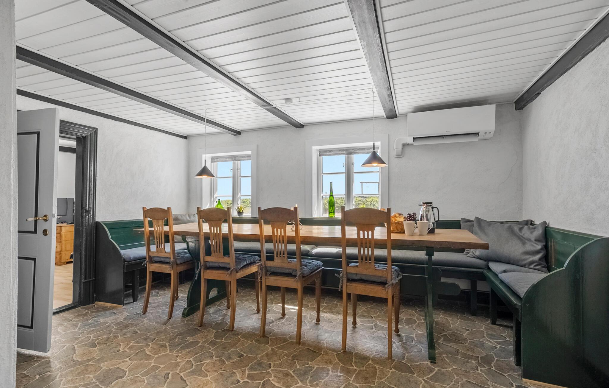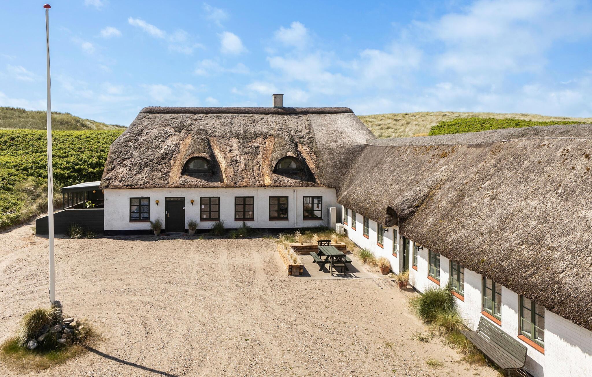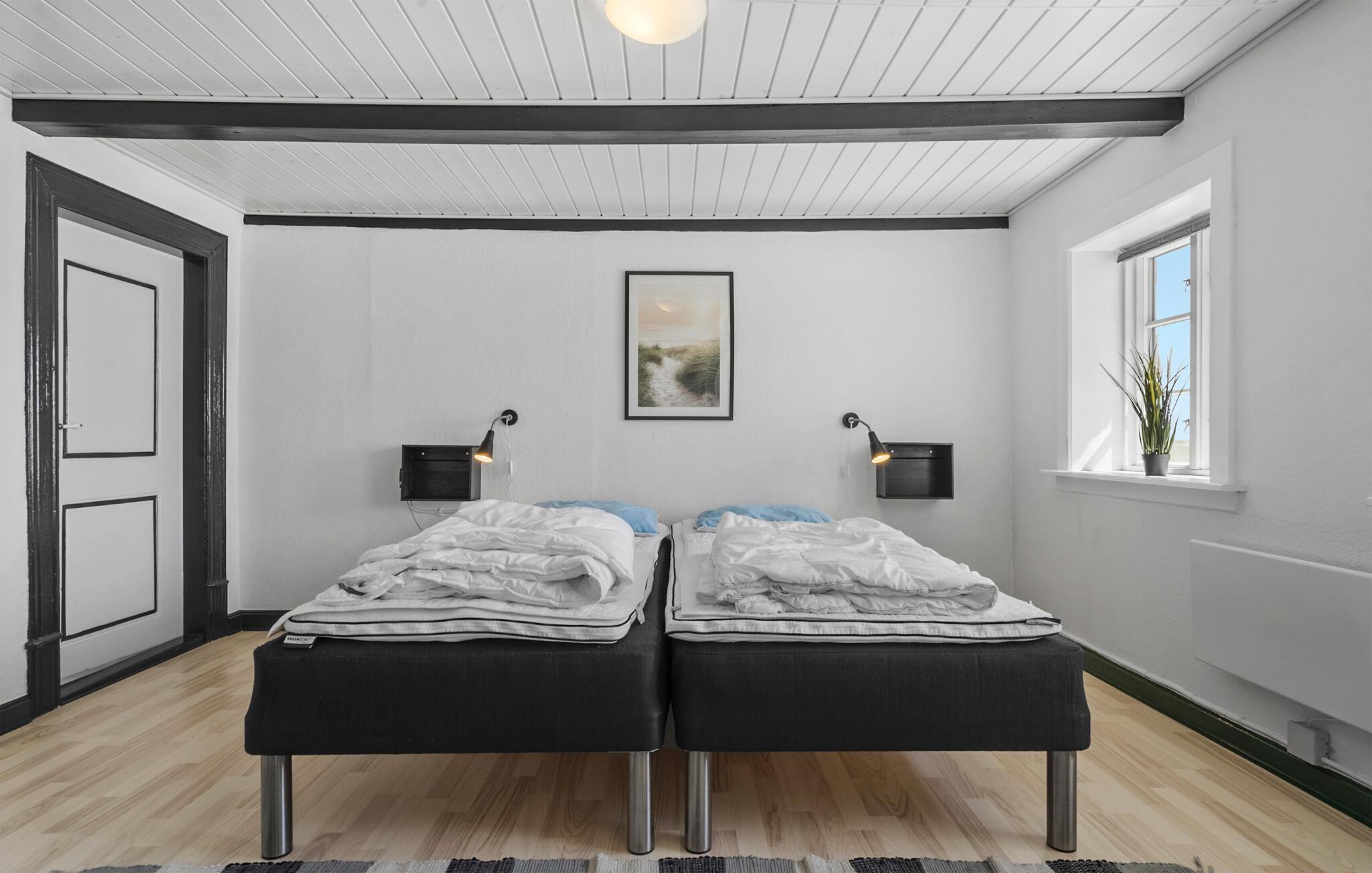 I første klitrække i Houvig ligger denne ferielejlighed, som er det ideelle udgangspunkt for en ferie tæt på naturen. Den direkte adgang til stranden giver jer mulighed for afslappede gåture og gode timer i den friske havluft. Fra terrassen kan I nyde en imponerende udsigt over havet og Vest Stadil Fjord. Inde i lejligheden finder I plads til hele familien. Den lyse opholdsstue emmer af fine detaljer, der gør noget ekstra ved feriestemningen. Nyd en middag med kig til de fritlagte bjælker og sæt jer til rette i de nøje udvalgte møbler, som passer ind i husets historie.