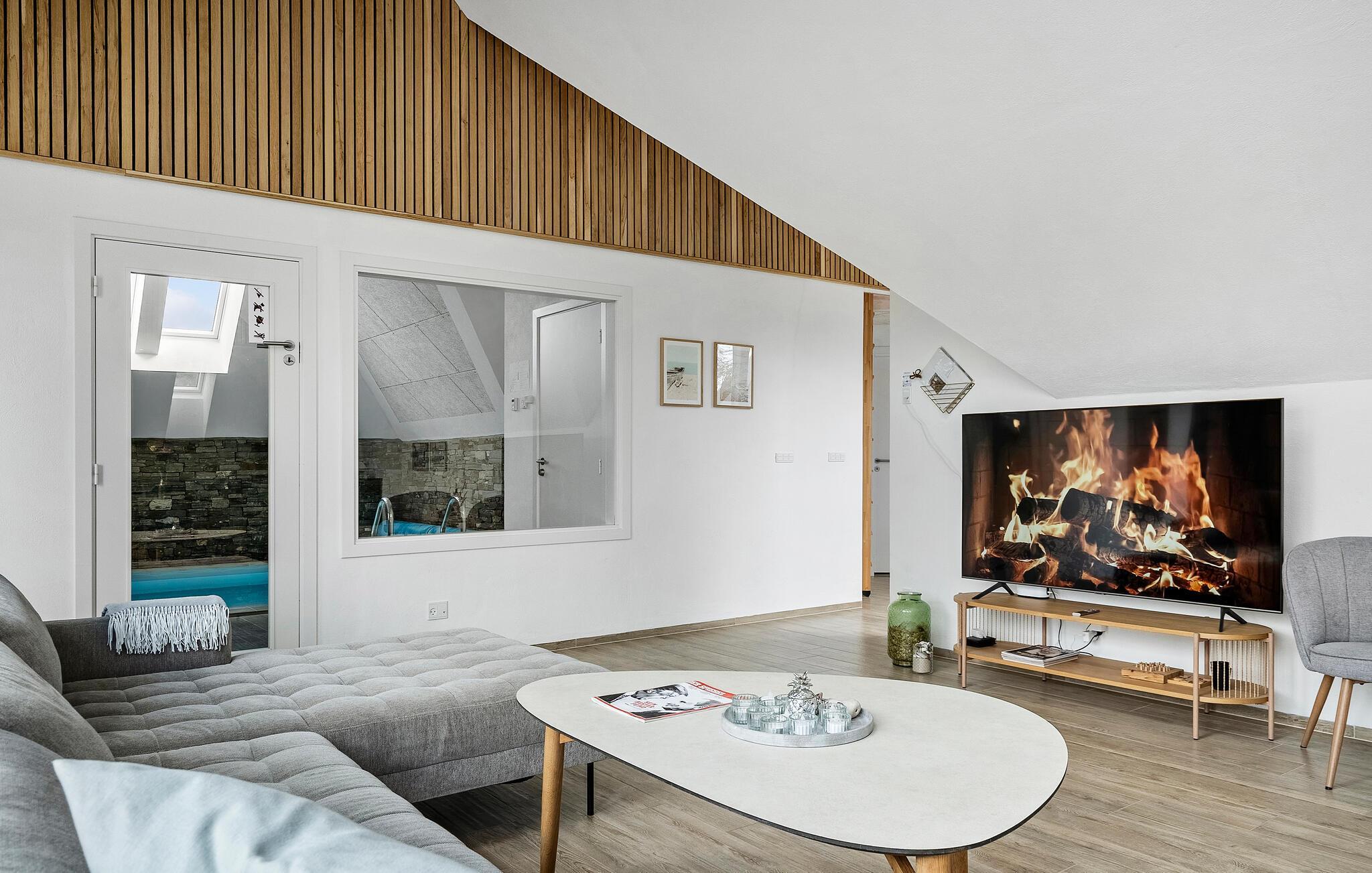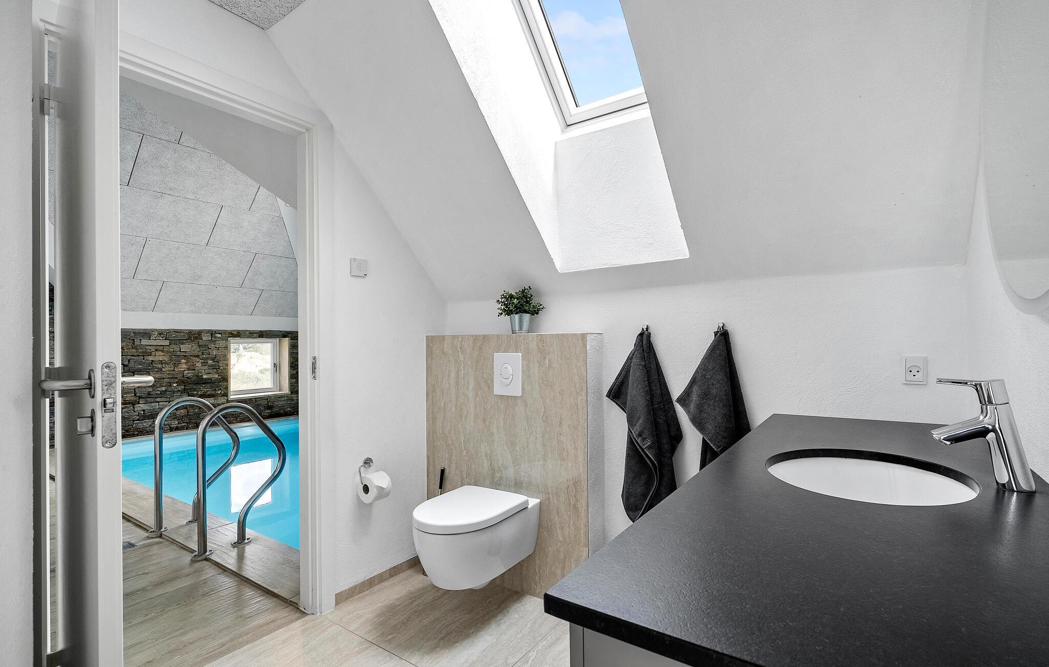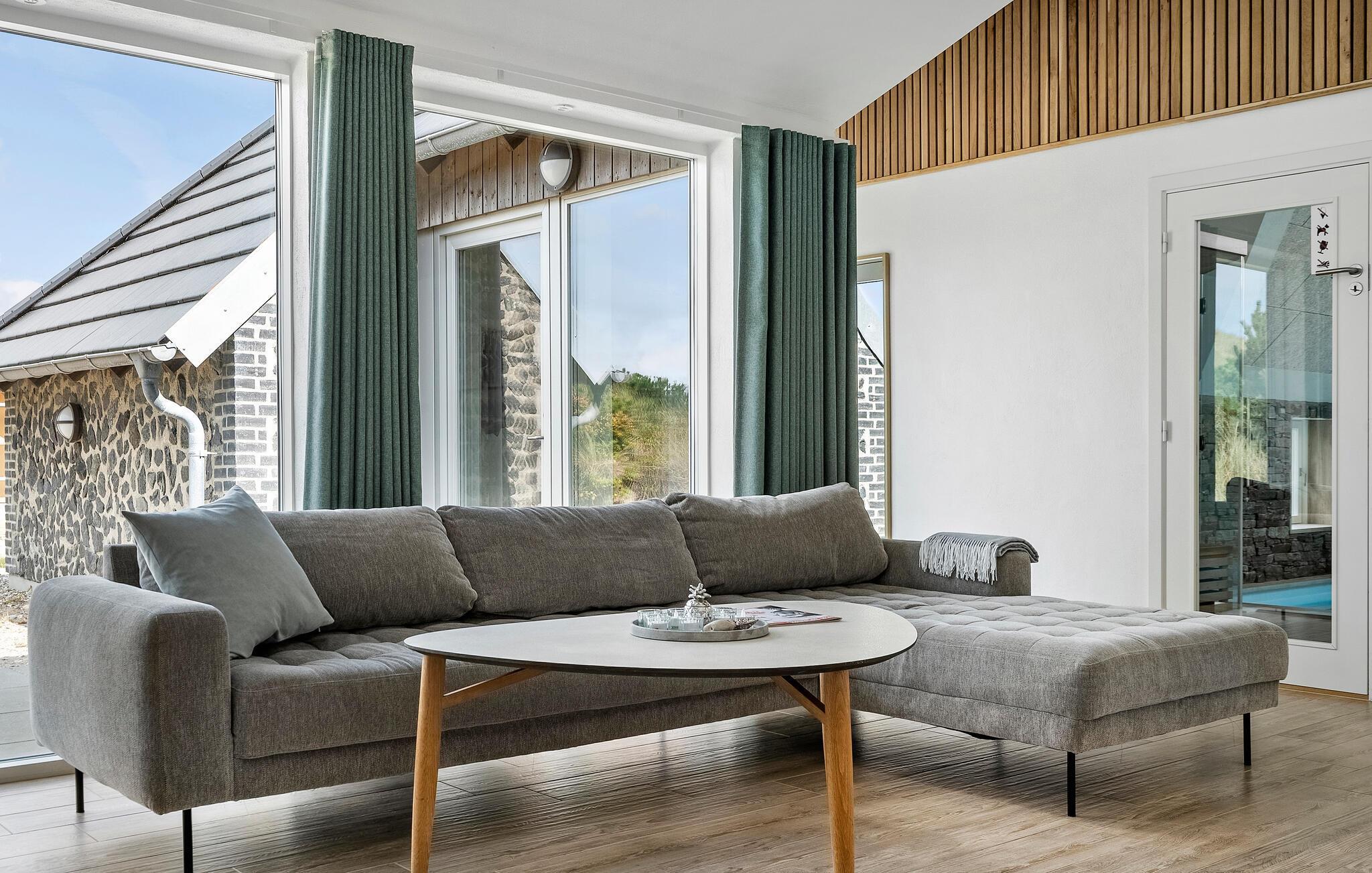 Dette malerisk beliggende hus lægger op til en førsteklasses ferie. Store vinduer, smukke træelementer og elegante indretningsløsninger skaber en indbydende atmosfære, hvor I hurtigt kan lade batterierne op. Lyt til god musik eller tilbring en hyggelig filmaften med familien. Hvis I er mere aktive, kan I hoppe i den indendørs pool eller slappe af i saunaen.