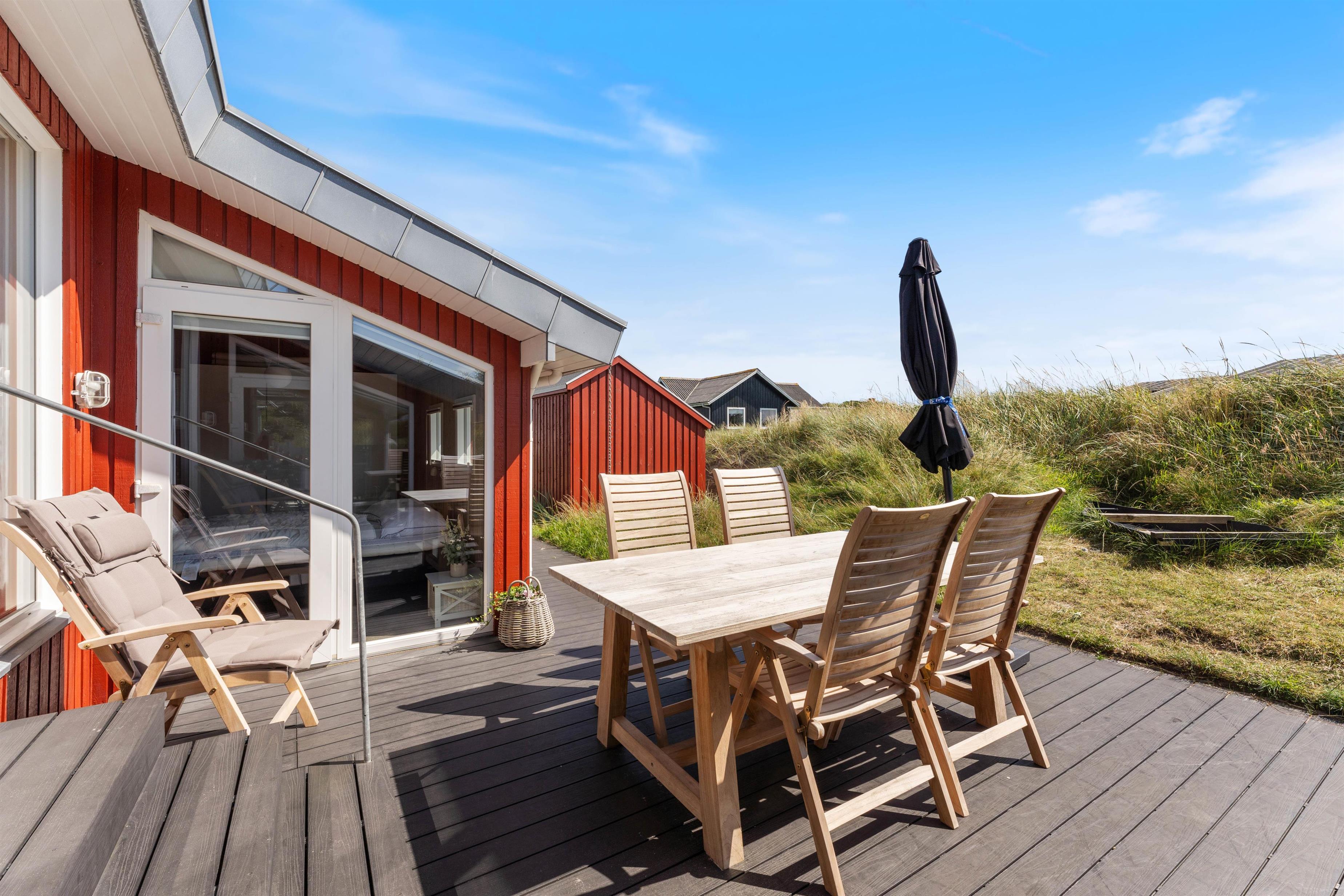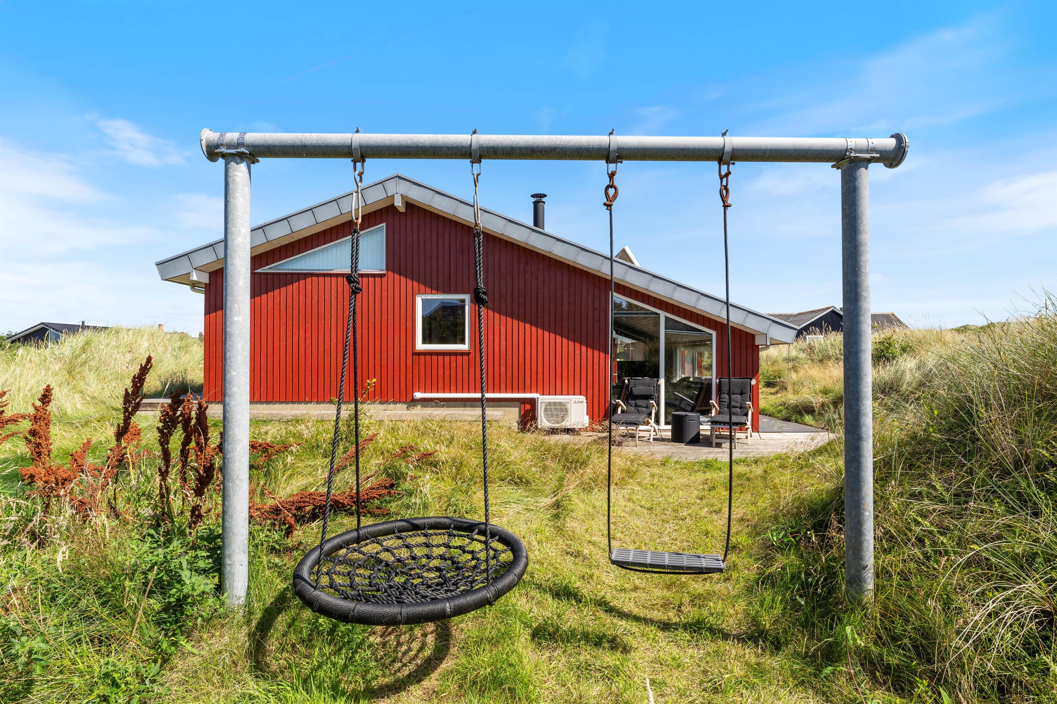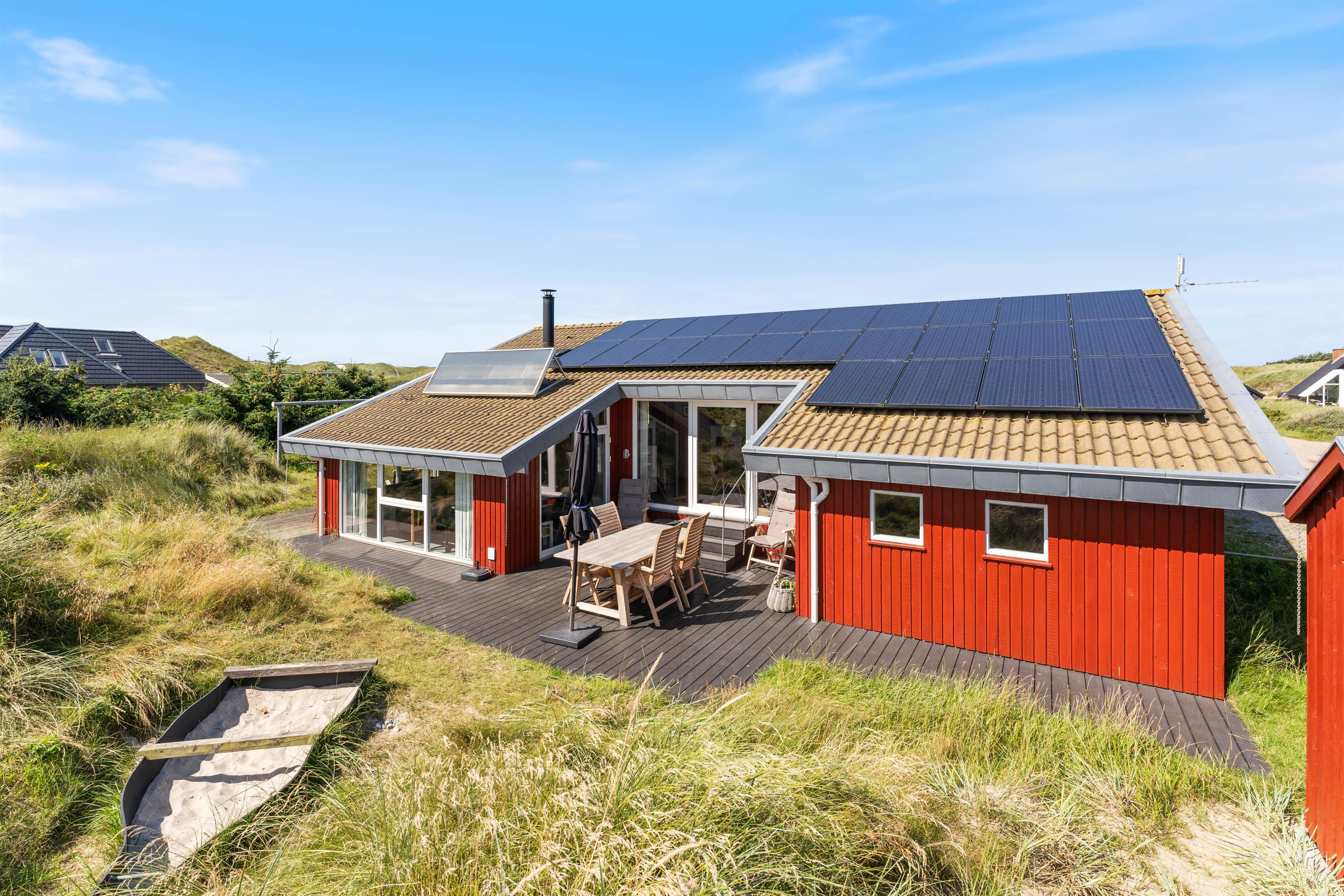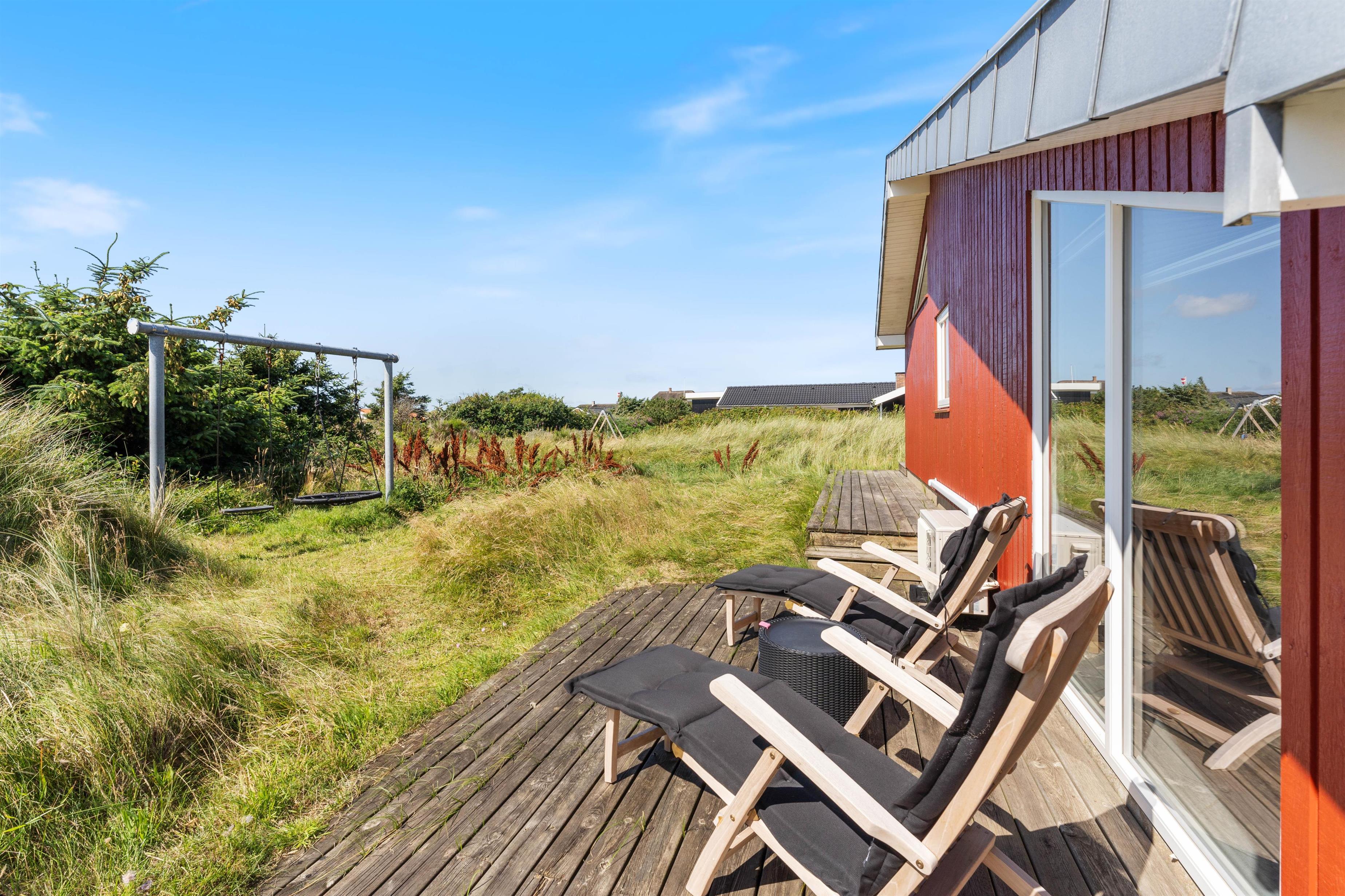 Der er en skøn udsigt til klitterne fra naturgrunden og man kan ligeledes se klitterne fra den sydvendte terrasse. Der hører en gynge og en sandkasse til huset. Houvig er et dejligt og kuperet sommerhusområde. Grundende er generel større end i mange andre områder, og så er der ikke langt til det brusende Vesterhav. Sommerhuset, grunden og området er ideelt for familier med børn og hunde.