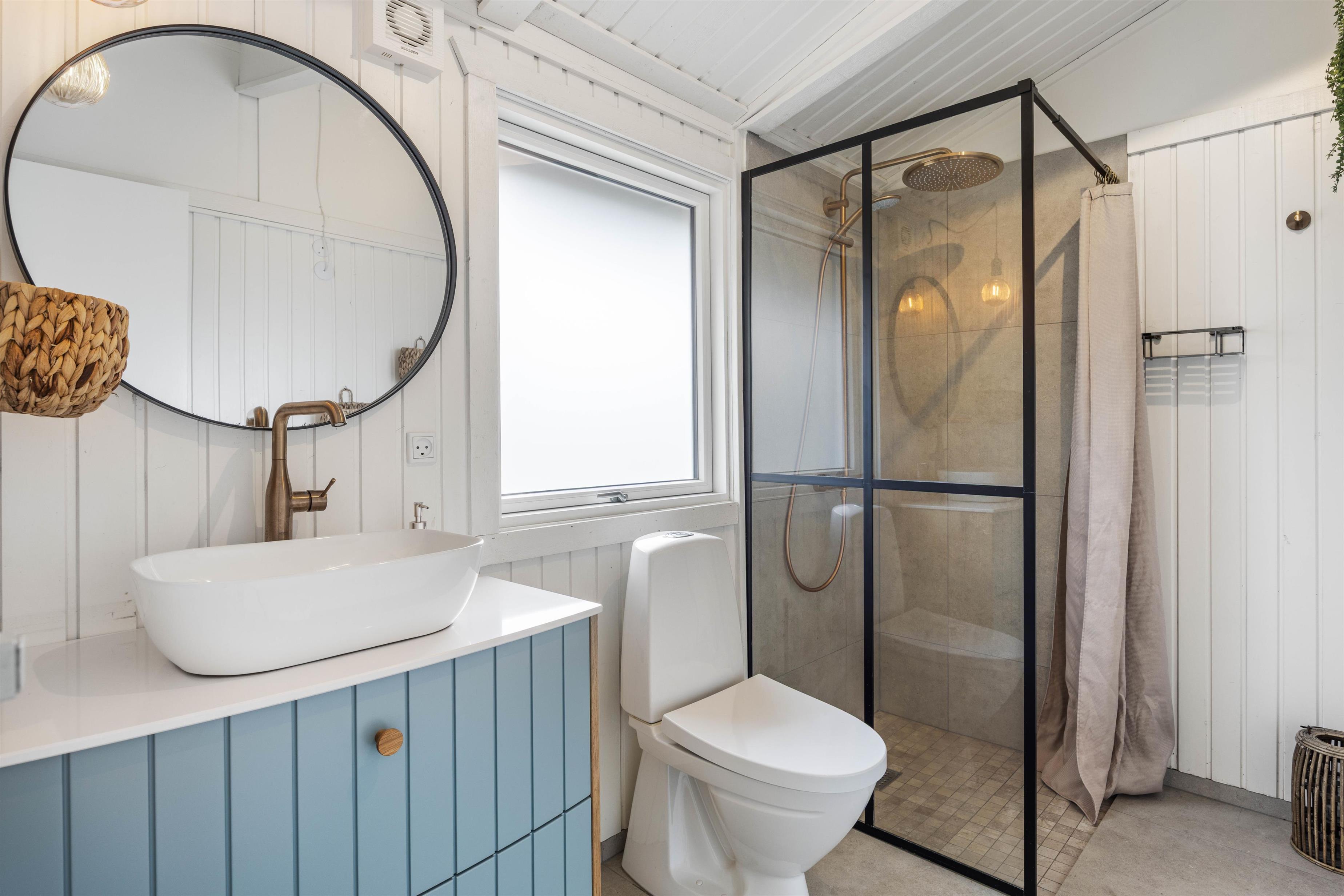 Feriehuset er omgivet af en lækker afskærmet terrasse, og der er altid en læfyldt krog at finde. Den delvist overdækkede, lukkede terrasse mod syd er det perfekte spot til en grillmiddag i aftensolen, og den praktiske gasgrill sørger for, at der hurtigt kan tilberedes en lækker rød bøf på grillen. Skal det være ekstra hyggeligt, kan I tænde op i bålstedet foran sommerhuset og bage snobrød over ilden.