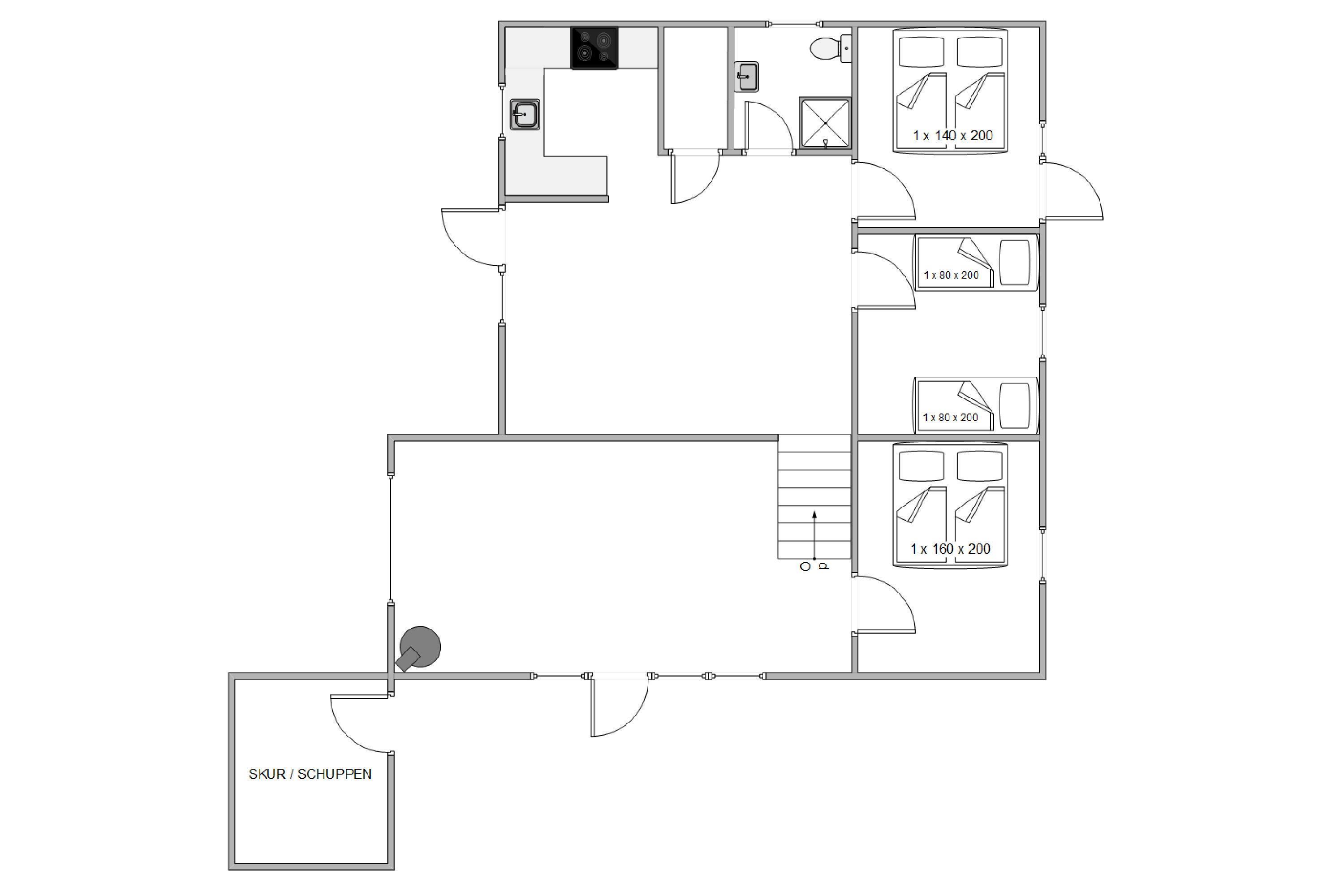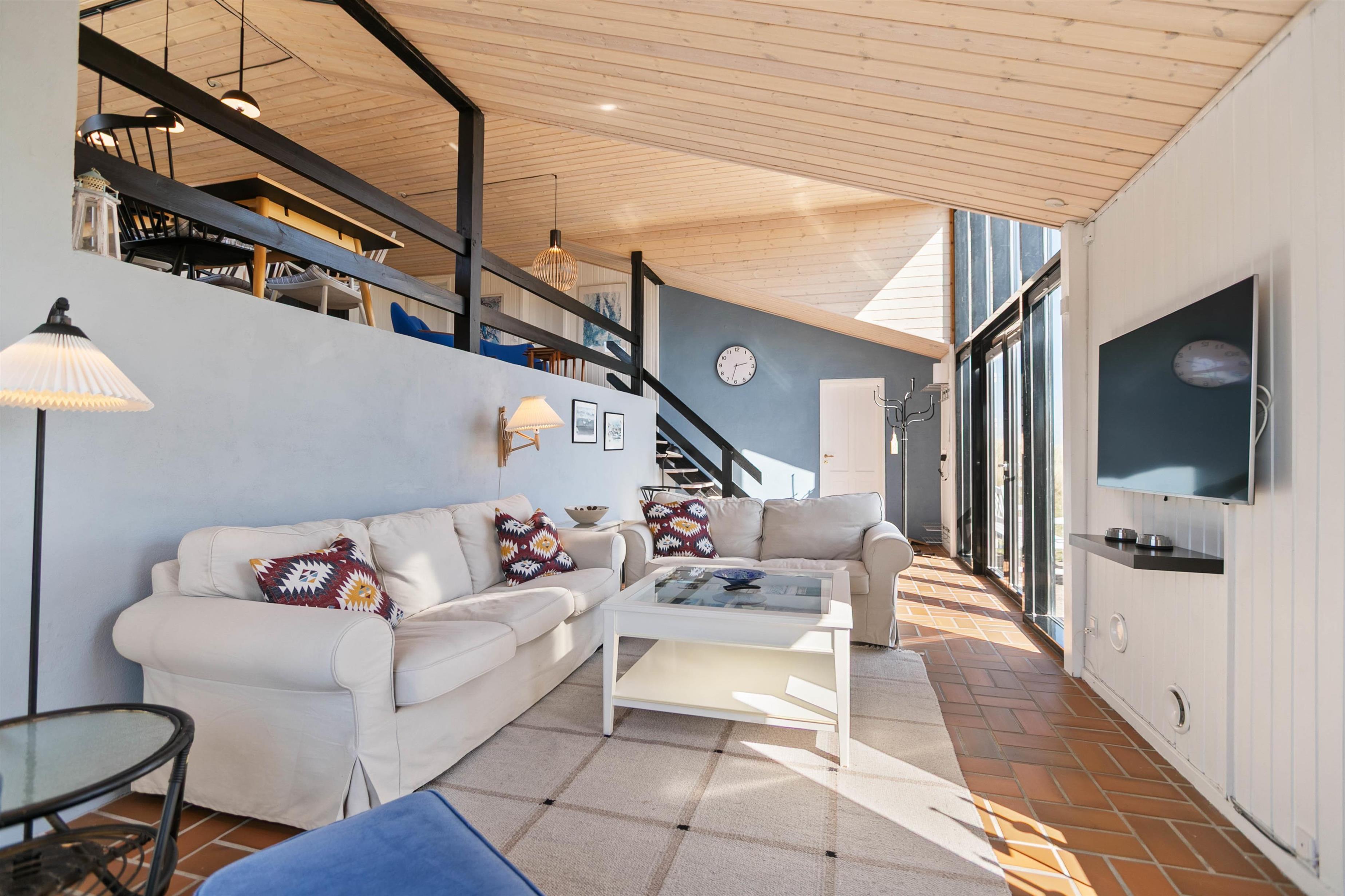 Især stuehjørnet udstråler sommerhusferie i hyggeligste stil, og i de behagelige sofaer kan I slå jer ned med et spil kort og en kop friskbrygget kaffe, eller en god film og en hjemmelavet gang popcorn i de sene aftentimer, med brændeovnens hyggelige knitren i baggrunden og masser af feriestemning i luften.
