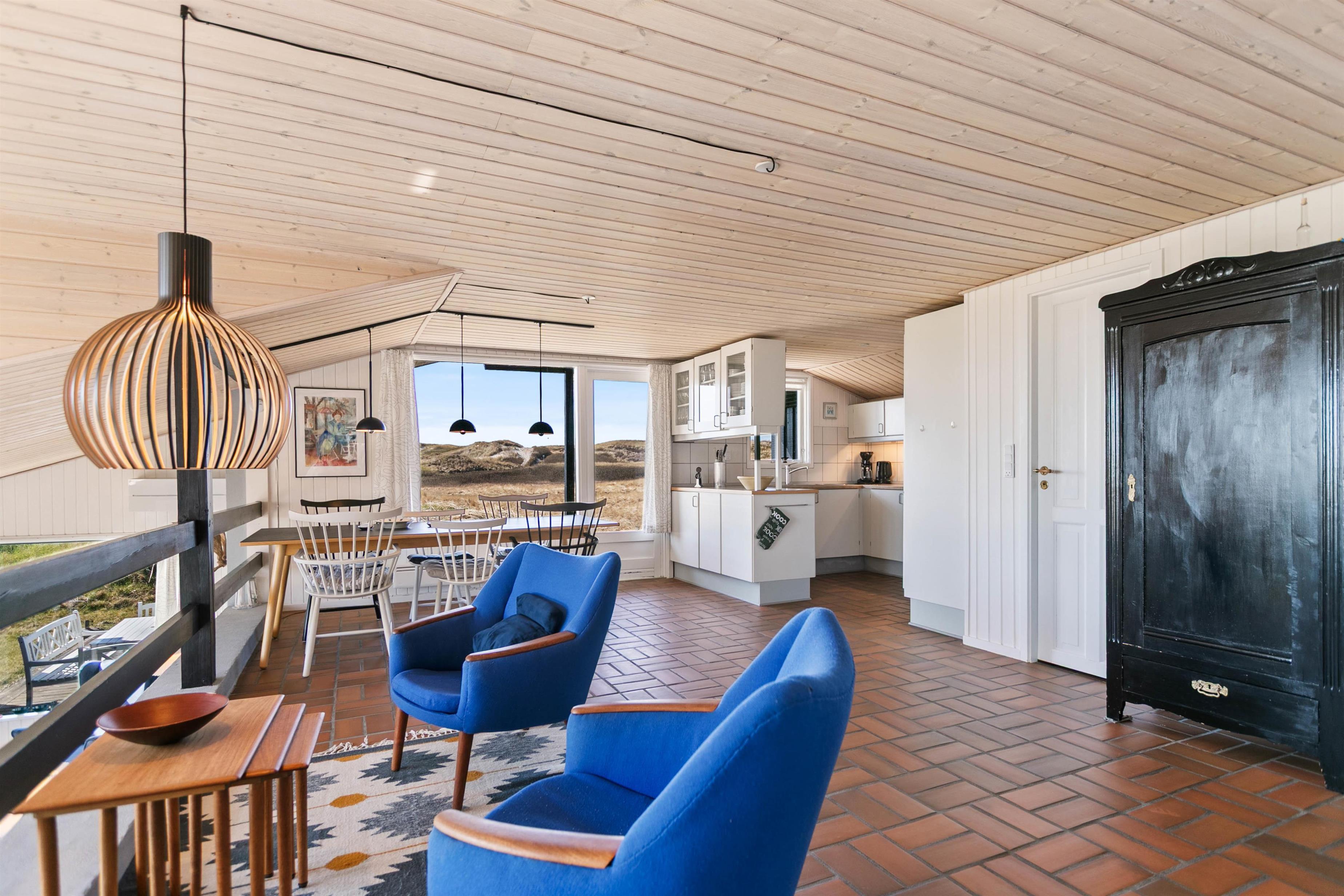 Ud over en fredelig beliggenhed med masser af privatliv, ligger huset kun 150 meter fra havet - så tæt på, at de brusende bølger kan høres helt fra terrassen. Gennem det smukke vestjyske klitlandskab når I den kilometerlange sandstrand, der er perfekt til lange gåture, badeudflugter på varme sommerdage og bare ren afslapning.
