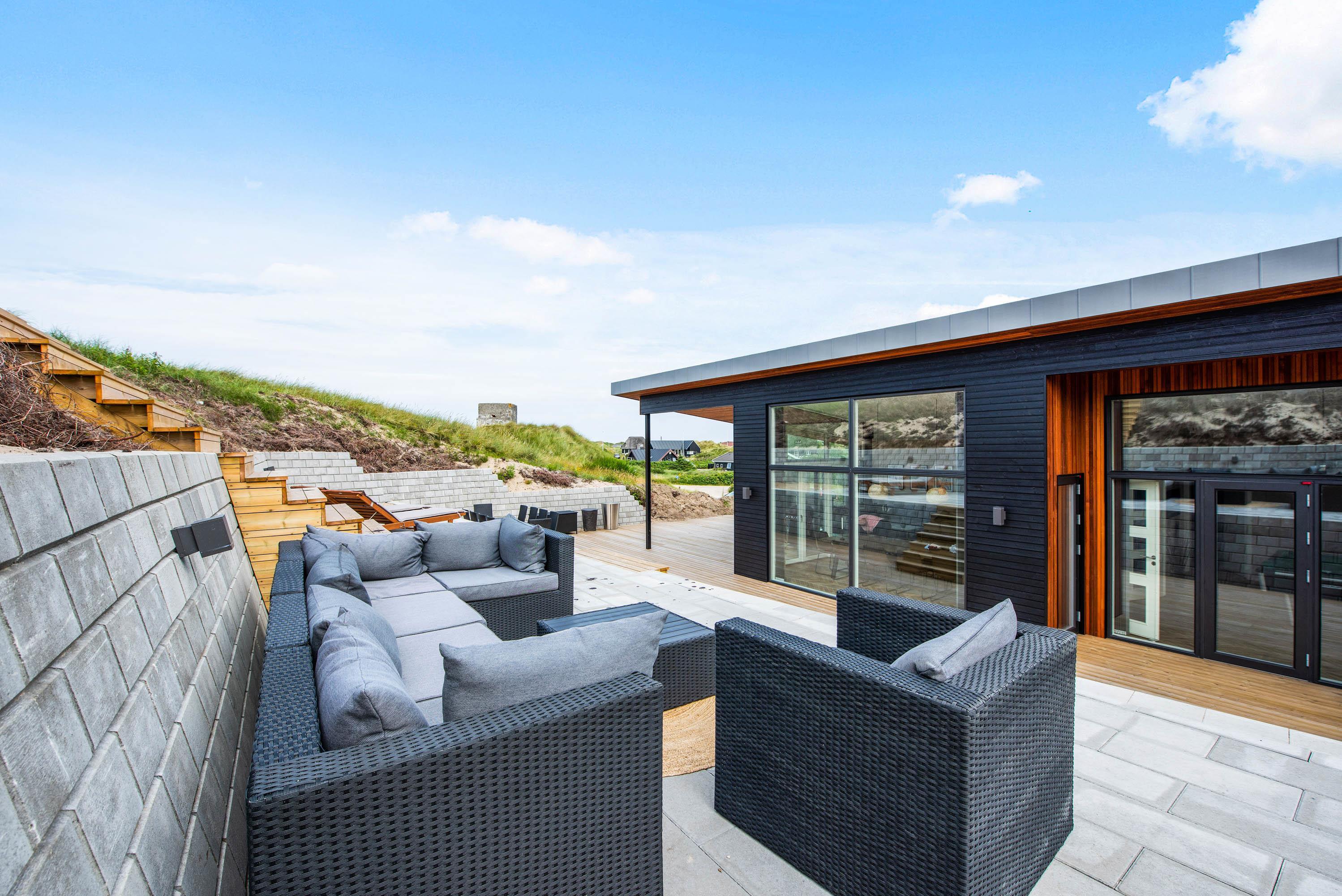 Dette femstjernede aktivitetshus kun 300 meter fra stranden rummer plads til otte personer (og to hunde) og er helt ideelt til en underholdende og afslappende ferie ved Vesterhavet. Feriehuset har alt, hvad hjertet begærer – lige fra sauna og spabad til flere lækre terrasser med udendørs spabad og udendørs bruser og aktivitetsrum med billardbord.