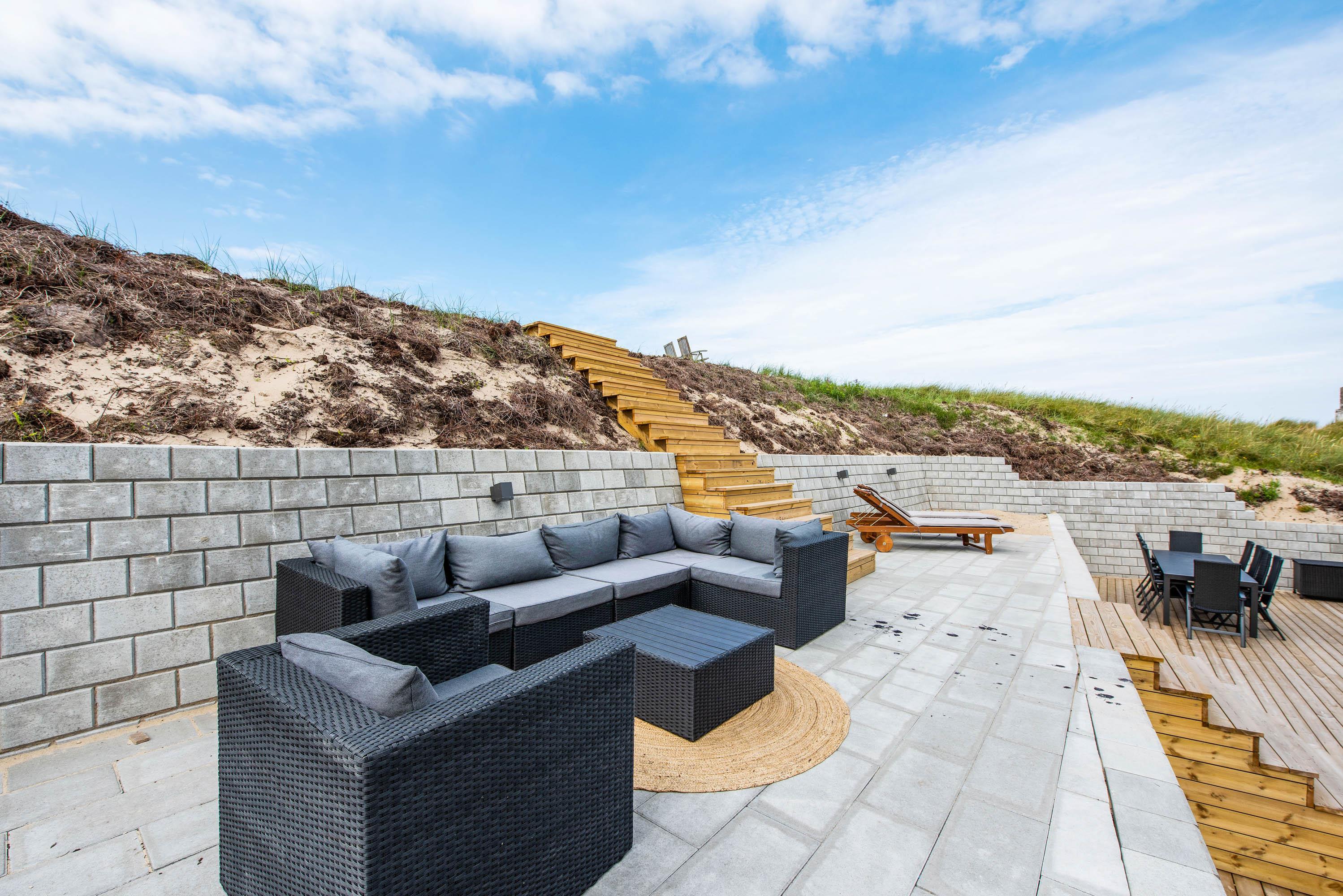 Flere gode terrasser med udendørs spabad, overdækning og få minutters gang til stranden