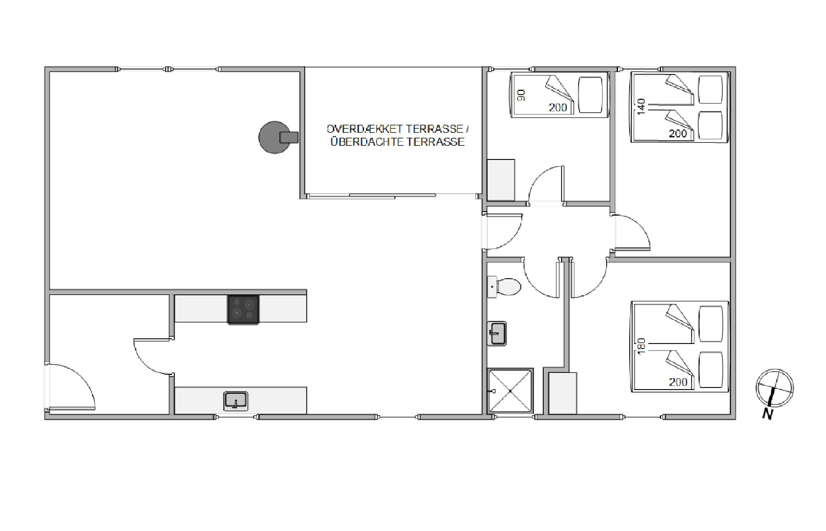Feriehusets 88 m2 er fordelt på et køkken, en spise- og opholdsstue, et badeværelse og tre soveværelser. I køkkenet kan I tilberede lækre måltider, mens I planlægger feriens aktiviteter. Eller I kan hygge jer i sofaen om aftenen foran brændeovnen med en god bog eller en god film. Varmepumpen i huset sørger for en behagelig temperatur samtidig med en energibesparende opvarmning.
