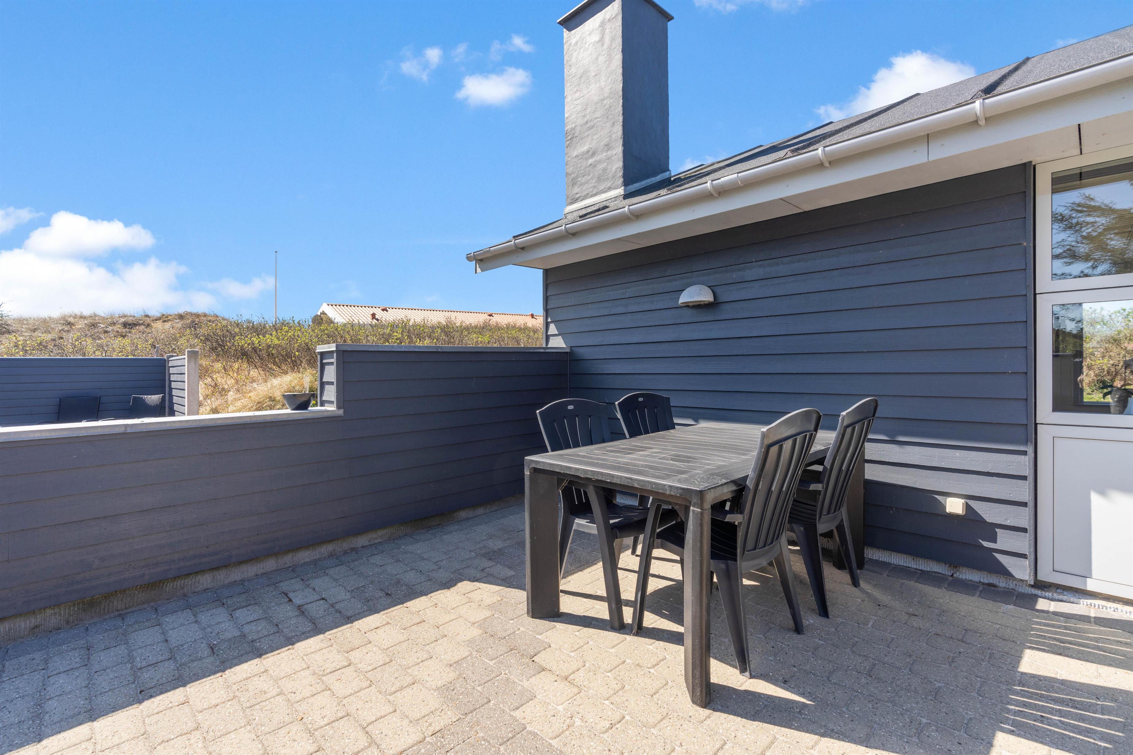 En af de helt store bonusser ved sommerhuset er dets beliggenhed. For i løbet af ganske få minutter til bens er det muligt at komme til Vesterhavet, der ligger blot 450 meter fra adressen. Her kan I tilbringe dagene med svømmeture i vandet eller med solbadning på den flotte sandstrand. For de tålmodige og eventyrlystne er det værd at gå på opdagelse efter rav i sandet.