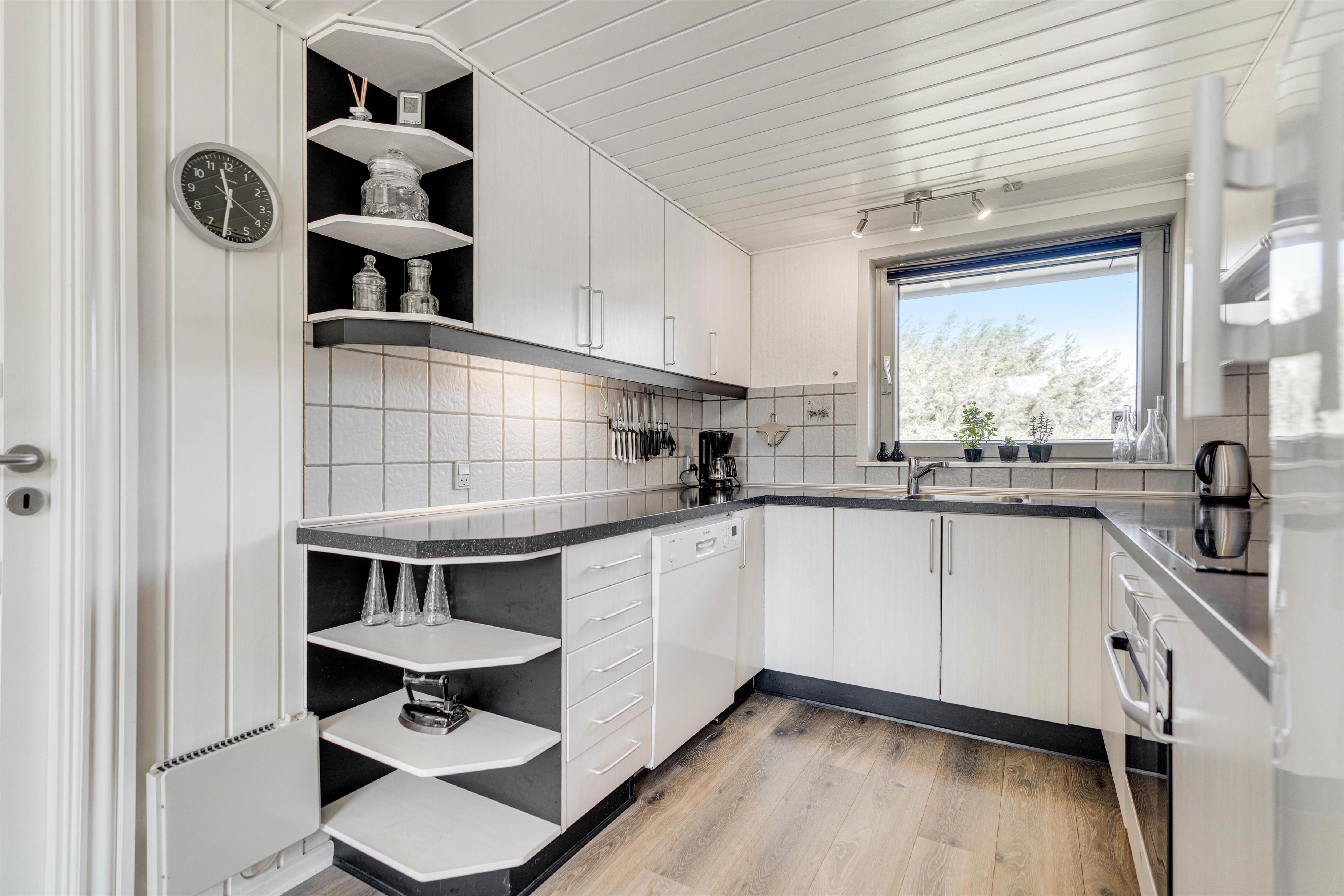 Køkkenet ligger i forbindelse med spisekrog og opholdsstue, så I kan tilberede maden, mens børnene er beskæftiget i opholdsrummet. Køkkenet er nydeligt og veludstyret med blandt andet køleskab med 100 liters frysekapacitet, mikroovn og opvaskemaskine. Og der er selvfølgelig god plads til at tilberede jeres måltider.