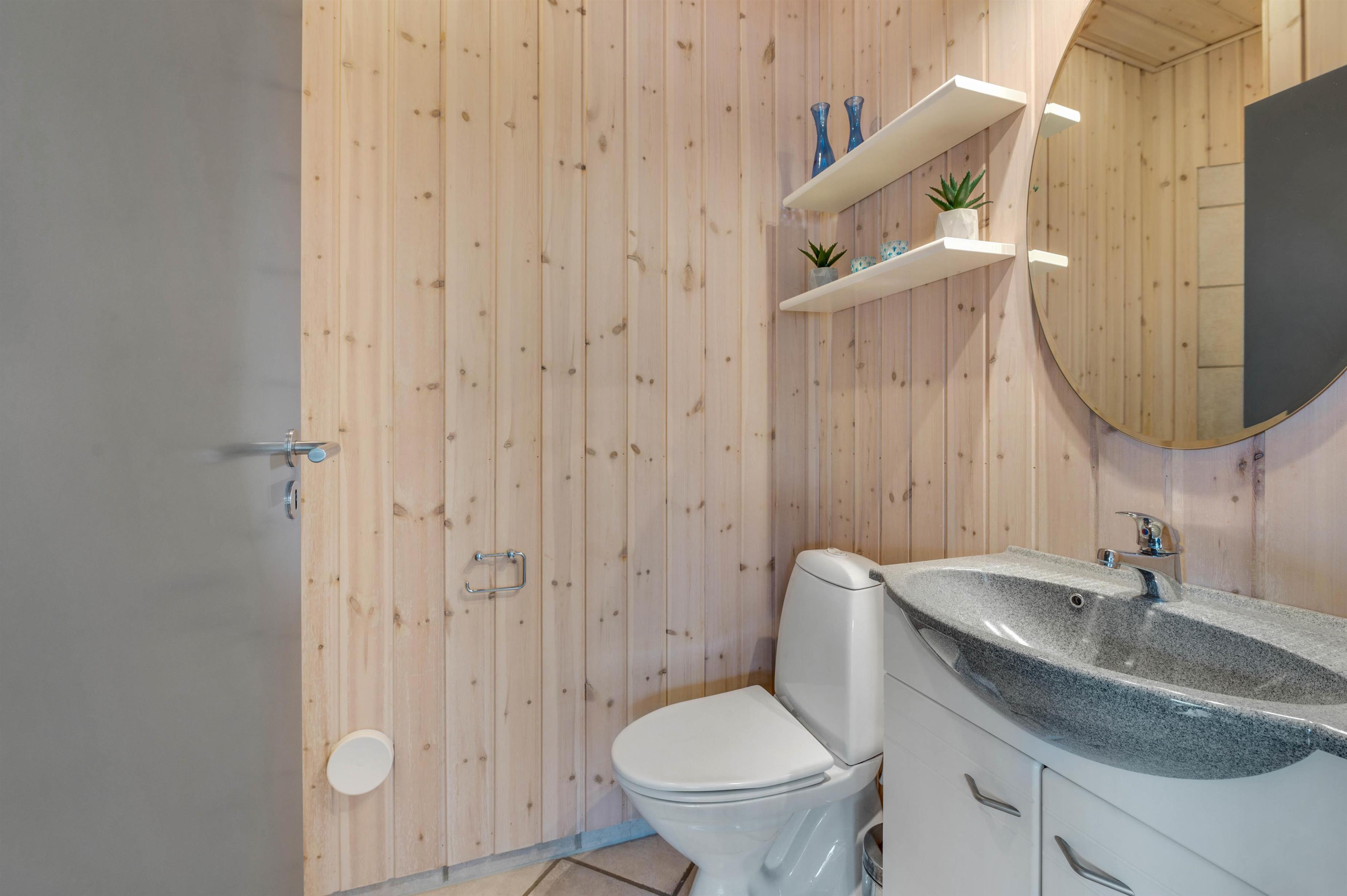 Sommerhusets ene badeværelse huser også over en dejlig lille wellnessafdeling med spabad og sauna, hvor der kan tilbringes mange timer med ren afslapning. Derudover er der et gæstetoilet med bruseniche, så her I sommerhuset det er slet ikke noget problem med lange køer til badeværelset.
