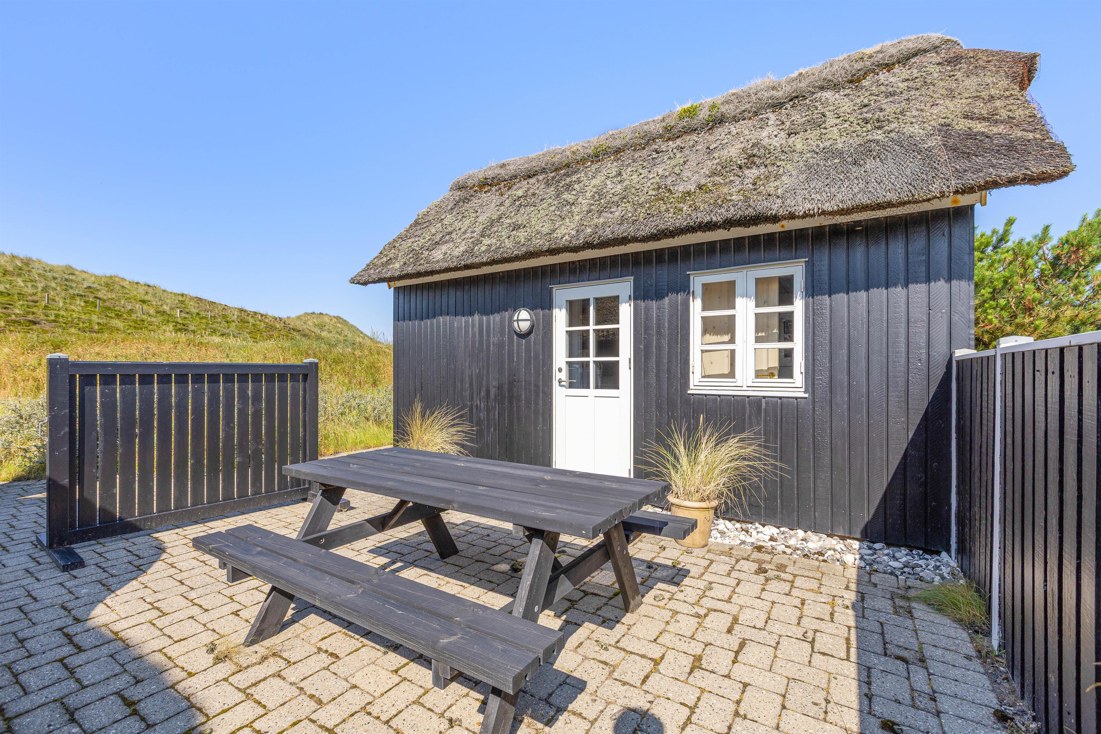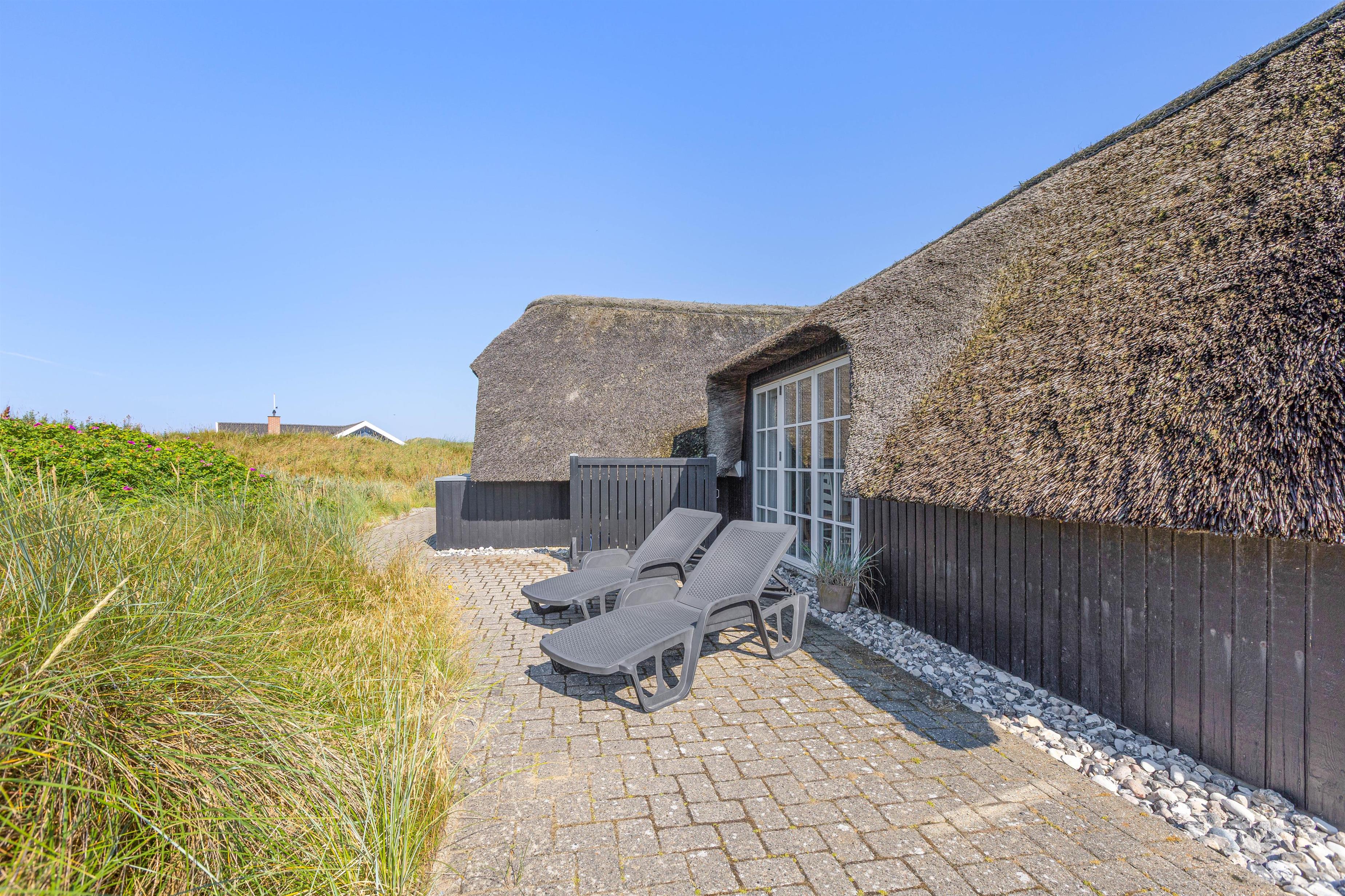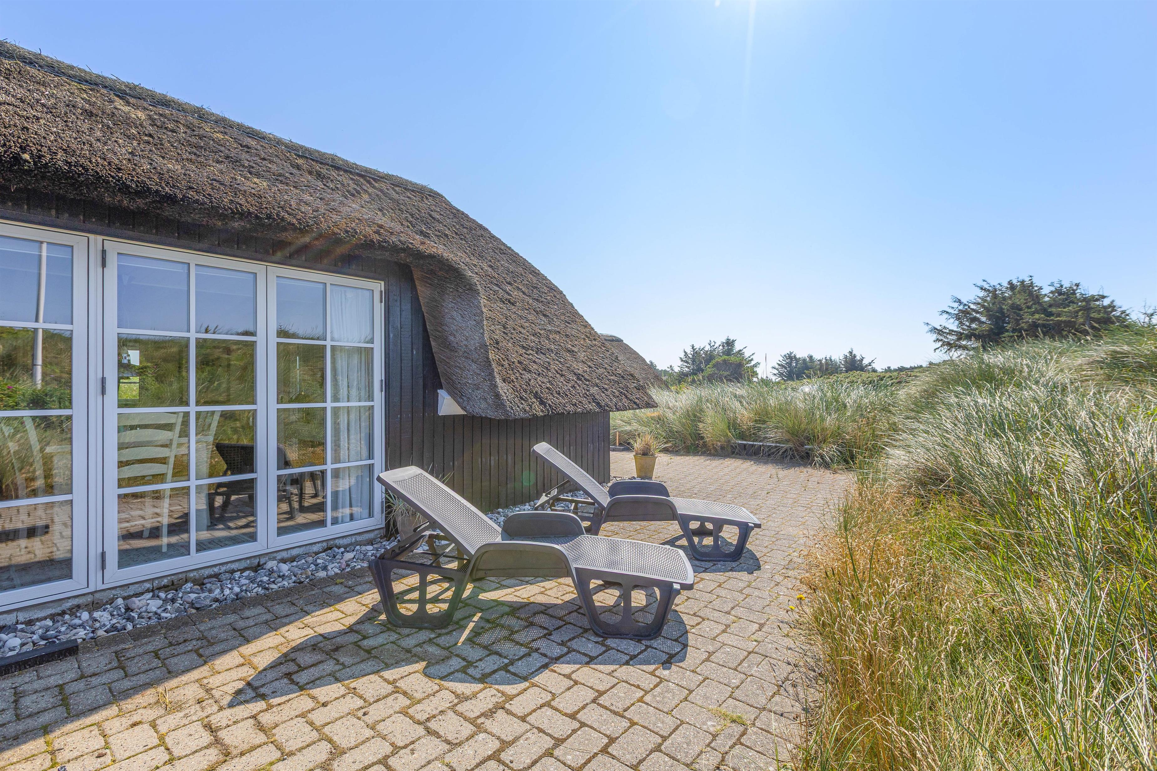 De åbne, delvist overdækkede terrasser med udsigt over klitterne giver masser af plads til, at man kan følge solen rundt om sommerhuset. Derudover er terrasserne også afskærmede, så man kan sidde og nyde sin morgenkaffe i fred og ro.