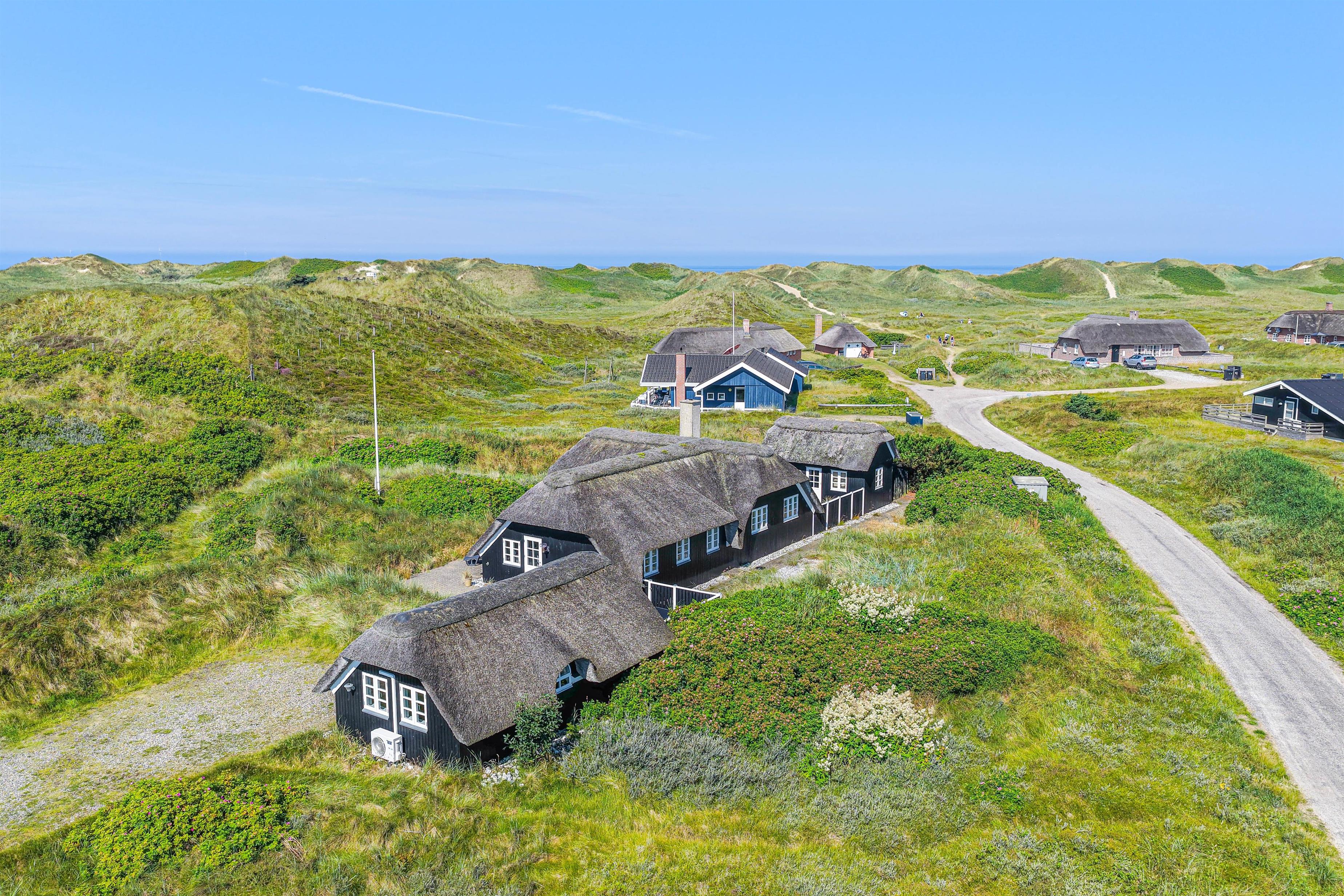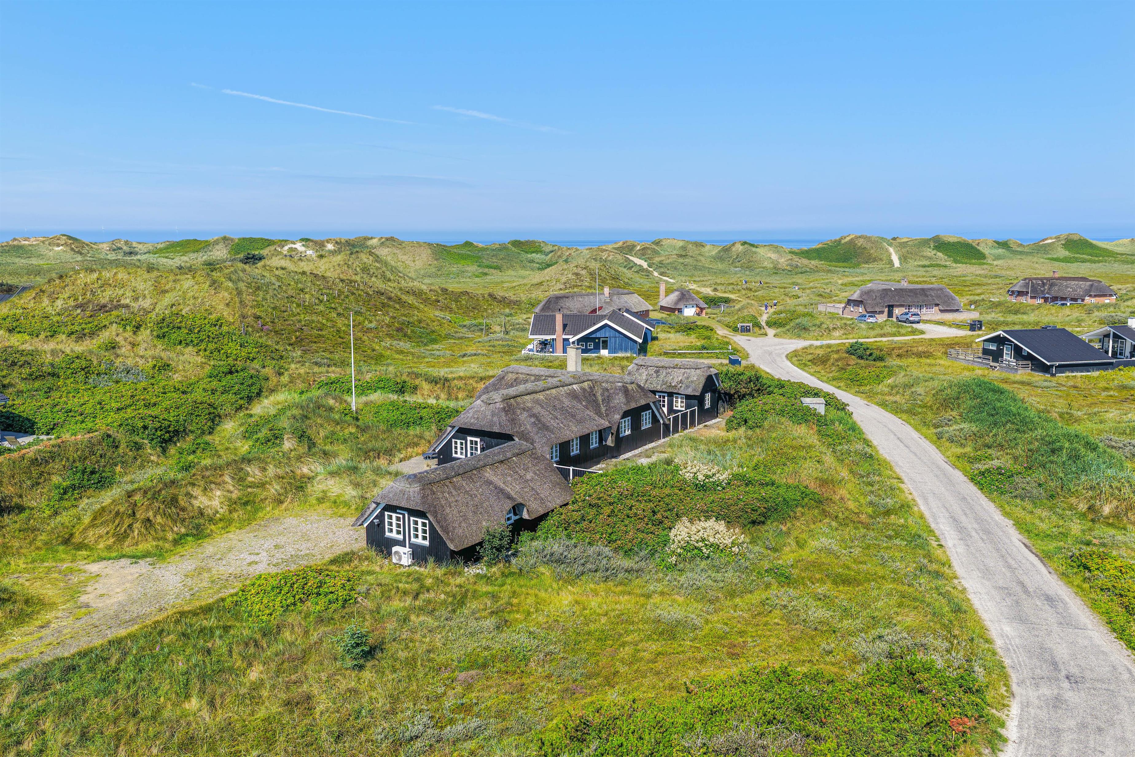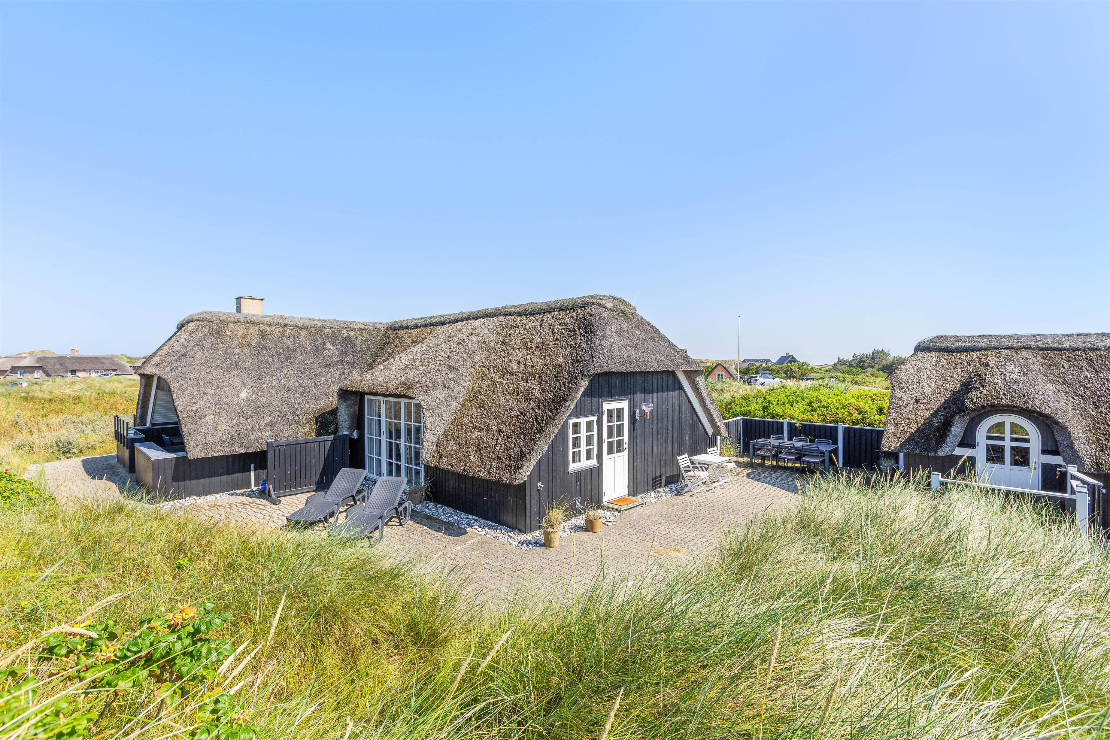 De åbne, delvist overdækkede terrasser med udsigt over klitterne giver masser af plads til, at man kan følge solen rundt om sommerhuset. Derudover er terrasserne også afskærmede, så man kan sidde og nyde sin morgenkaffe i fred og ro.