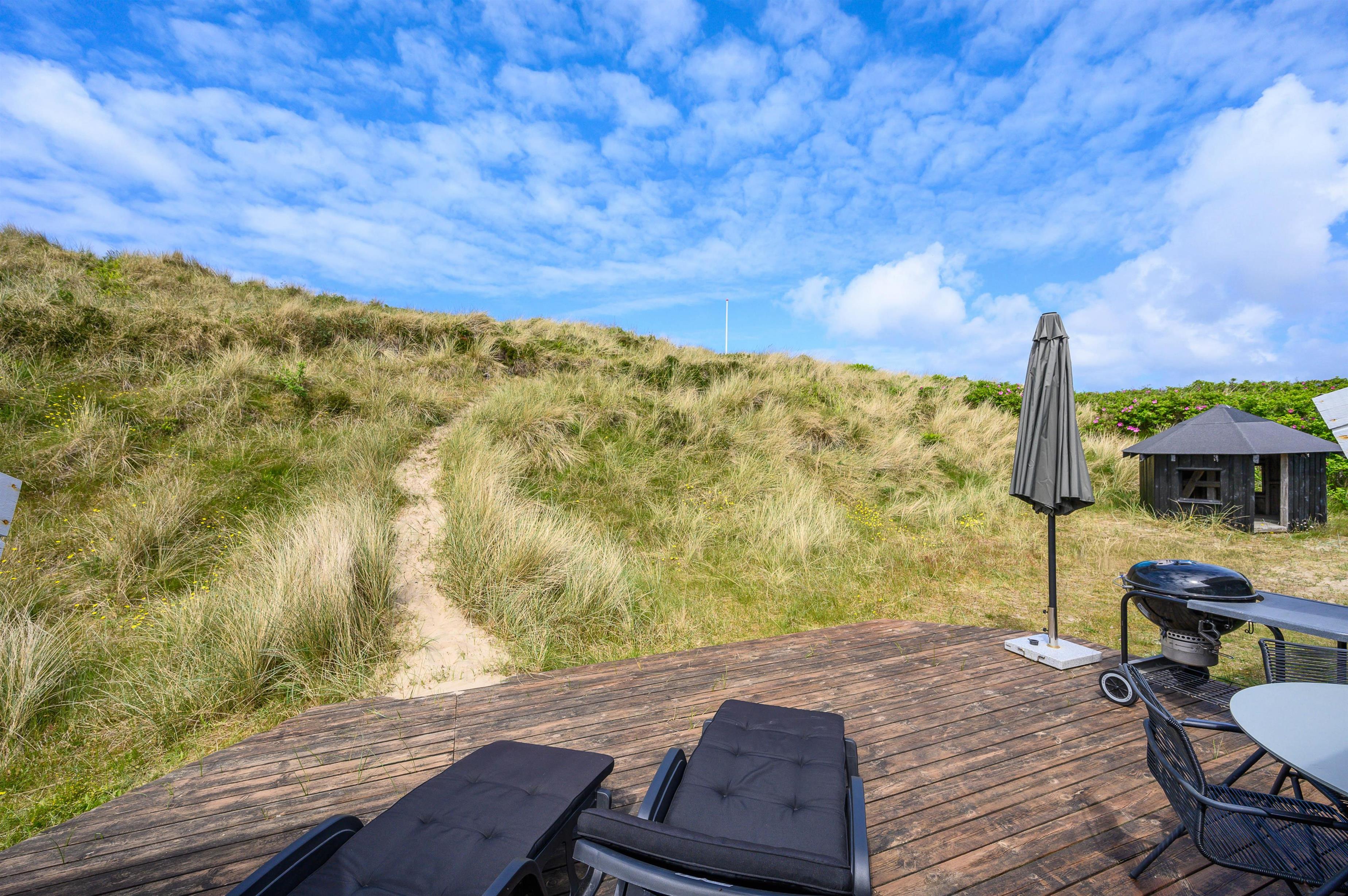 Feriehuset har endvidere sin egen lille udsigtsklit, hvorfra I kan se ud over hele Houvig helt ud til det berømte søtegn. Turen til både strand og indkøb kan klares til fods, og med cykel eller bil er I hurtigt i Søndervig, hvor der er mulighed for at shoppe og gode spisesteder.