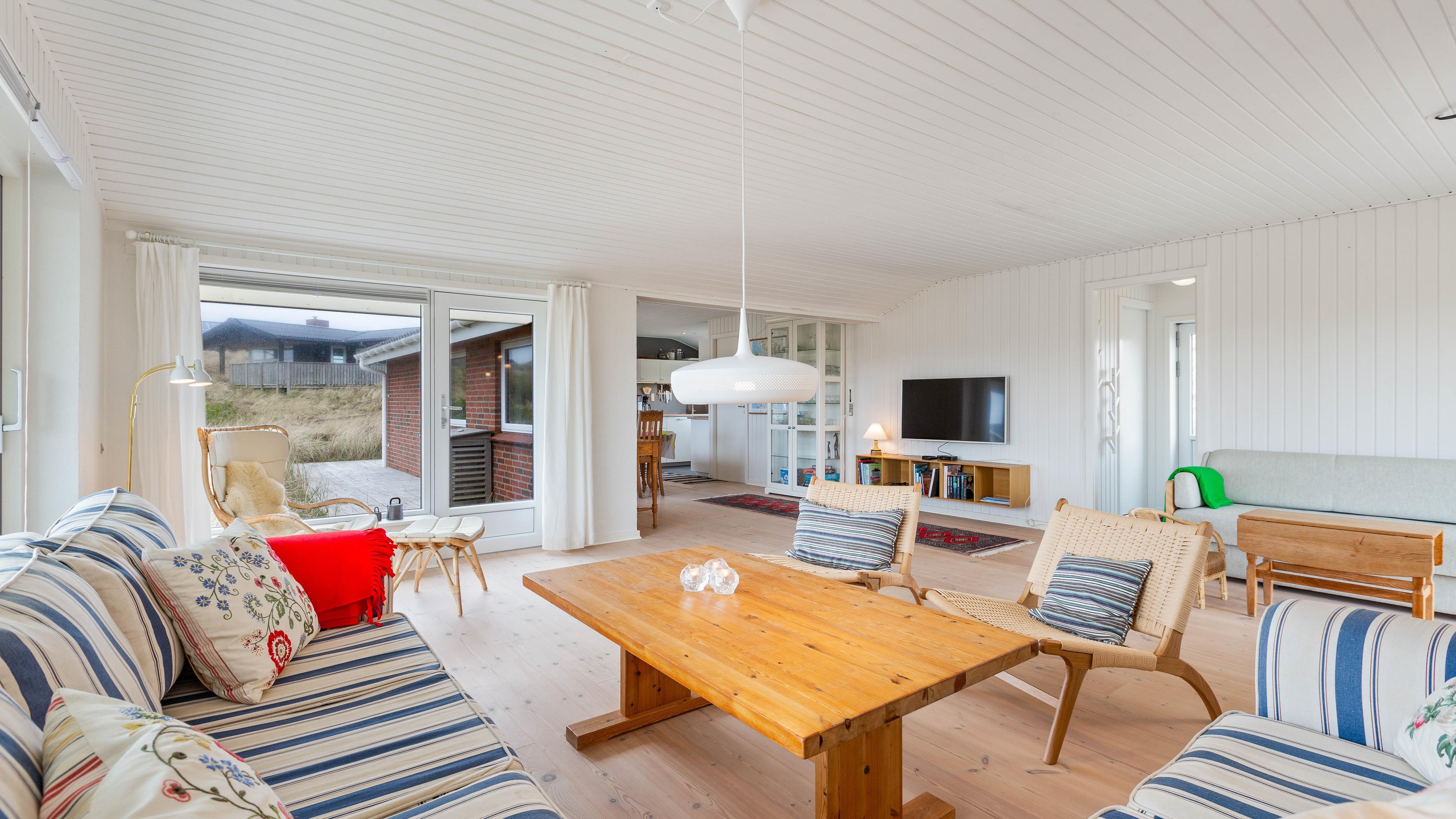 Der er kun ca. 400 meter fra feriehuset til den fine sandstrand og Vesterhavets brusende bølger. Den fine sandstrand indbyder til lange gåture, som jeres hund helt sikkert vil elske. Vesterhavet er et besøg værd på alle tider af året, så I kan bygge de største sandslotte om sommeren, mens I om efteråret og vinteren har chancen for at finde rav efter en storm.