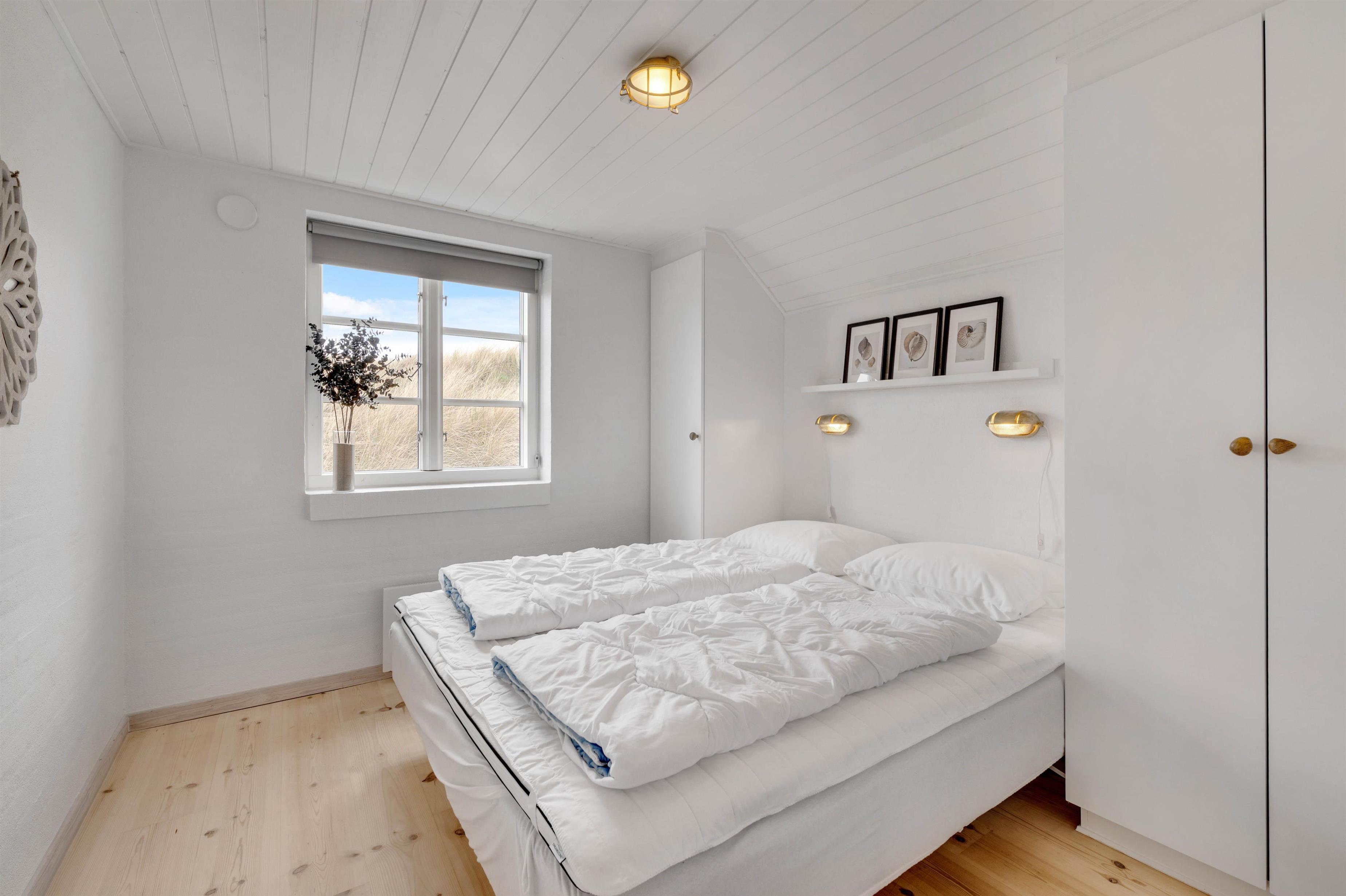 Et dejligt sommerhus med bl.a. sauna og spa på en vidunderlig klitgrund kun få minutters gang fra hav og strand. Fra stuen er der skøn udsigt over klitterne. Huset ligger helt ugeneret og giver gode muligheder for at nyde en fredfyldt ferie, både ude og inde.