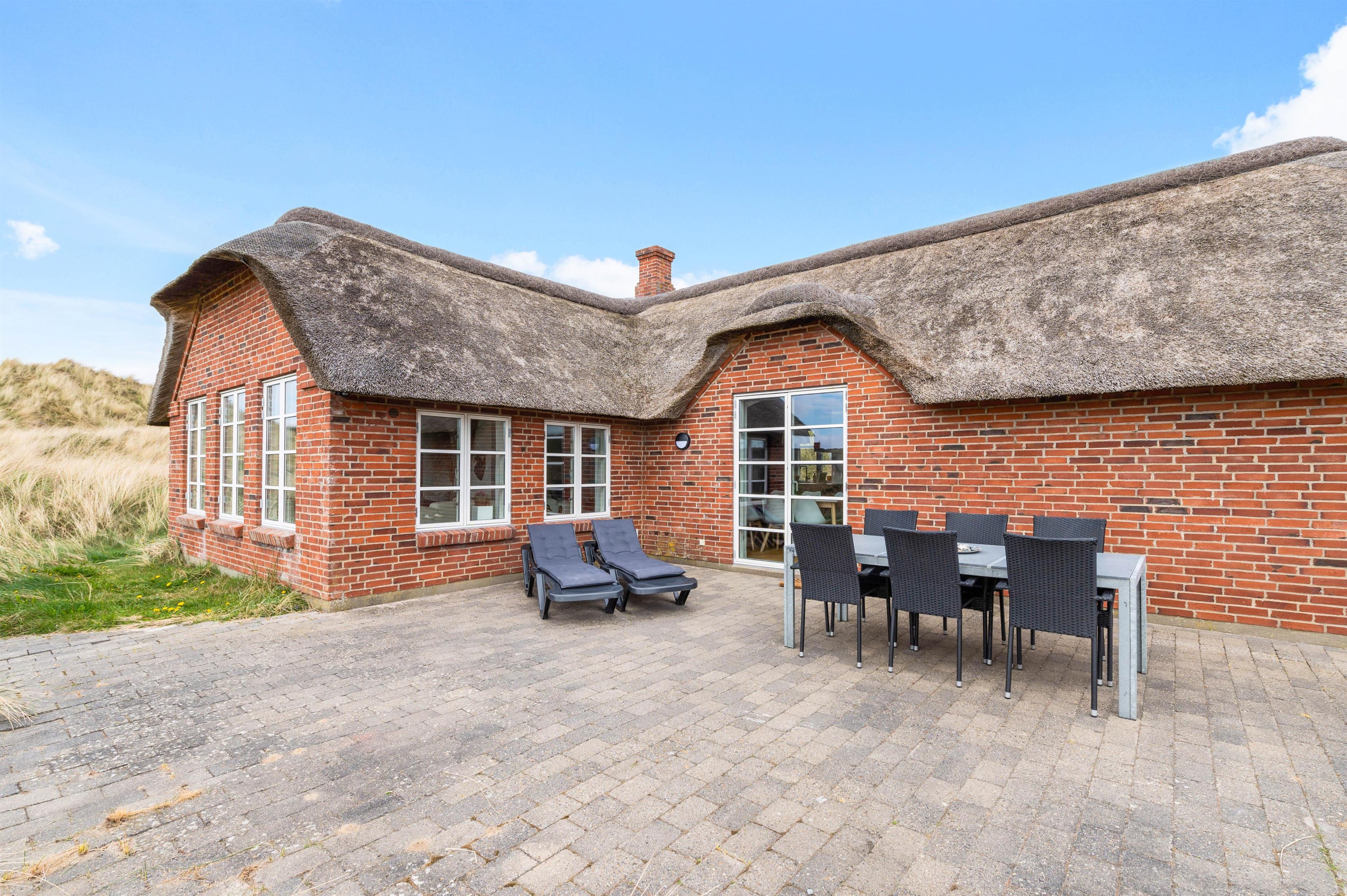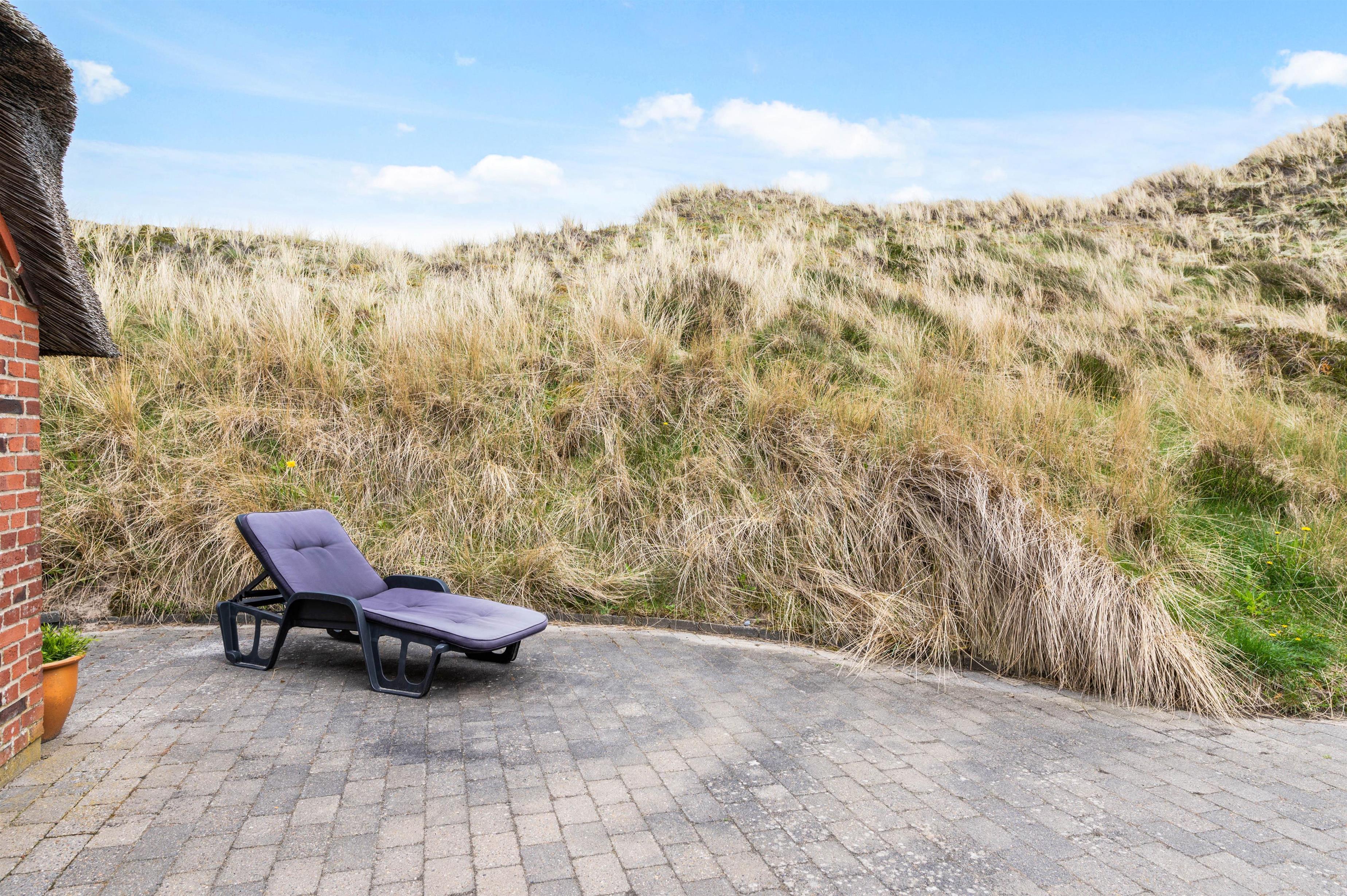 Sommerhuset har 2 skønne terrasser. Den ene vender mod øst, og en anden mod vest. Den østvendte terrasse er fantastisk placeret og nærmest bygget ind i en klit, som sammen med huset og det lille udhus giver gode læmuligheder samt masser af privatliv. Fra terrassen mod vest er der en helt enestående udsigt over det smukke klitlandskab. På terrasserne finder I selvfølgelig havemøbler, liggestole og grill.