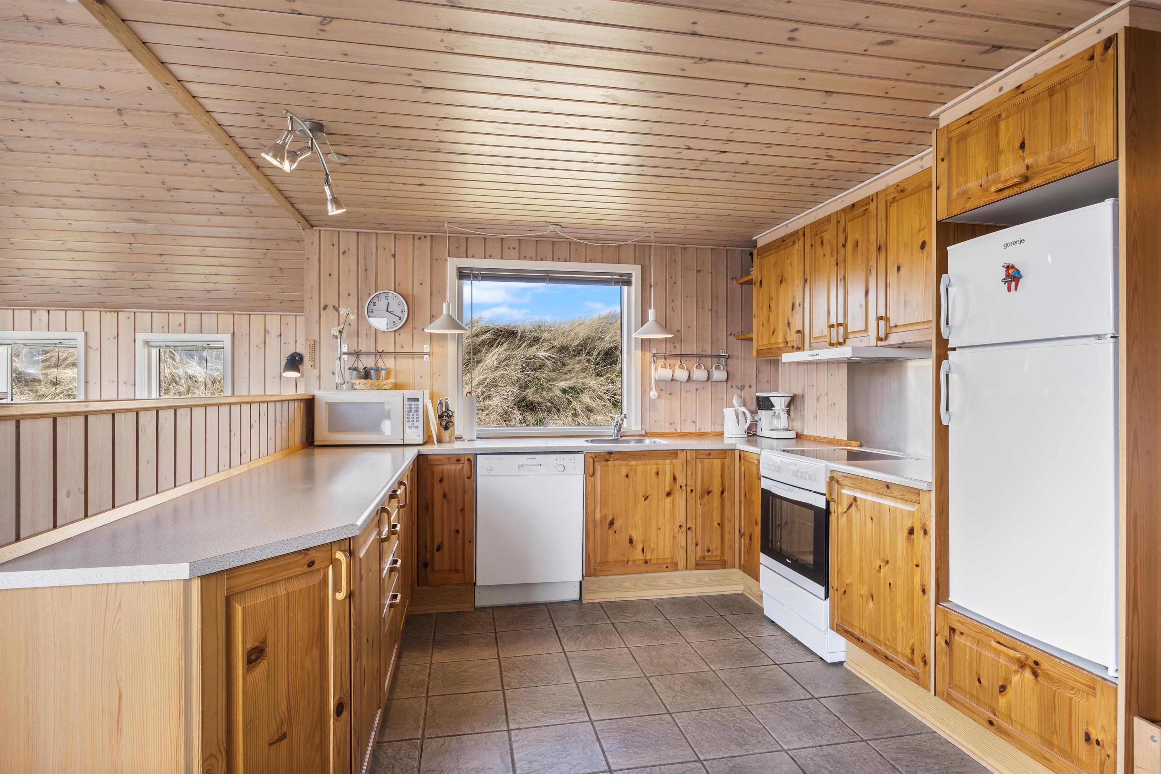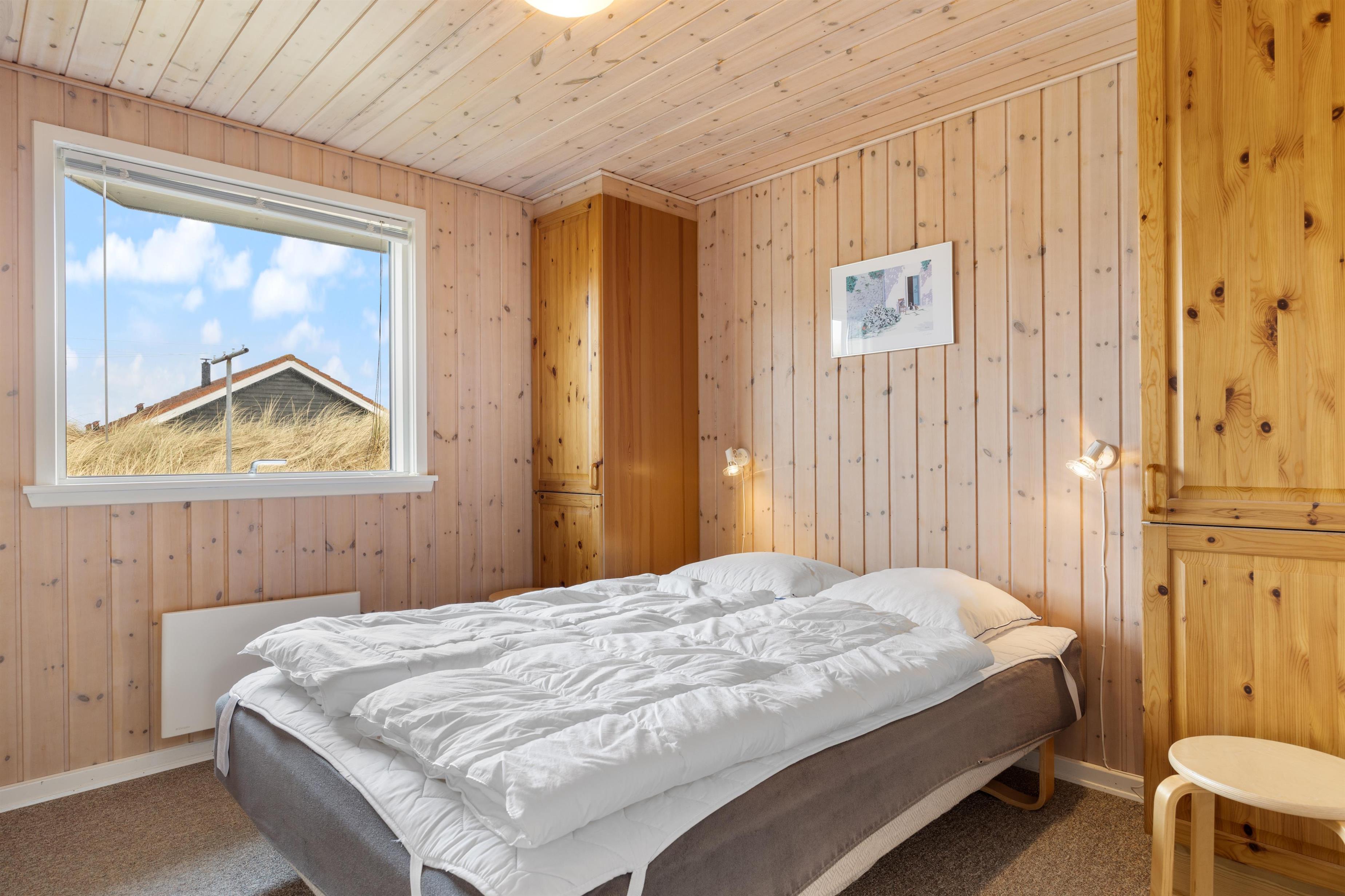 Fordelt over 3 soverum kan indretningen med 1 dobbeltseng og 4 enkeltsenge imødekomme jeres behov for komfort og afslapning. Sommerhuset er også udstyret med en praktisk vaskemaskine, der letter alle jeres daglige pligter. Sommerhusets køkken er stort og veludstyret køkken med bl.a. køleskab med fryser på 18 liter, opvaskemaskine og mikroovn. Rigtigt lækkert, lyst og rummeligt badeværelse med bruseniche, sauna, vaskemaskine og gulvvarme. Sommerhuset fremstår lyst og venligt, hvidmalet vægge og lofter.