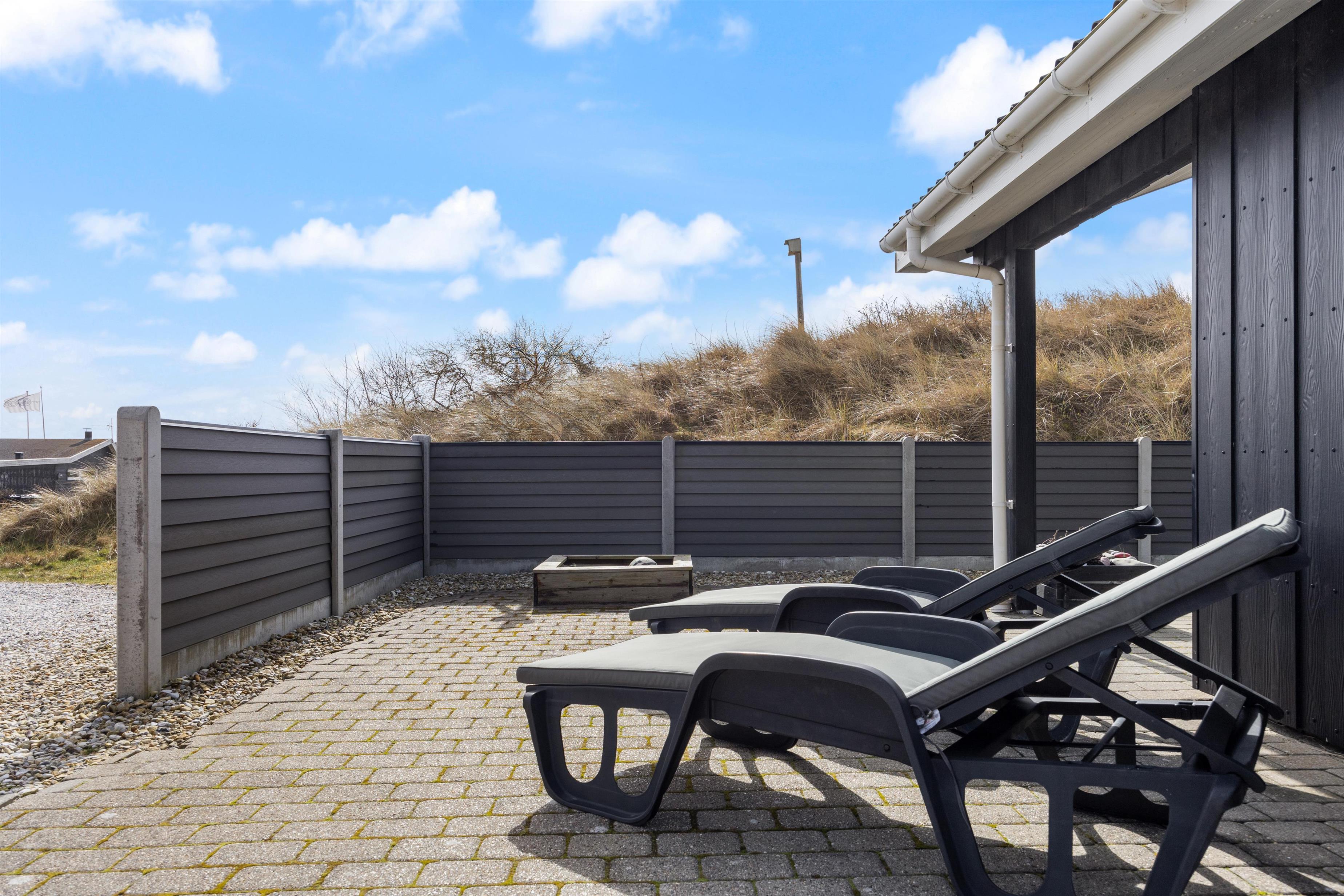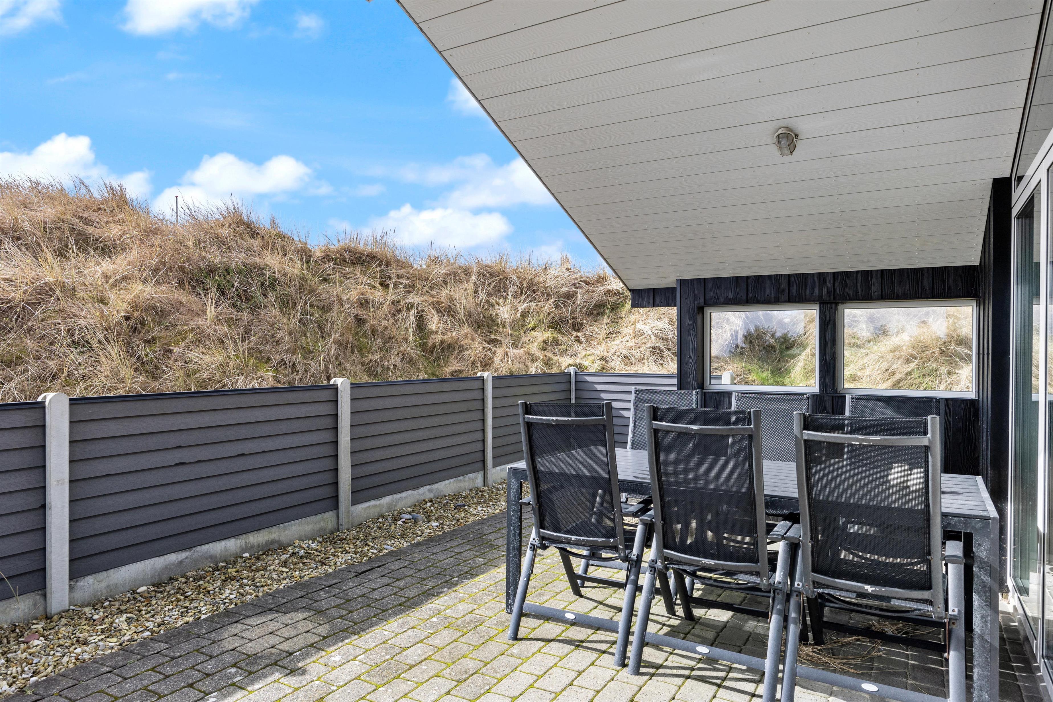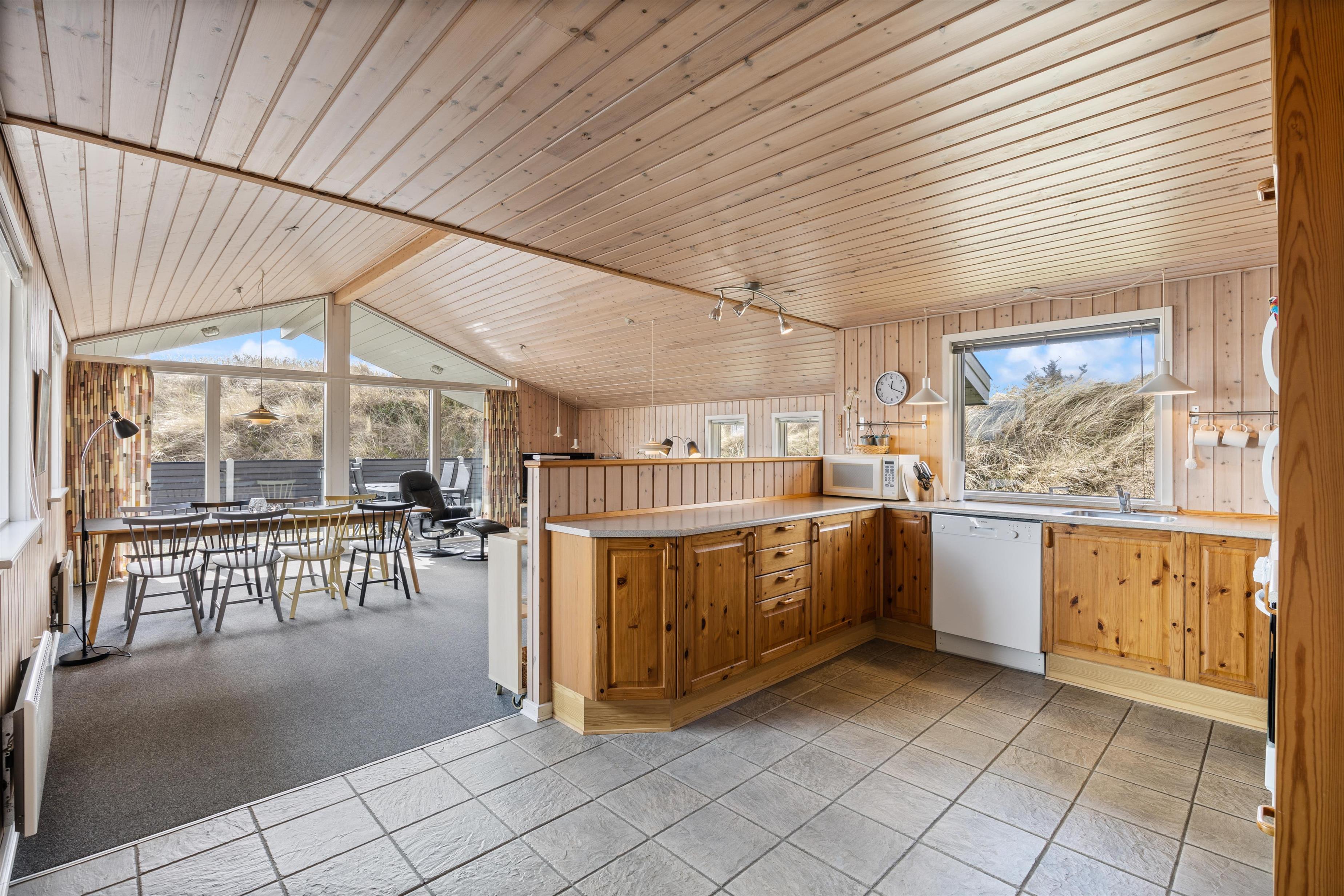Sommerhuset ligger på en stille og rolig stikvej og blot 550 meter fra stranden i Houvig, og sommerhusets ydre er bestemt lige så charmerende som dets indre. Den overdækkede og afskærmede terrasse inviterer til lange grillmiddage med de medfølgende havemøbler, og I kan se børnene lege i sandkassen. Når solen går ned, kan I nyde en aften i haven med en dejlig grillmad. Med blot 2400 meter til indkøbsmuligheder er det nemt at proviantere til en afslappende dag i sommerhusets naturskønne omgivelser.