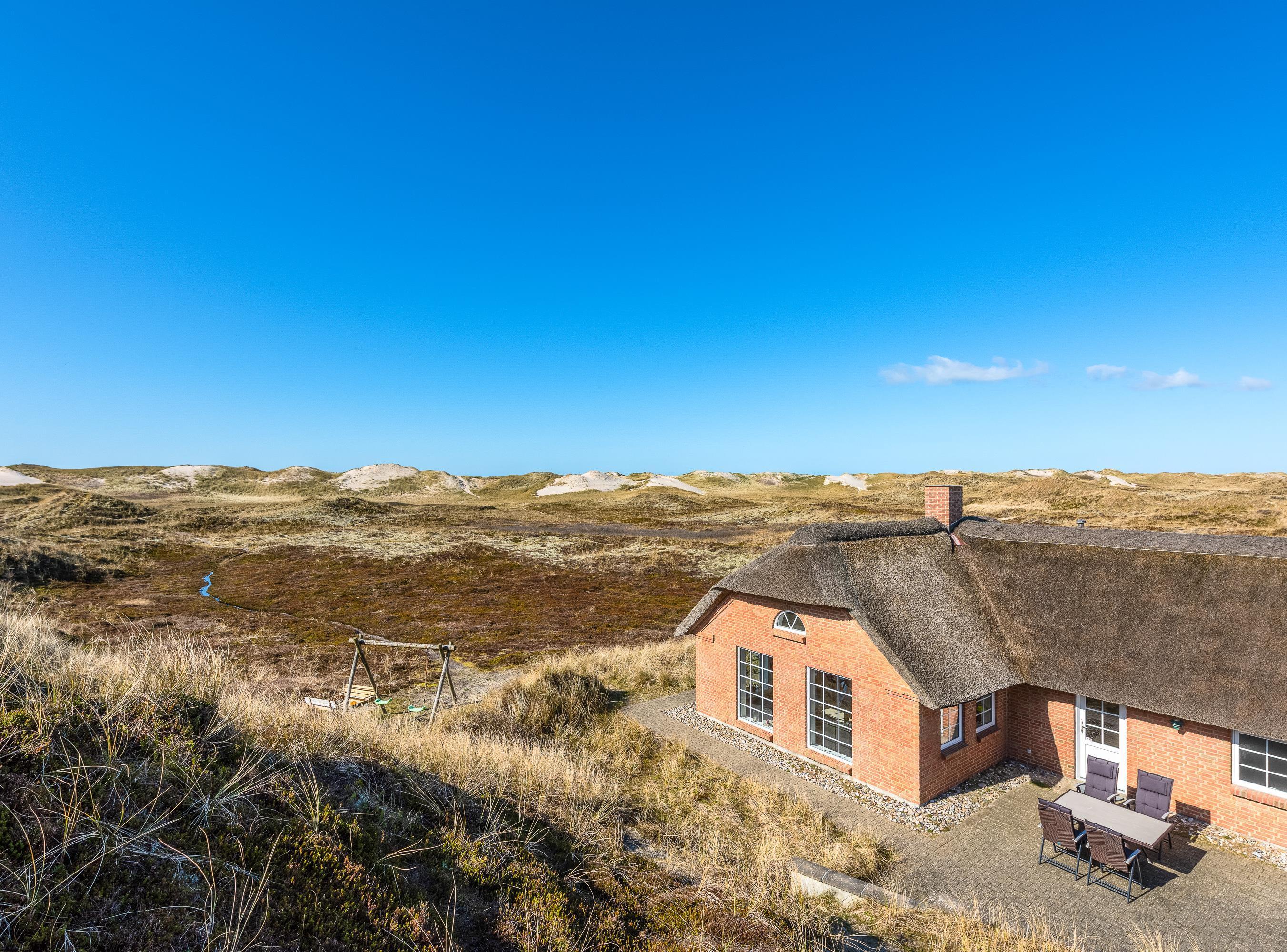 På Klitdalen 45 finder I dette stråtækte drømmehus til otte personer. Midt i klitlandskabet og på en attraktiv naturgrund kan I holde jeres velfortjente ferie med havets bølger i baggrunden. Fra sommerhuset er der kun 200 meter til stranden, og på det store wellnessbadeværelse med sauna og spabad kan I skrue ekstra op for velværen på ferien. Til dette feriehus er der desuden installeret en lademulighed til elbil, så I efter en god køretur i det vestjyske har mulighed for at oplade jeres elbil - Dog skal I selv huske at medbringe kabel dertil.