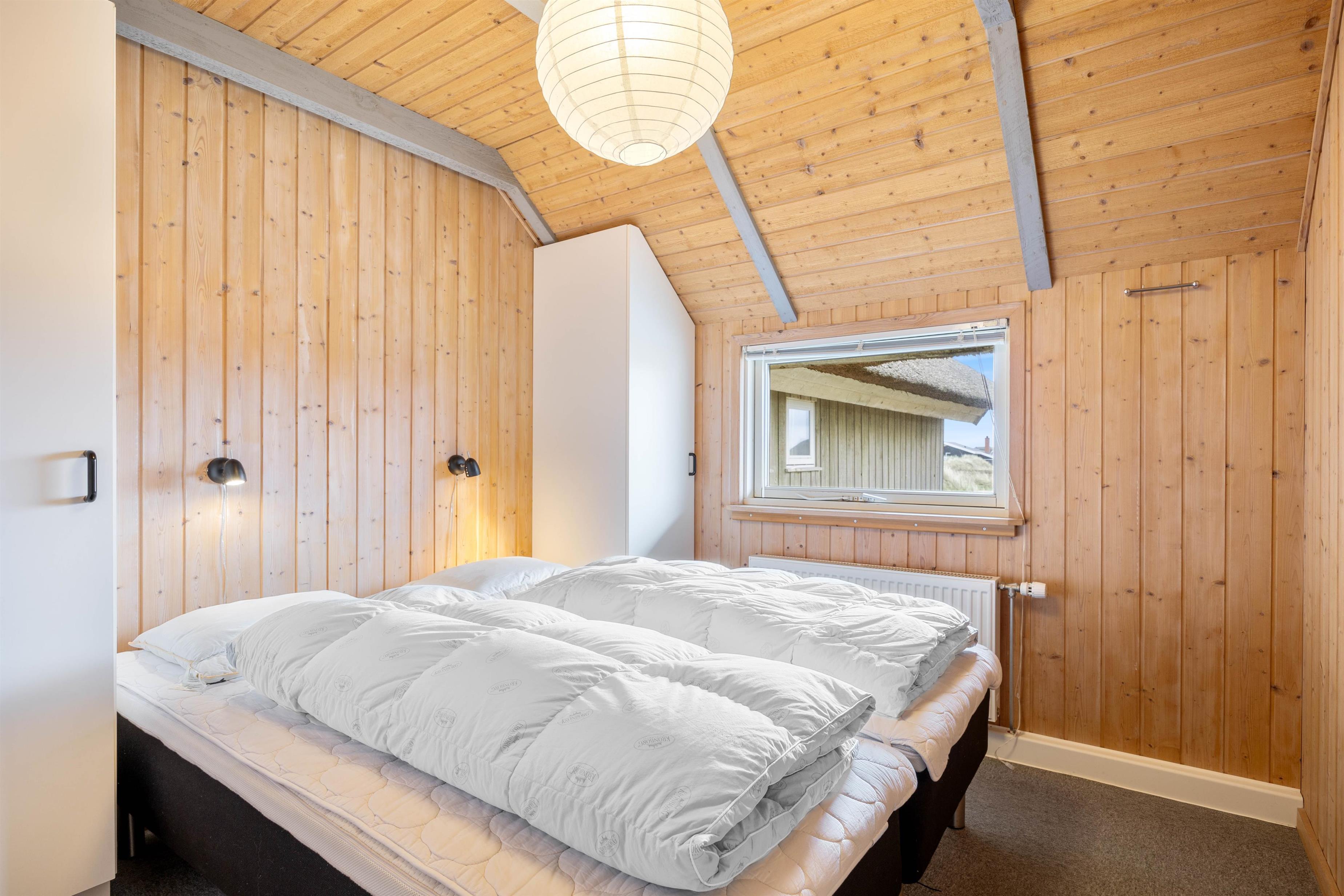 Du finder 6 soveværelser i dette sommerhus, hvoraf 4 er indrettet med en dobbeltseng og 2 med 1 køjeseng hver. Alle soveværelser har gulvtæppe. For at der ikke skal være trængsel om morgenen, finder I 2 badeværelser med gulvvarme i dette sommerhus. I et af feriehusets badeværelser finder I en vaskemaskine og tørretumbler, så I ikke skal tænke på beskidt tøj, under jeres ferie.