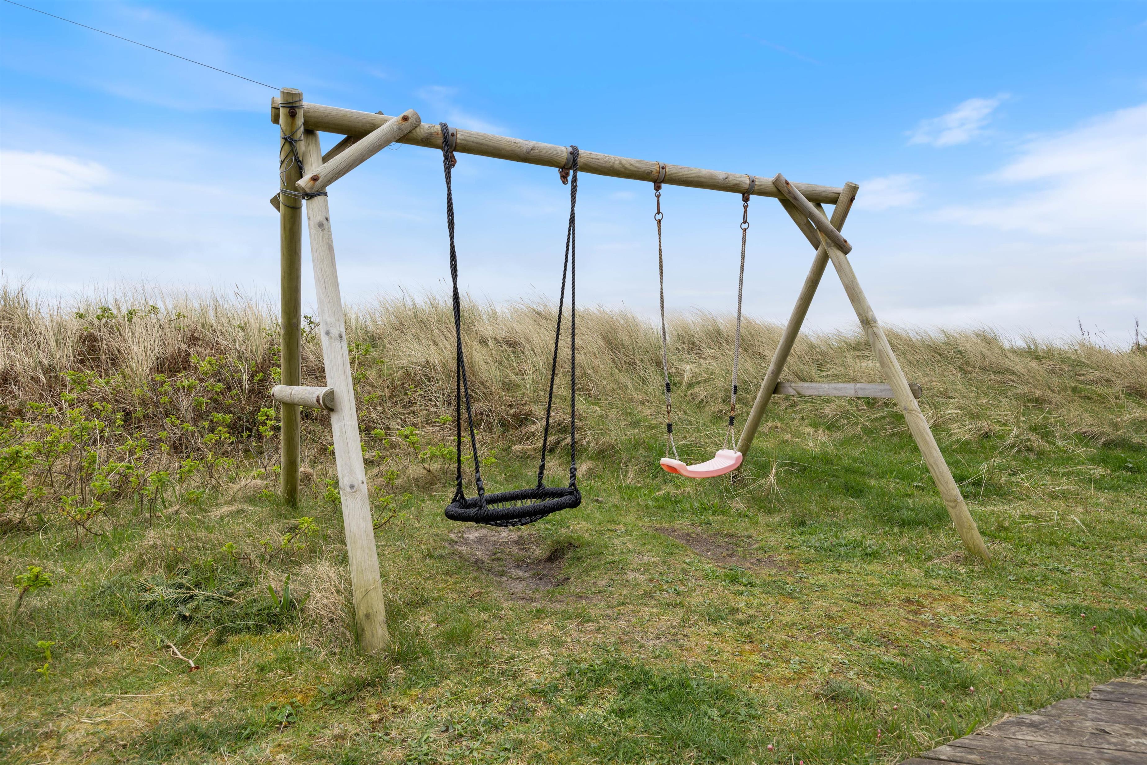 Udendørsområdet med den store terrasse er et dejligt sted for alle. Jeres børn har mulighed for at rende rundt på feriehusets grund og tage en tur på gyngen, imens I kan sidde på husets store terrasse og nyder et koldt glas. På terrassen er der mulighed for at sidde under halvtag, men også mulighed for at sidde under åben himmel, og mærke solens varme stråler. Da stranden og det brusende Vesterhav kun ligger 250 meter fra Sommerhuset, er der ikke noget, der står i vejen for en dejlig gåtur langs vandet.