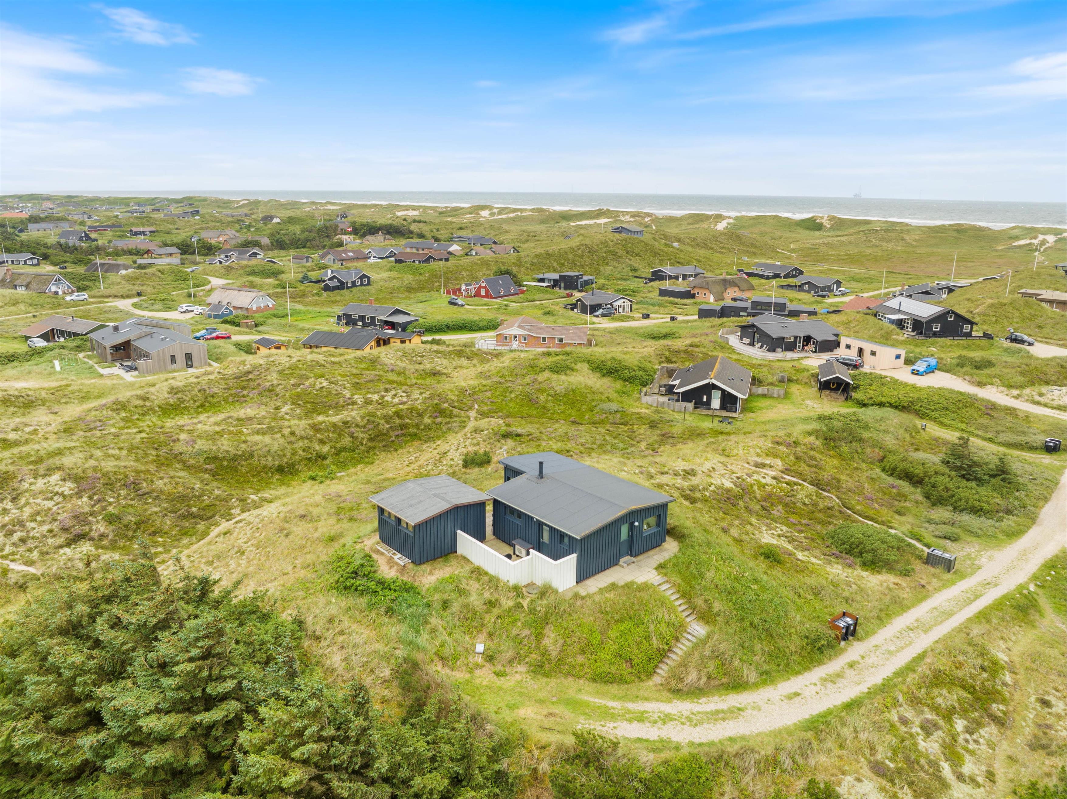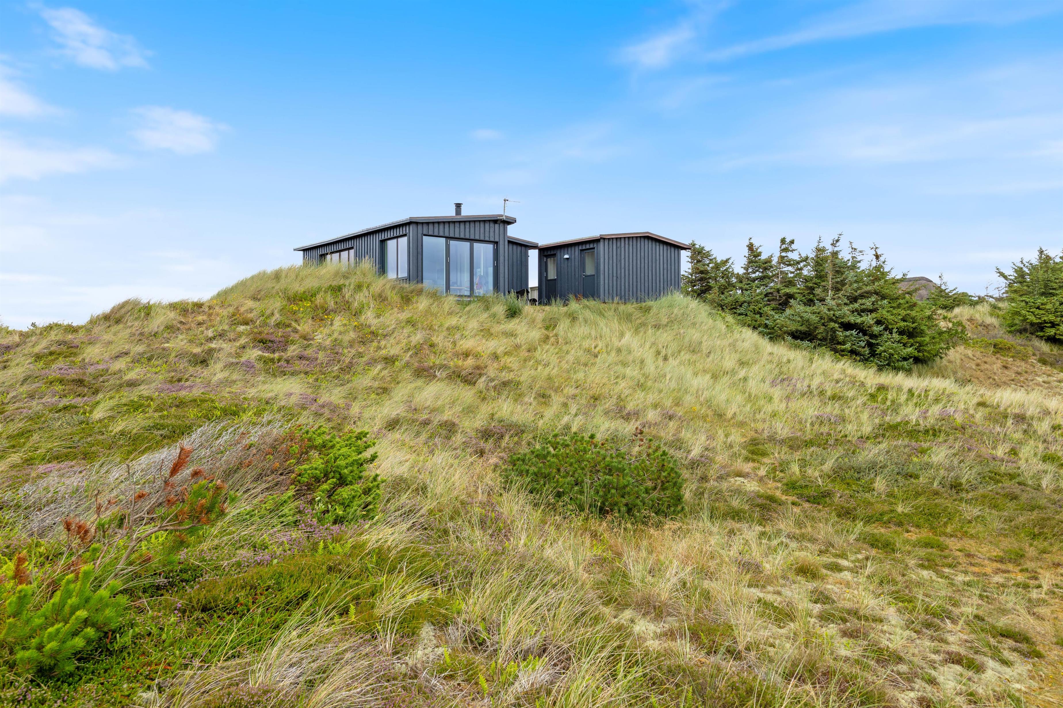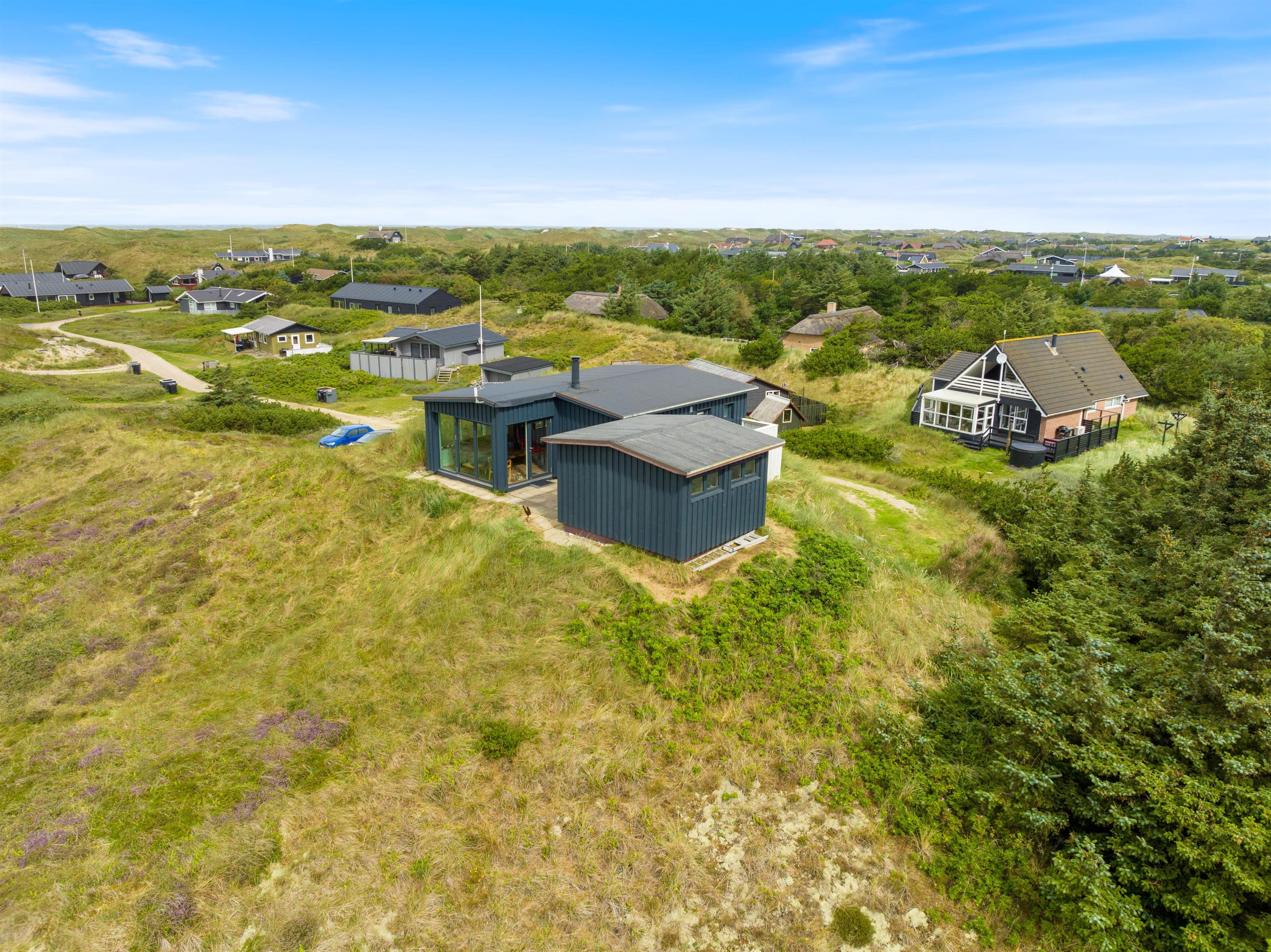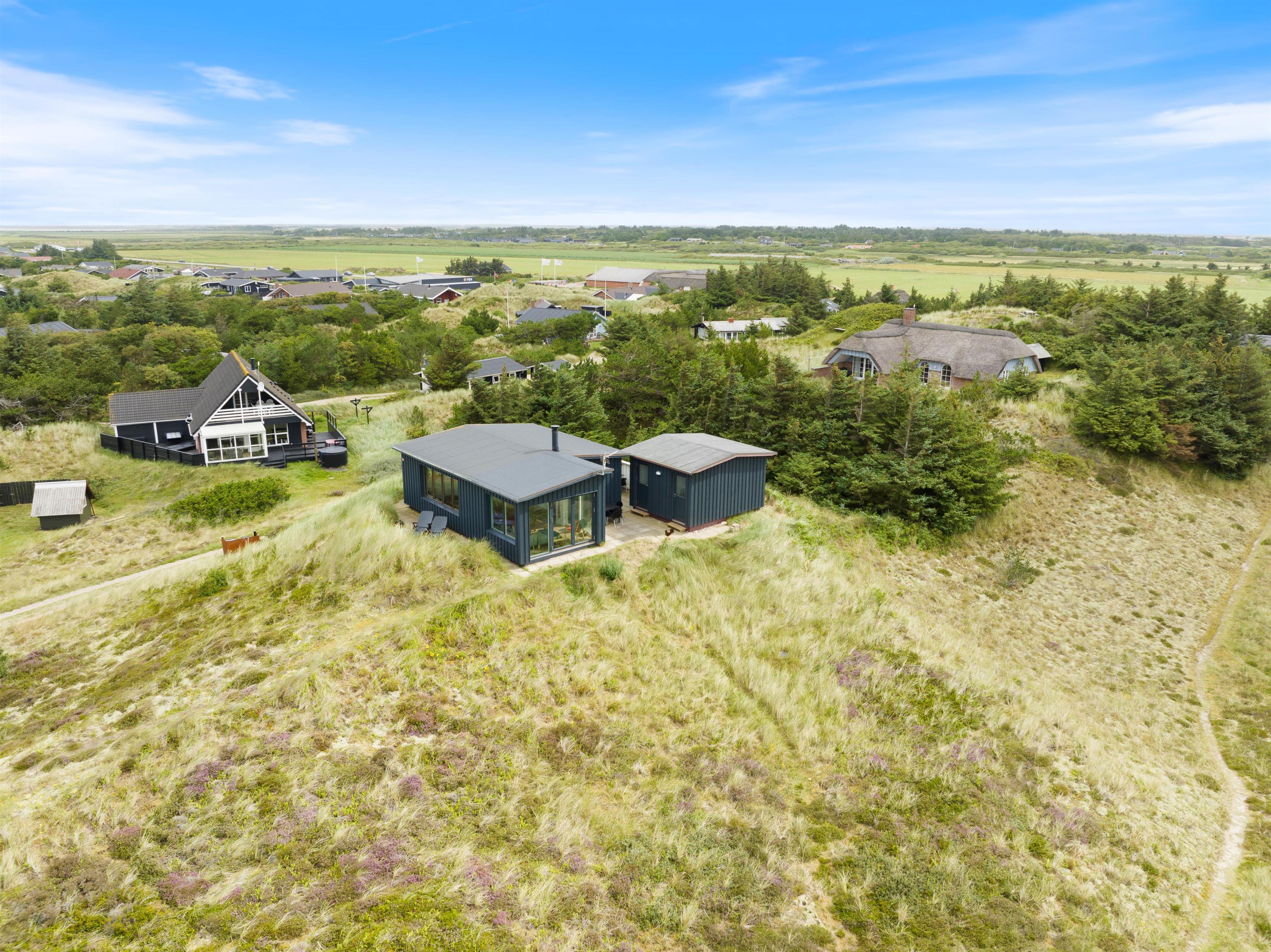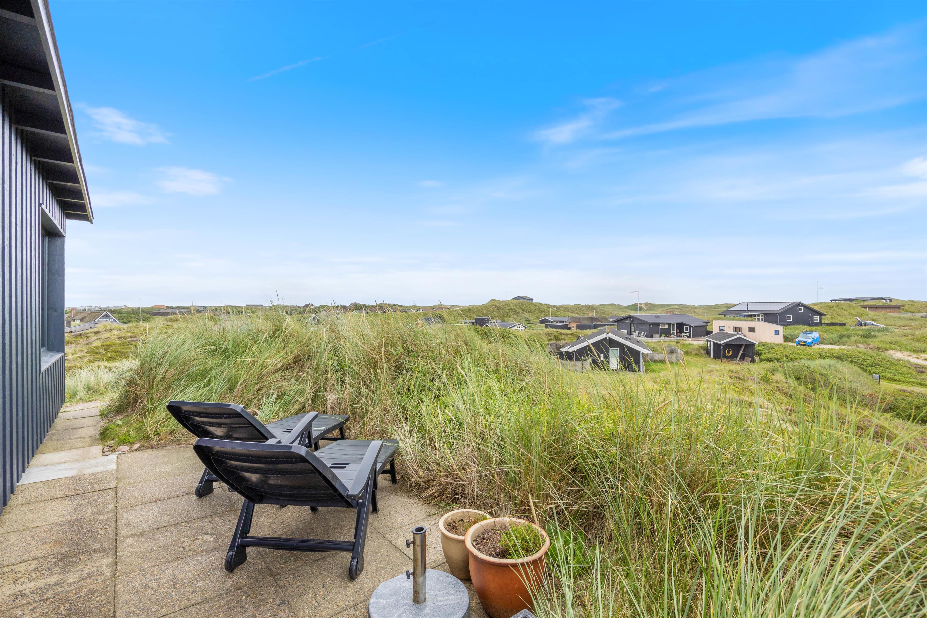 Sommerhuset ligger i det skønne klitlandskab og er omgivet af marehalm. Der er flere små kroge på grunden og god mulighed for udvælge et spot til at tage en middagslur på en solvogn.