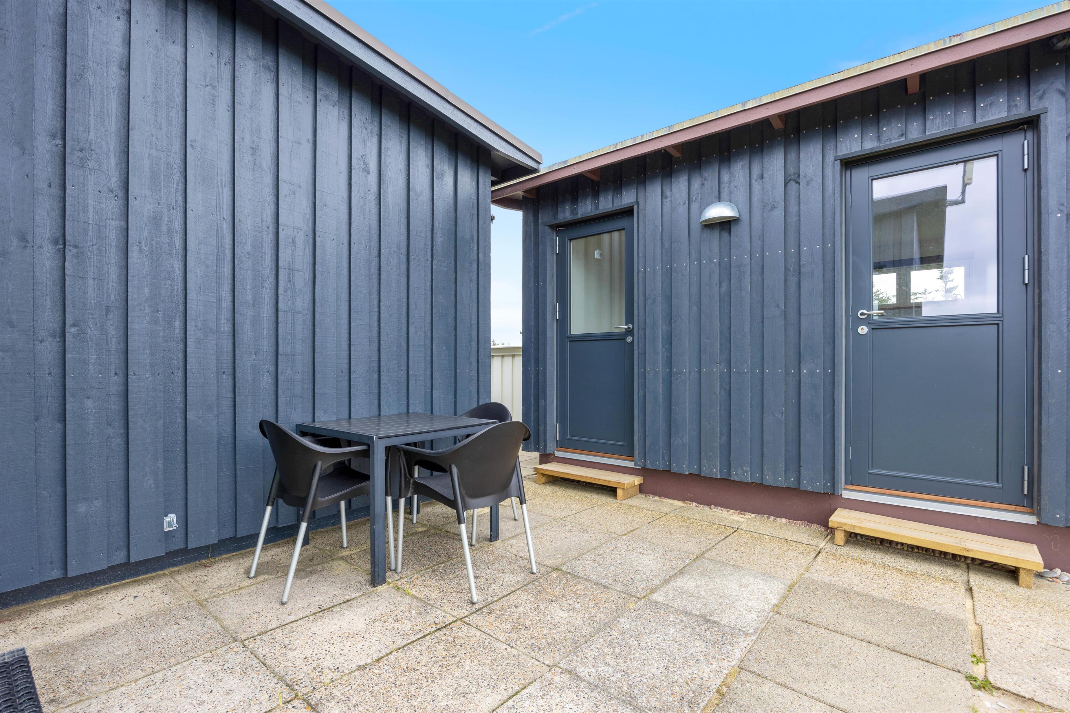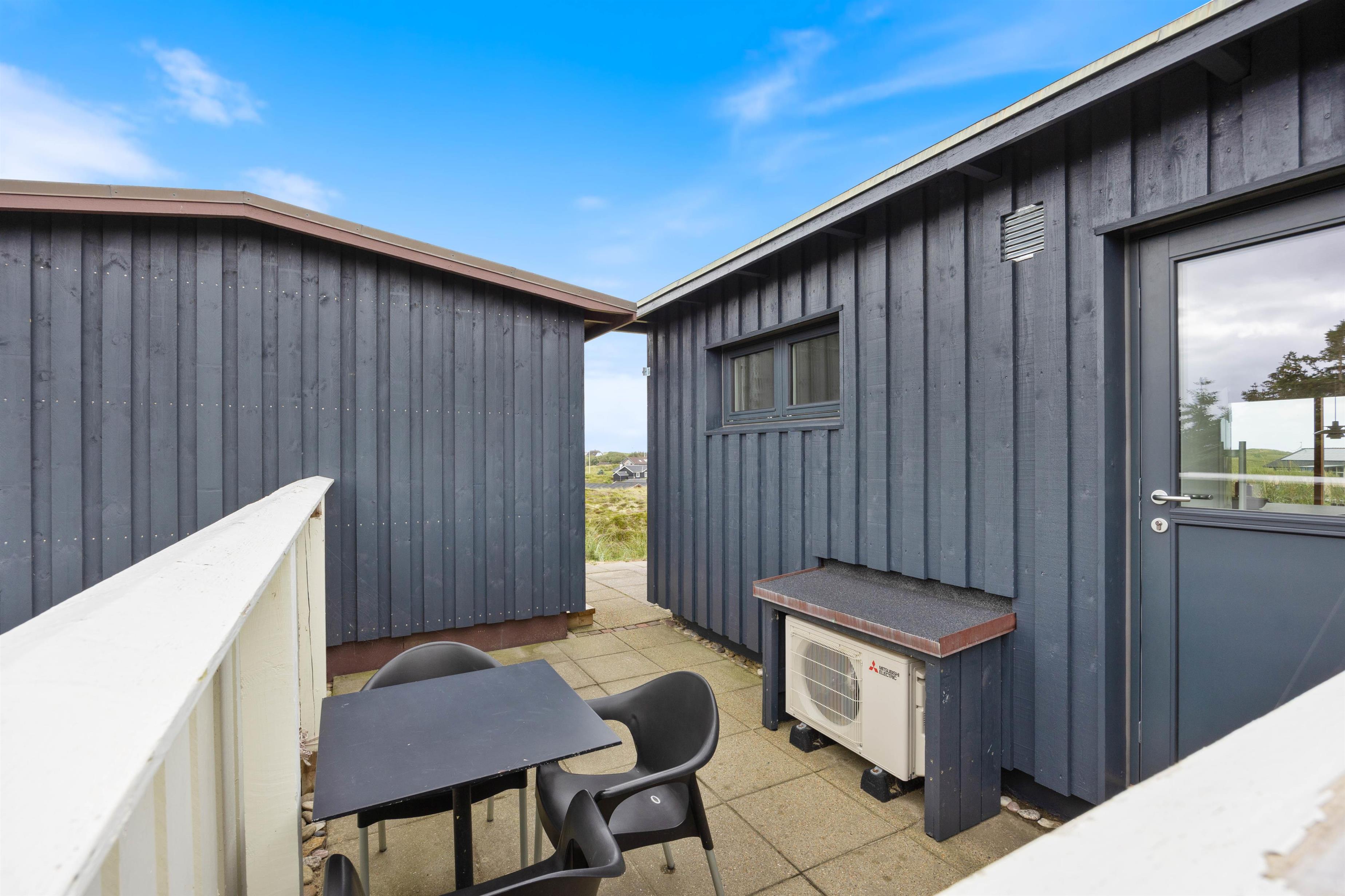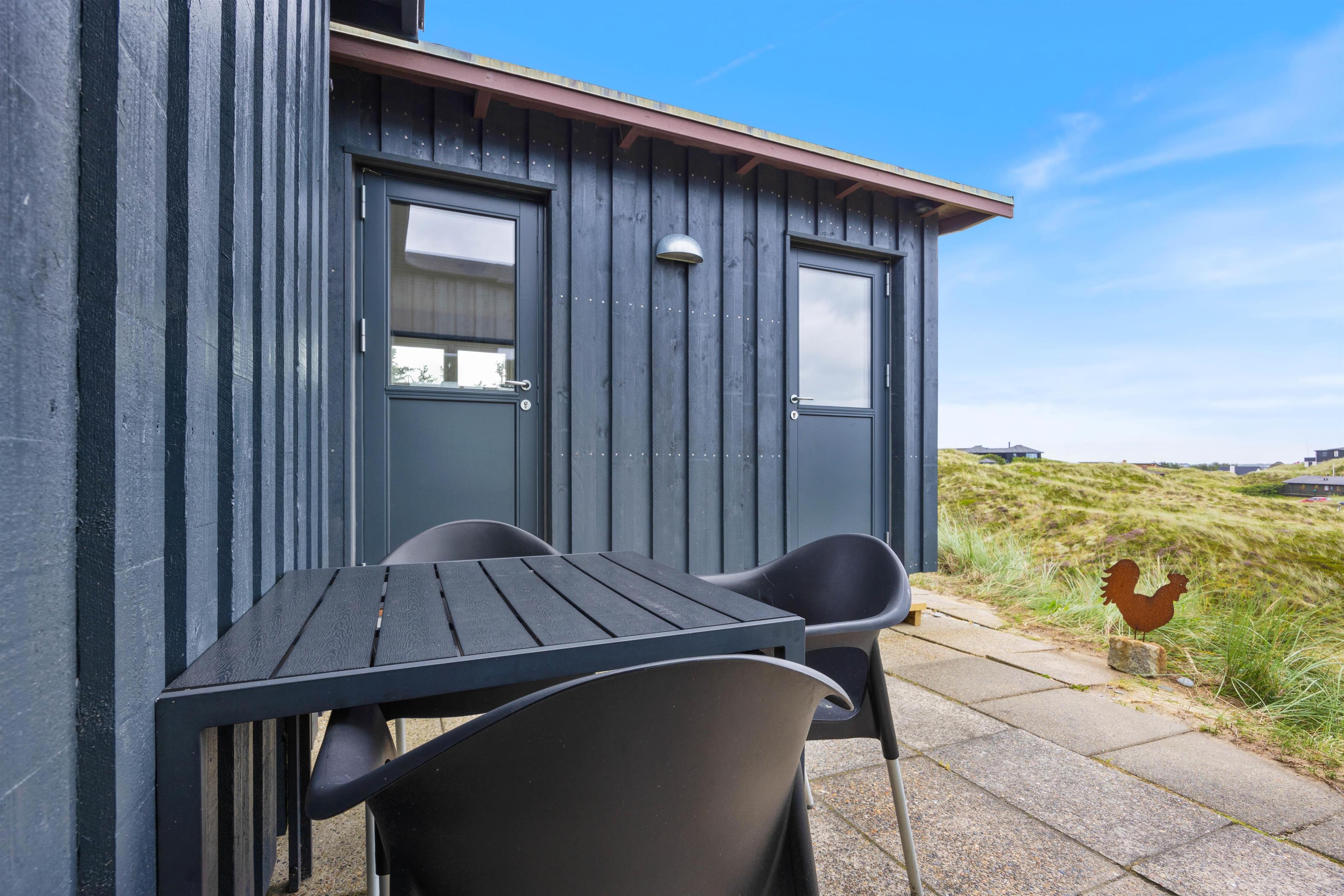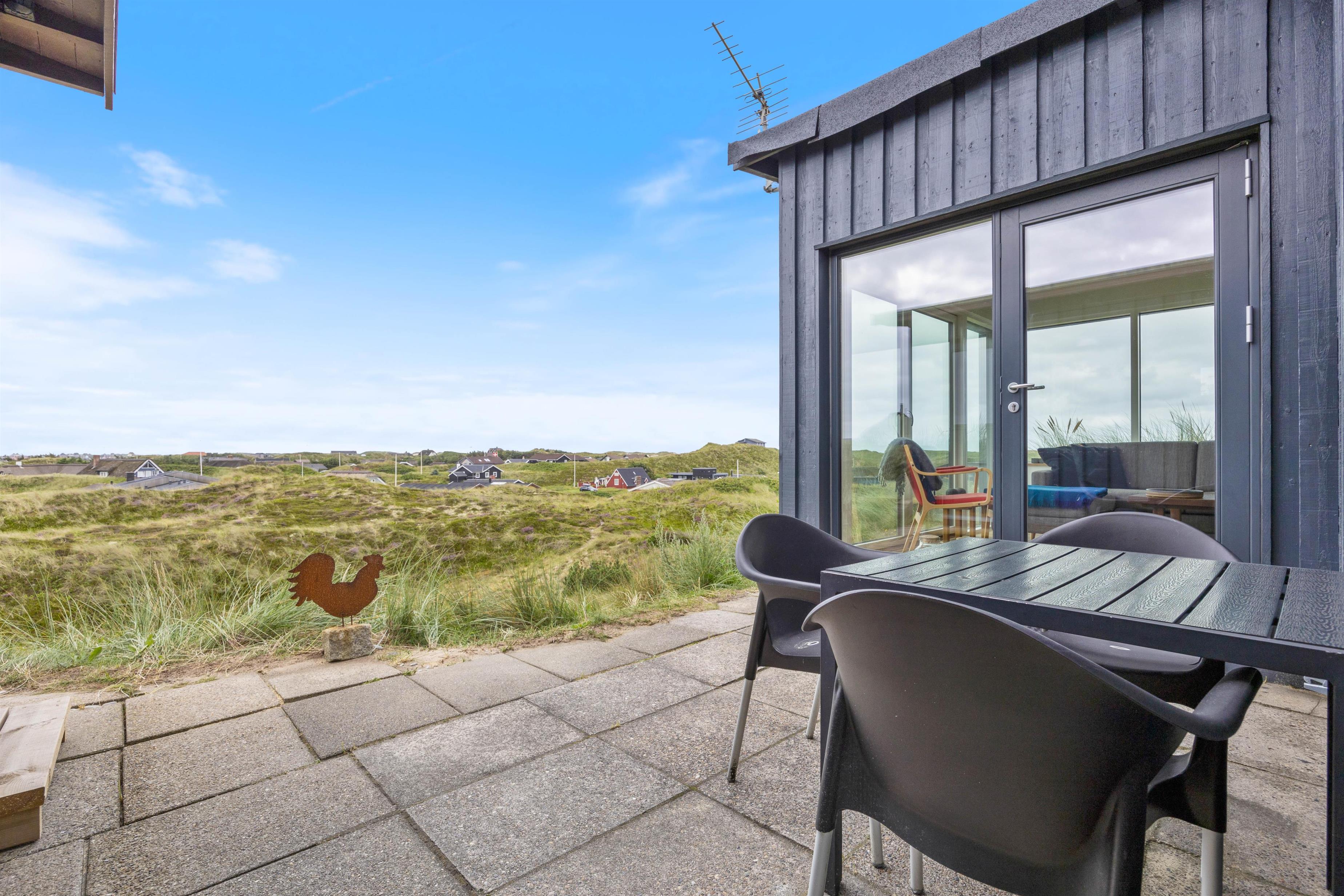 Ternedalen 31 er hel unik med sin høje placering og udsigt. Ydermere kan man nemt og hurtigt komme til vandet, grundet den korte afstand. Til feriehuset hører der en skøn terrasse, som man kan sidde på i timevis og nyde naturen. Når vejret tillader det, så lad terrassedøren fra stuen stå åben og tag maden med ud. Her kan I tilberede maden på grillen, nyde en drink og måske endda høre Vesterhavets brusen.