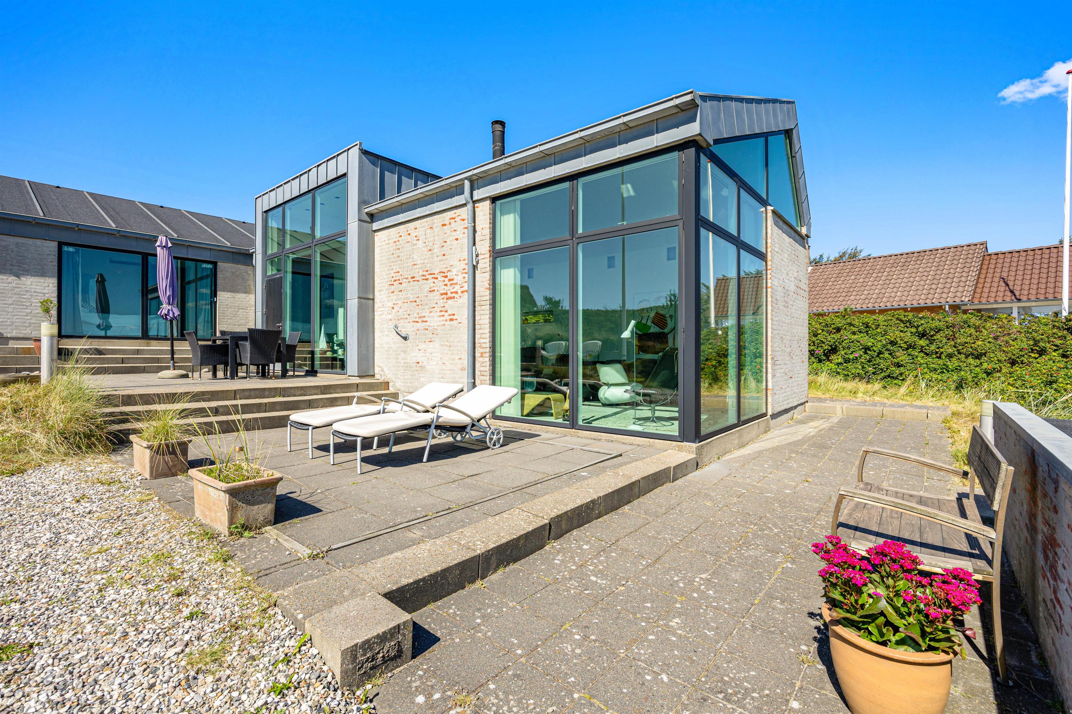Vest for feriehuset finder du endnu en terrasse. Den ligger i det åbne klitlandskab og tilbyder dermed den smukkeste udsigt over klitterne og til Vesterhavet – helt ideel til de smukke solnedgange.