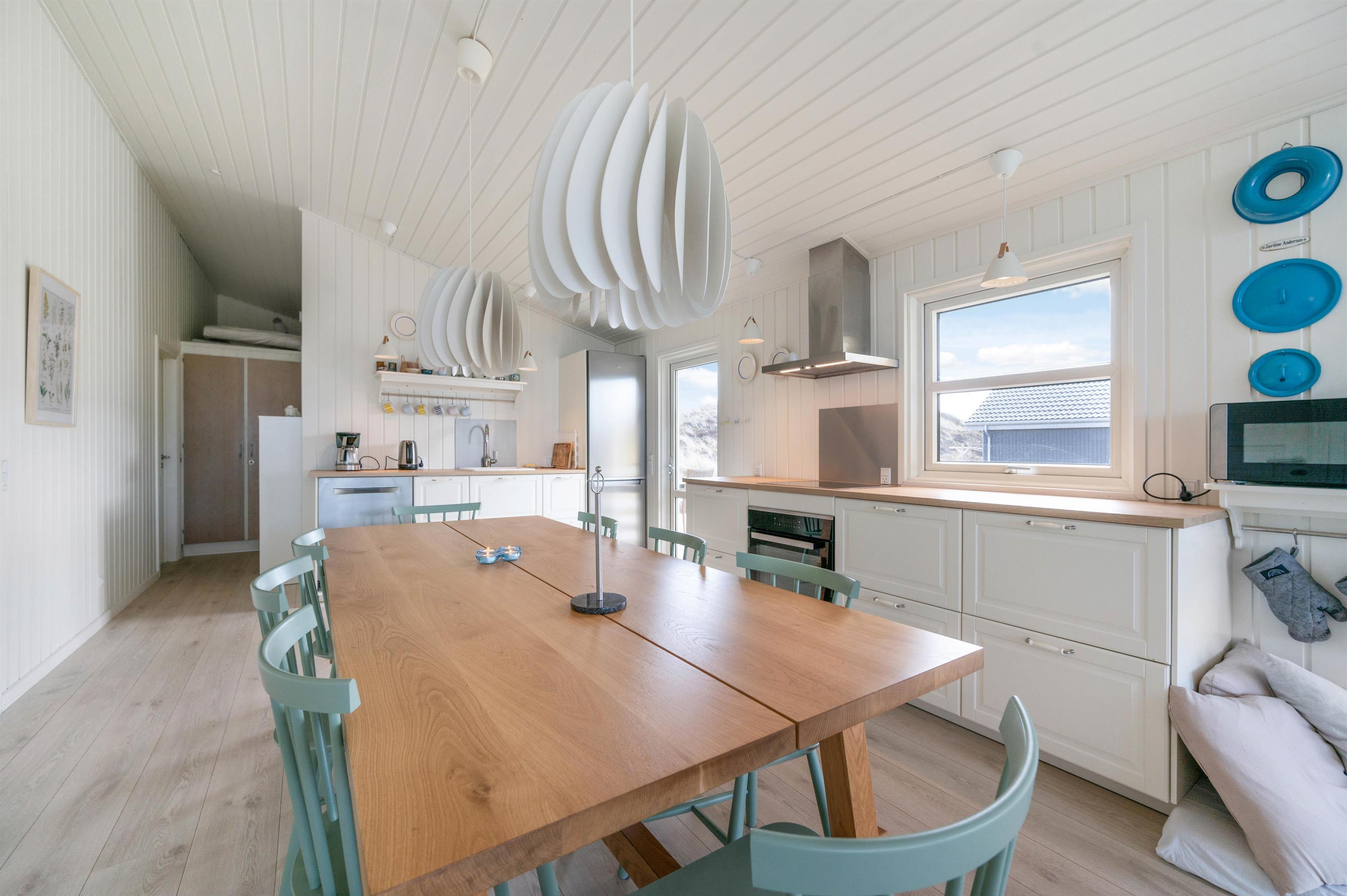 Noget af det skønneste ved et ophold i sommerhuset er den korte afstand til havet og de brede strande. Faktisk kræver det ikke mere en 5-10 minutter på gåben for at nå vandet, der ligger 450 meter fra adressen. Når I ikke tilbringer dagene ved vandet, kan I slappe af på terrassen på den dejlige naturgrund, hvor der er havemøbler, grill og stangtennis til rådighed.
