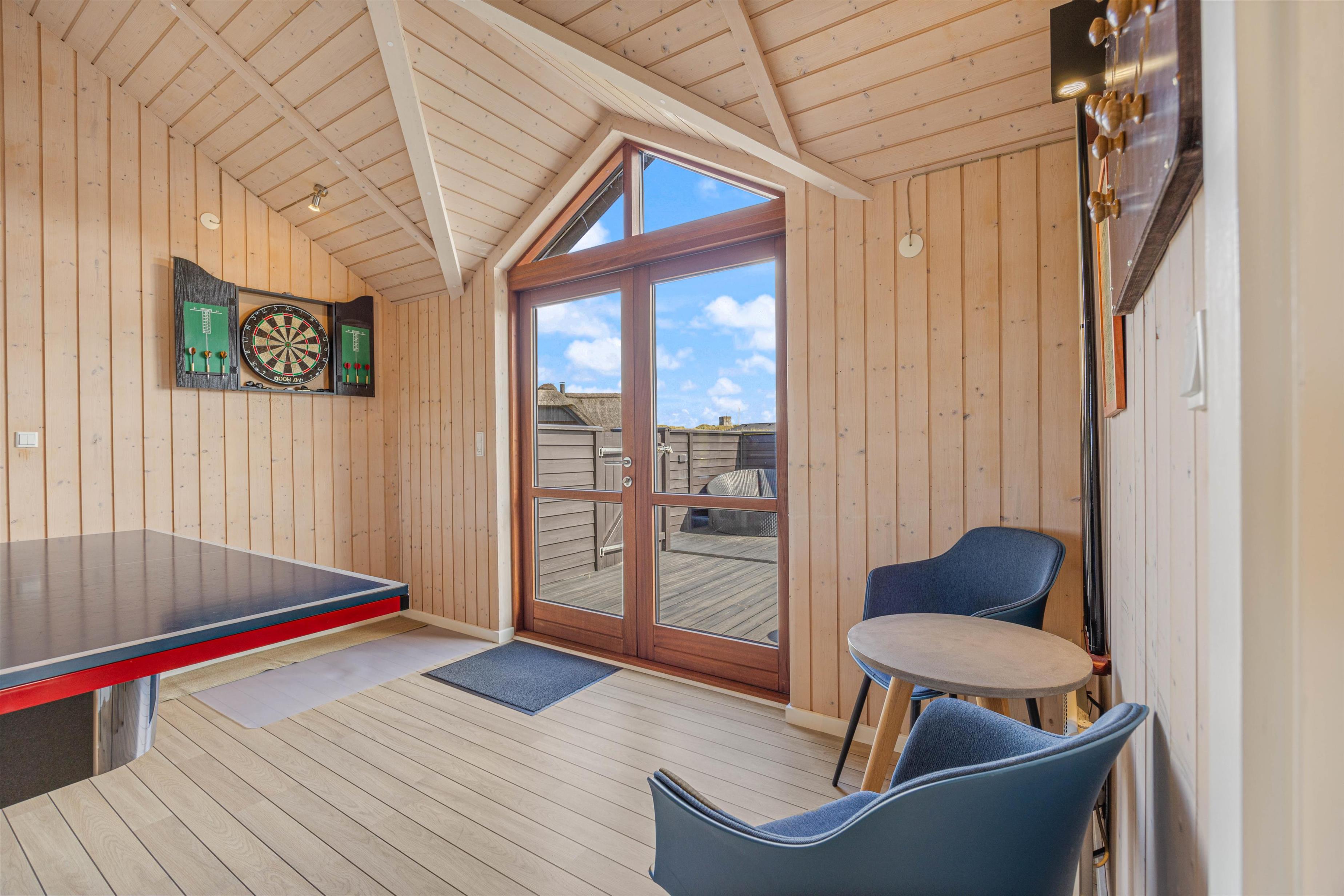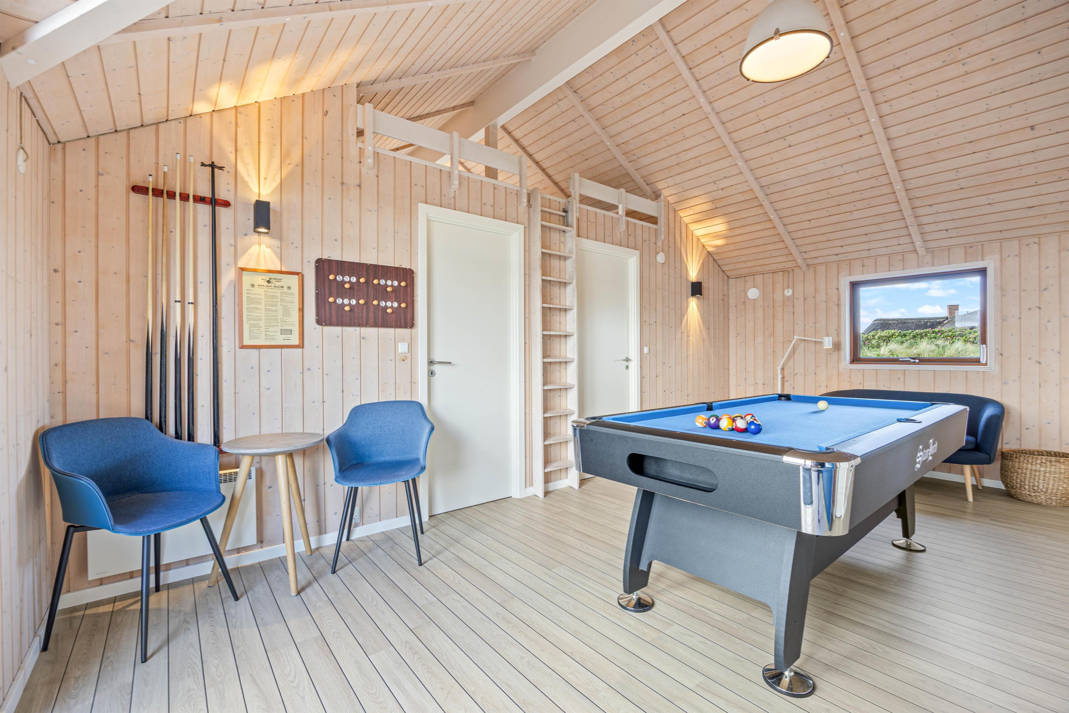 På Klitdalen 43 kan der tilbringes mange timer med sjovt samvær rundt om billardbordet, et spil dart eller hvad med en frisk bordtennisturnering? Et aktivitetsrum er altid et hit, men måske især på dage, hvor vejret med frisk vind får jer pustet hjem fra jeres lange gåtur på stranden.