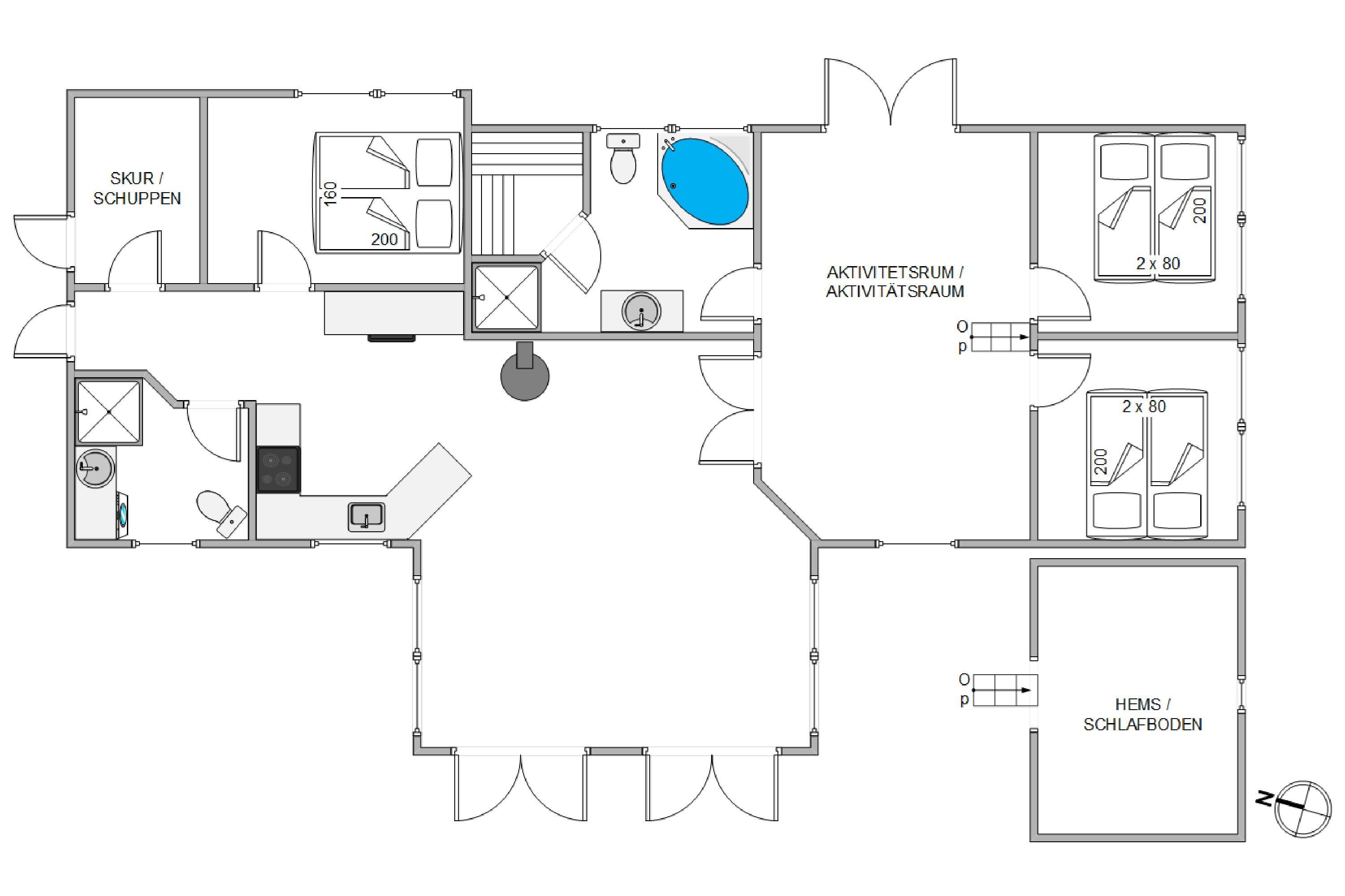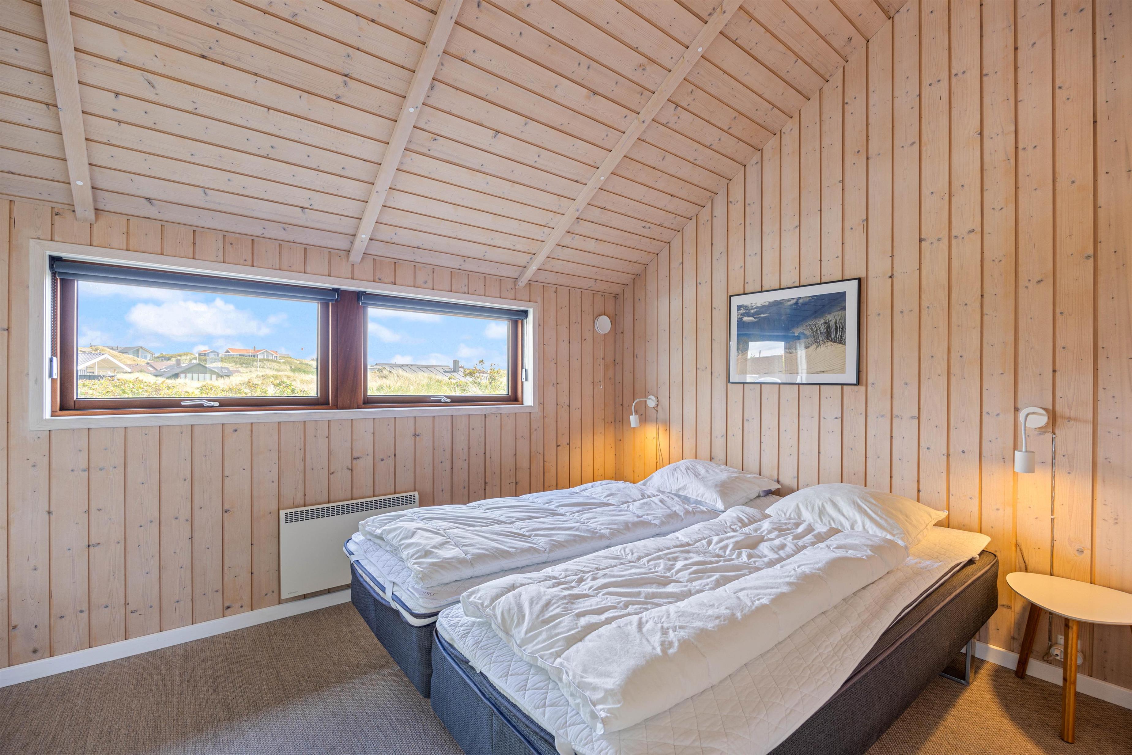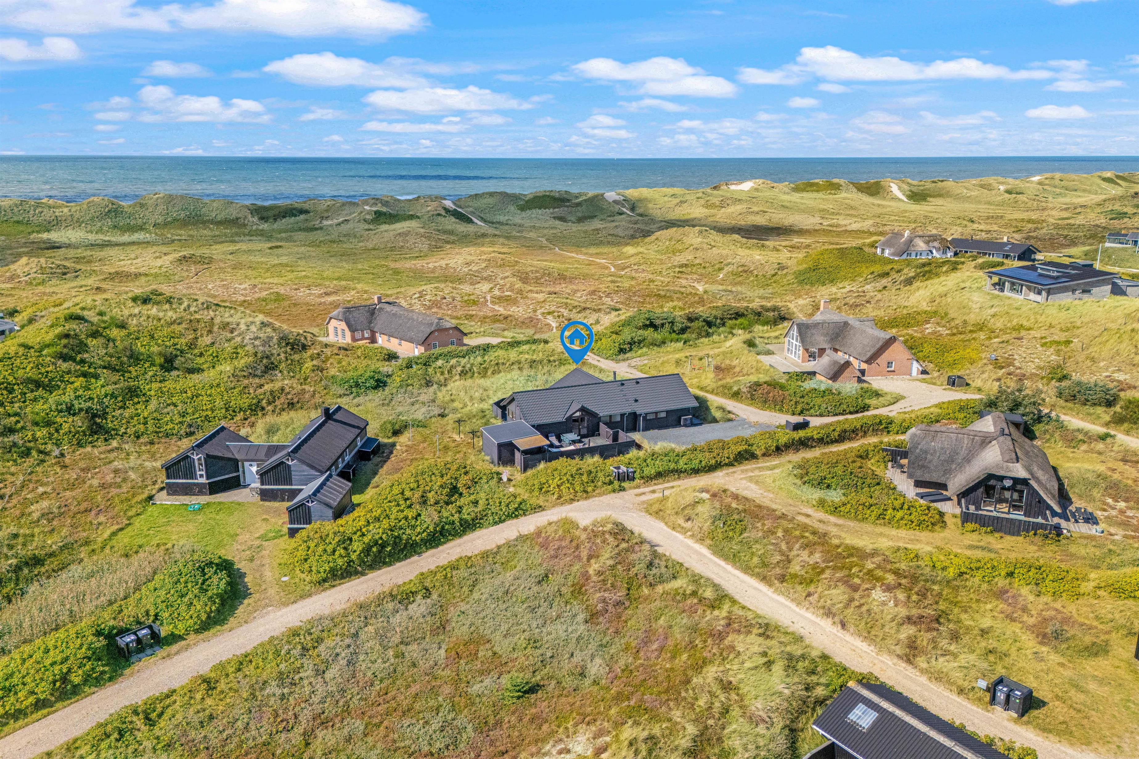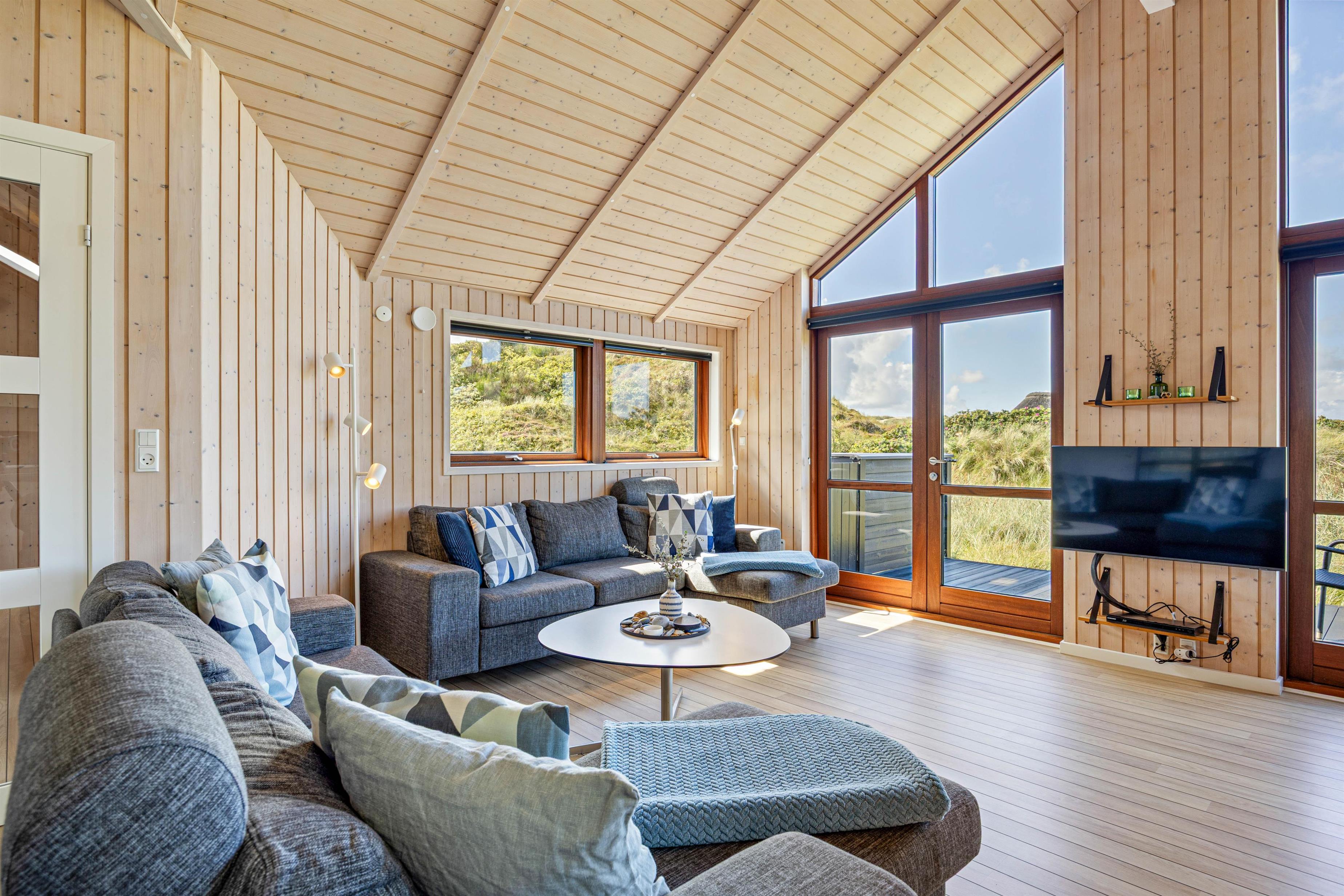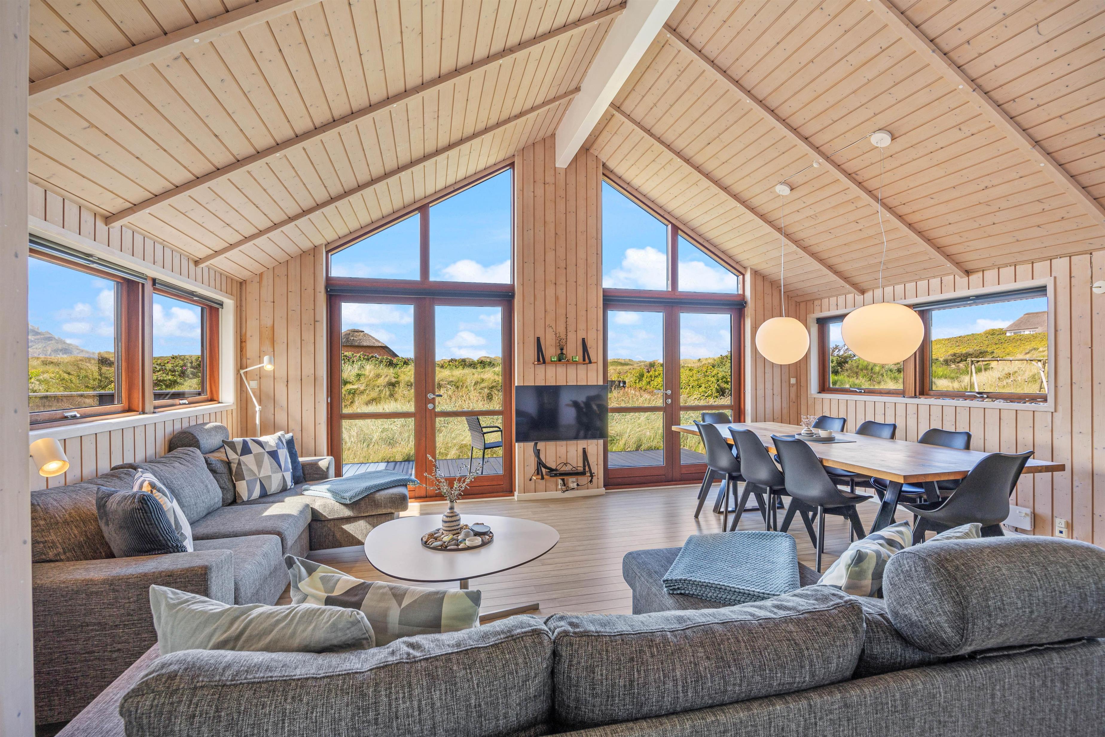 Dette superhyggelige hus med det skønne lysindfald og de mange gode detaljer, garanterer skøn ferie hele året rundt. Den energivenlige varmepumpe og hyggeskabende brændeovn sikrer, at her altid varmt og behageligt. Et moderne veludstyret åbent samtalekøkken og et langt lækkert spisebord lægger op til fælles madlavning og efterfølgende lange hyggelige samtaler i spisebordlampens skær, imens solnedgangen spejler sig i ruden og ilden knitrer i kaminen.