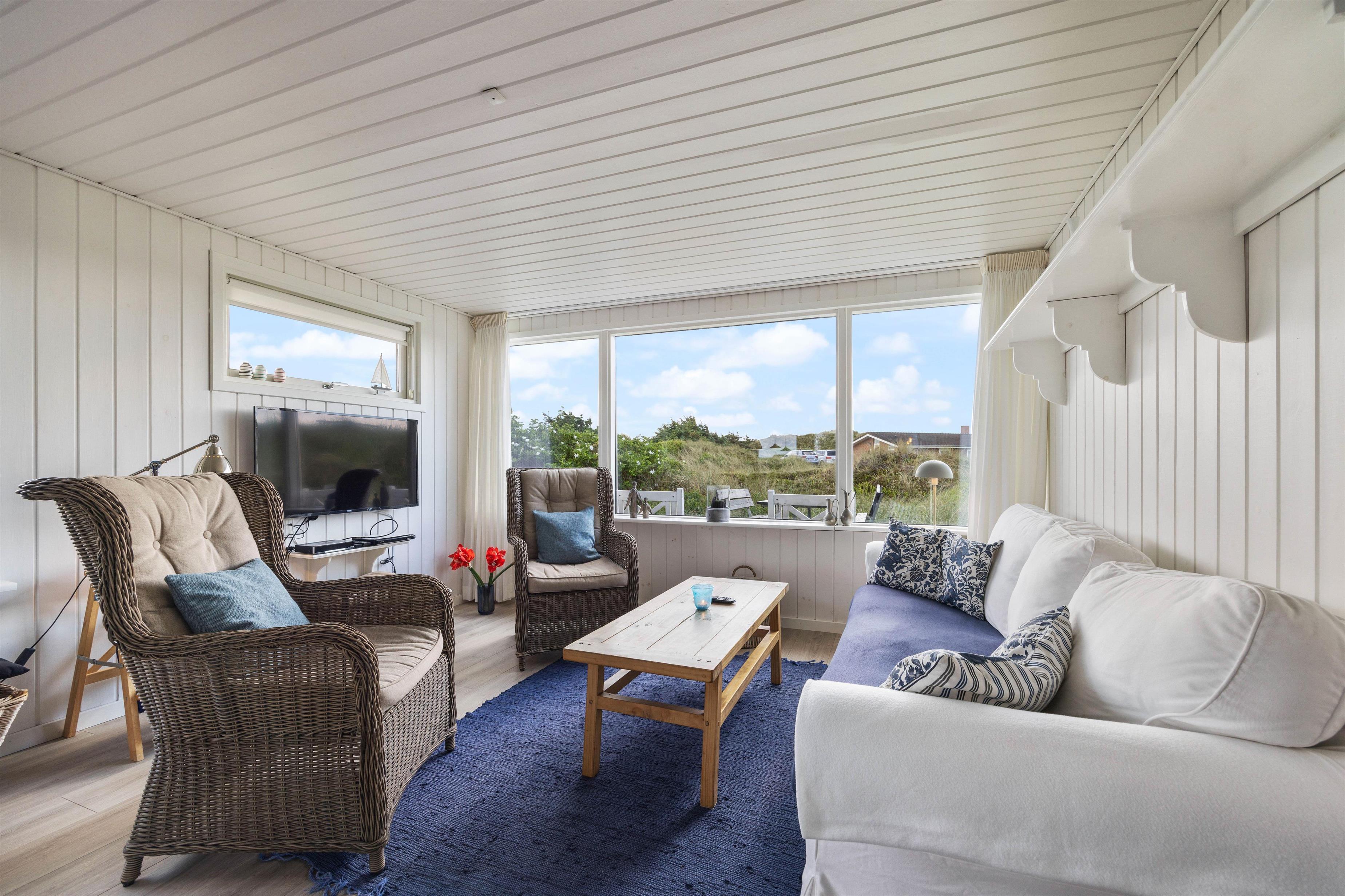 Lys indretning, dejlig klitgrund og gode hyggekroge alt sammen på Sortebærdalen 21