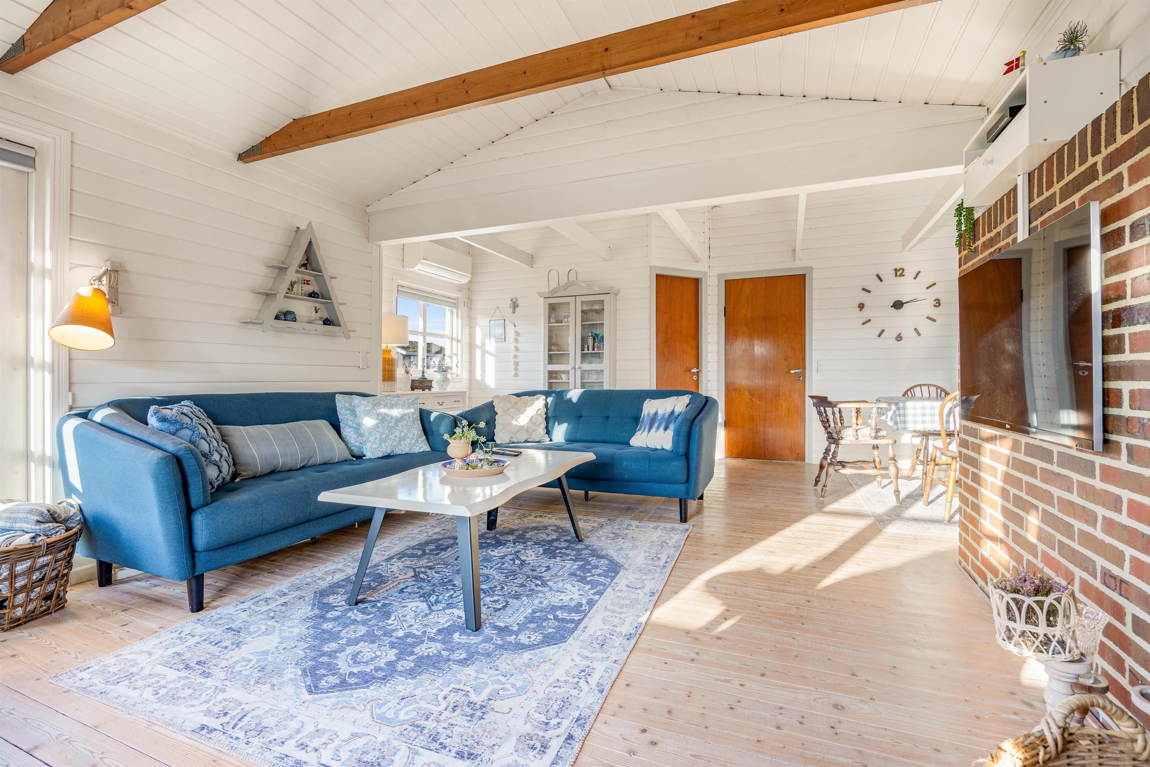 Sommerhuset på Sortebærdalen 25 har i 2020 gennemgået en omfattende renovering, som har resulteret i en velafstemt kombination af klassiske sommerhustræk som brændeovn og bjælker og moderne, nordisk stil. Alt i alt får I her en charmerende atmosfære med hyggen i centrum. Sommerhuset kan snildt huse op til 8 feriegæster, som kan fordele sig 4 værelser, hvoraf 3 af værelserne er med dobbeltsenge og det sidste med 2 enkeltsenge.