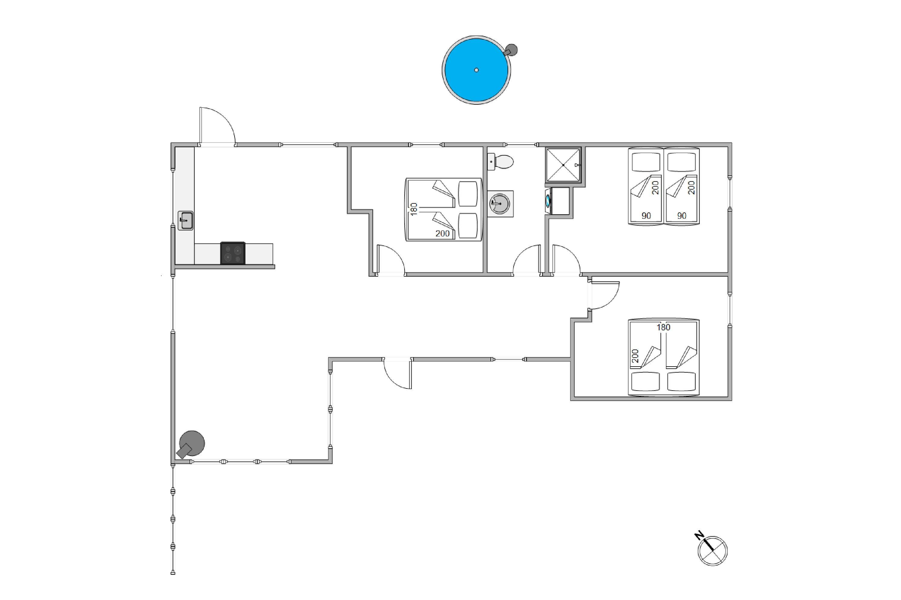 Efter et godt feriemåltid kan I slænge jer i sofaområdet, hvor brændeovnen spreder varme og hygge. Her kan I slappe af og nyde en god film eller hygge jer med en god bog. I sommerhuset er der tre gode værelser, alle med komfortable senge og plads til at slappe af. Alle kan få en behagelig nattesøvn, så I er friske og veludhvilede til en ny dag på stranden eller andre aktiviteter i området.
