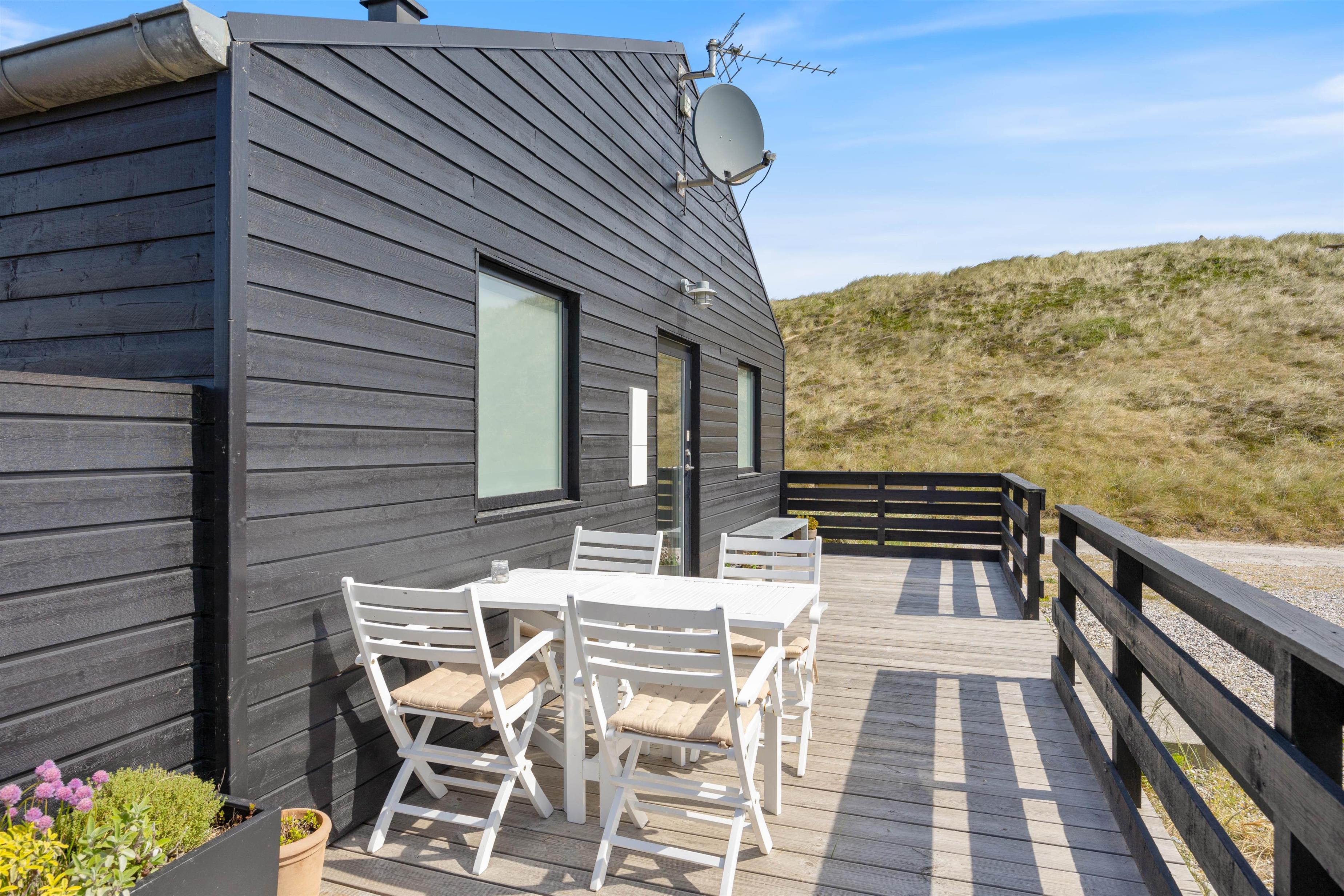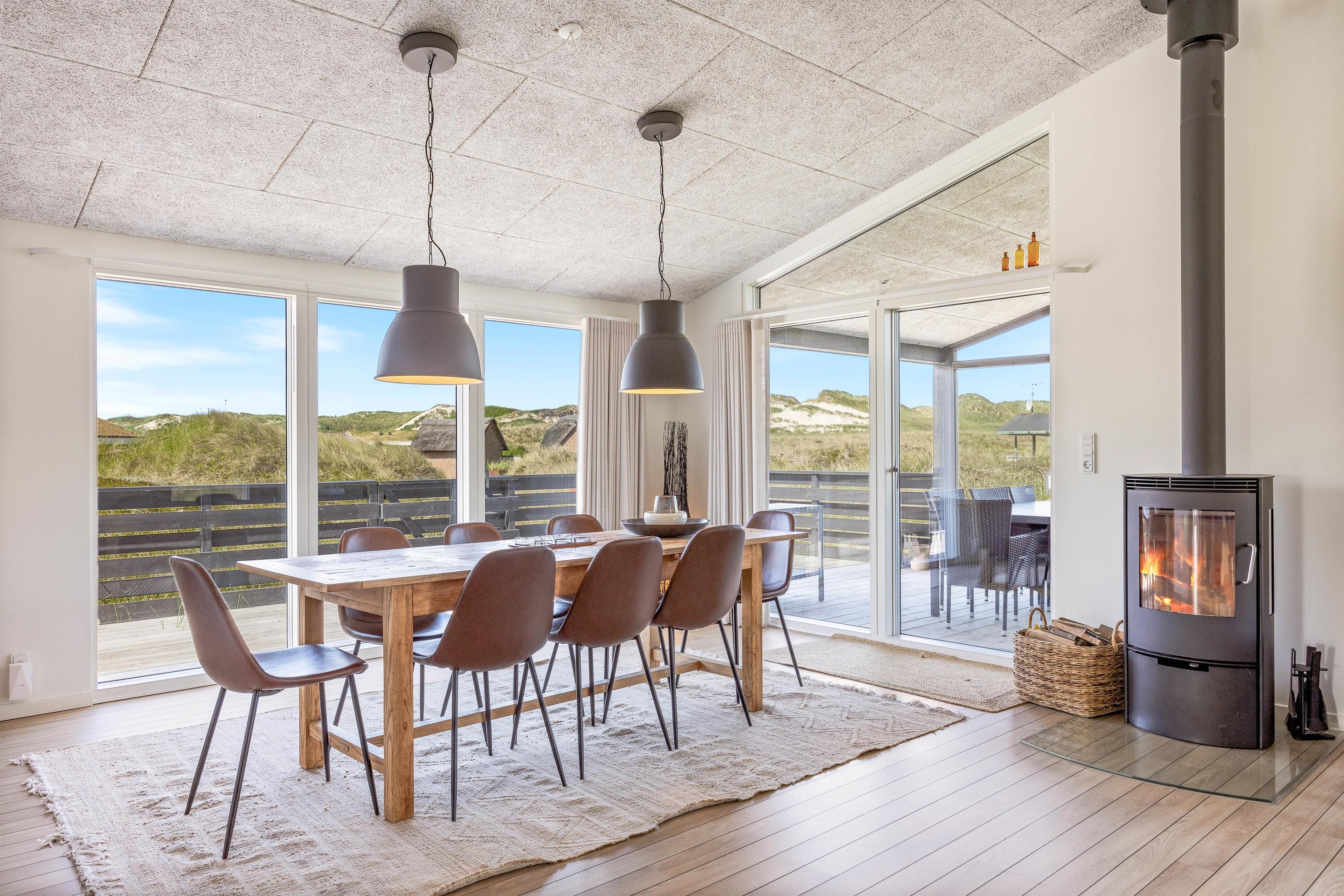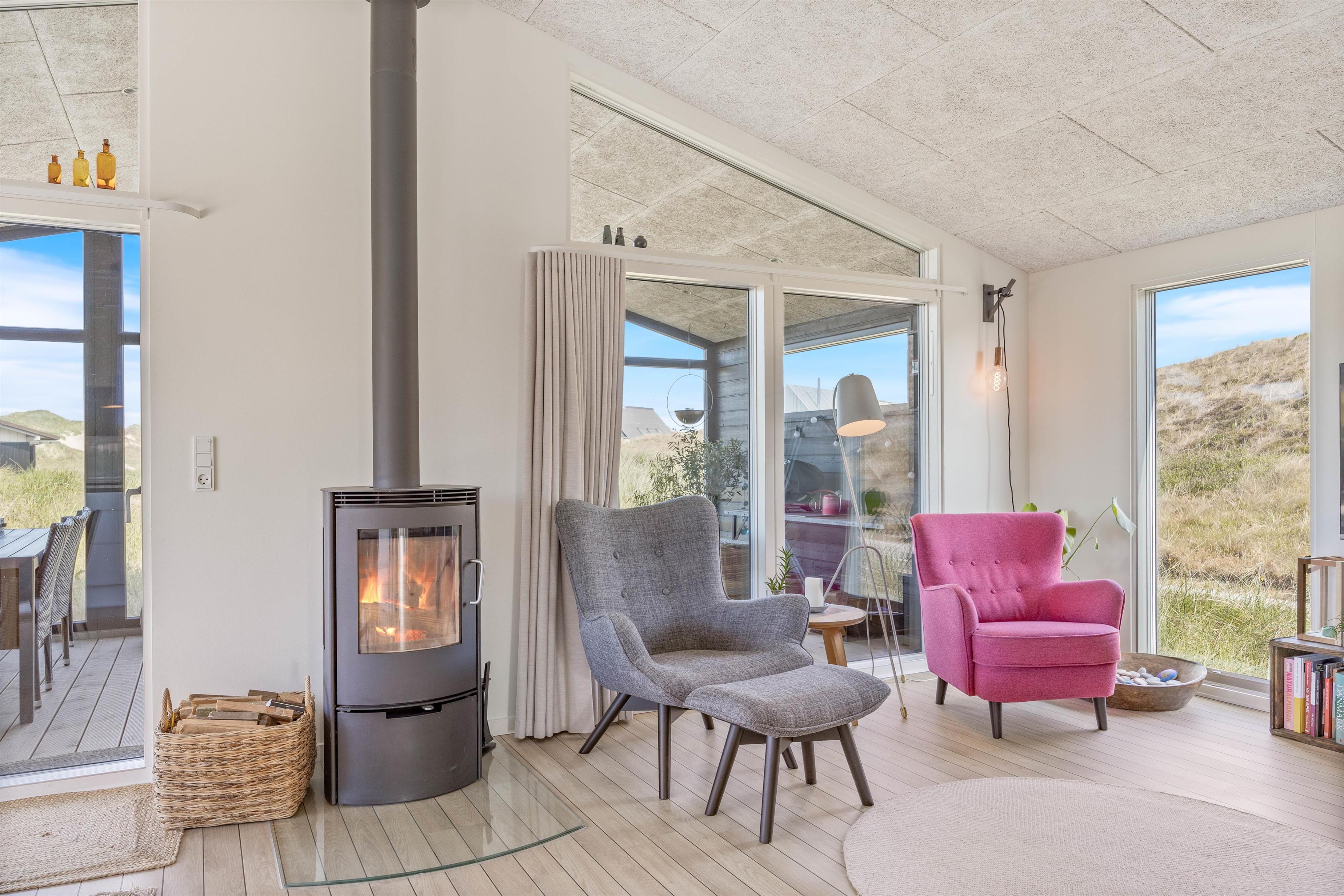 Feriehuset er som et 'ægte' feriehus opført i træ, hvilket udstråler feriehygge på terrassen eller foran den tændte brændeovn. Og feriehuset passer flot ind i klitlandskabet ved Vesterhavet, hvor du sikkert vil nyde mange gåture langs vandet. Det er et veludstyret feriehus, der egner sig perfekt til familien eller vennerne, der er på udkig efter et moderne og lækkert feriehus