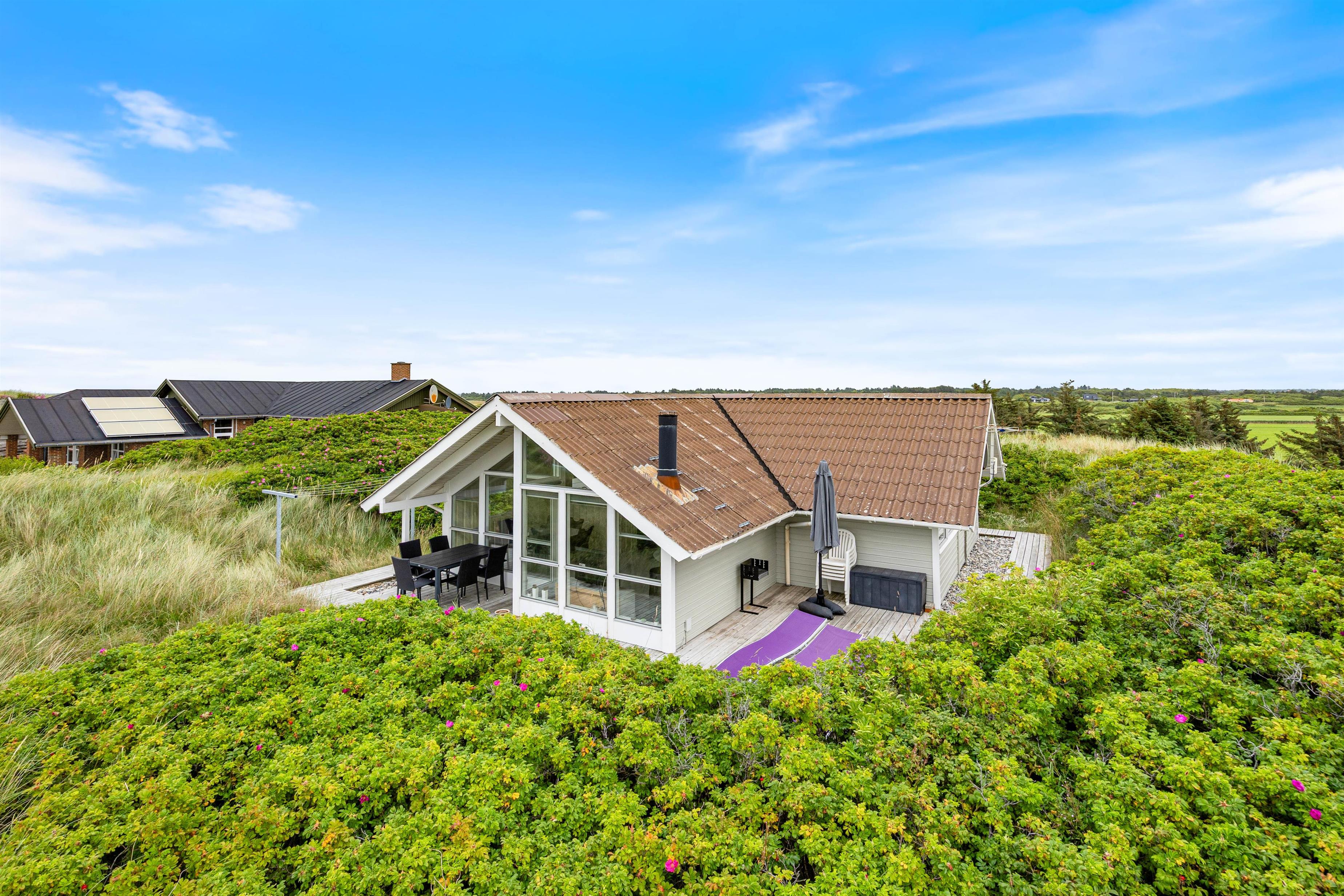 Feriehus med smuk udsigt over klitlandskab mod vest i Houvig