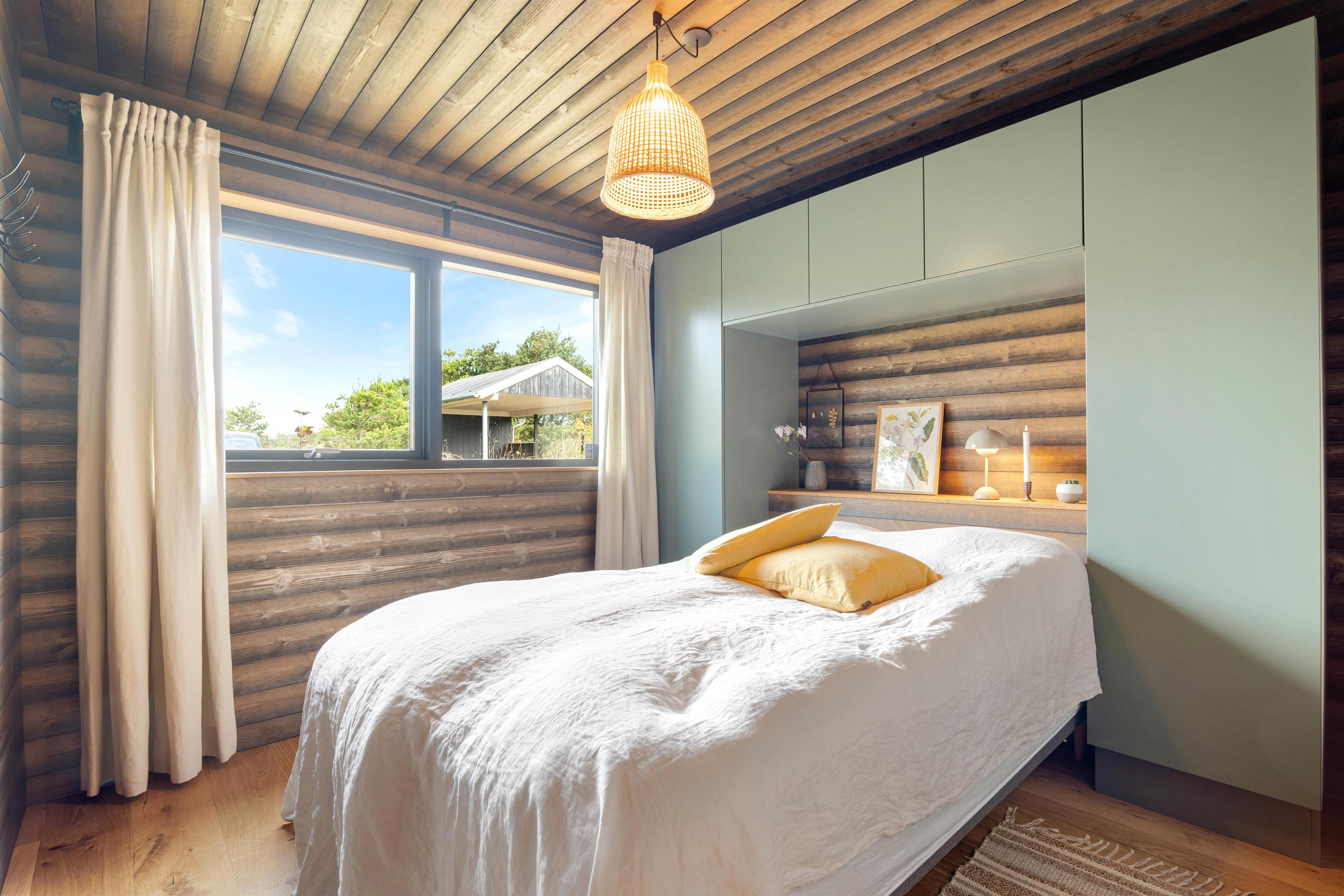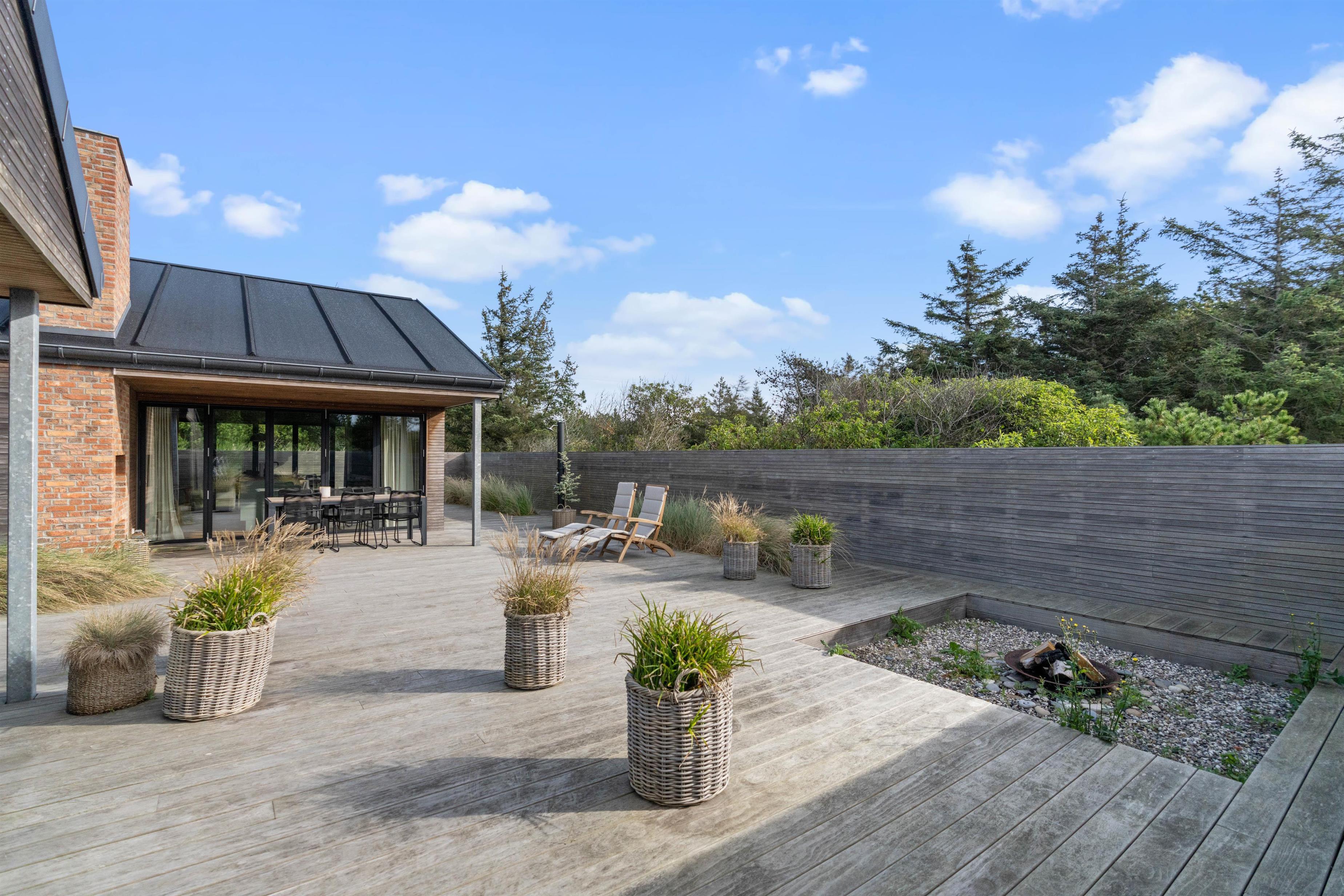 Sommerhuset har en helt unik indretning og de store Velux ovenlysvinduer tillader sollyset at strømme ind i feriehuset. Der er 3 soverum med dobbeltsenge og et flot badeværelse med badekar samt gæstetoilet. I stuen finder I bl.a 2 indbyggede biobrændere, hvor I kan sidde og slappe af og nyde flammerne i pejsen efter en dejlig spadseretur på stranden.