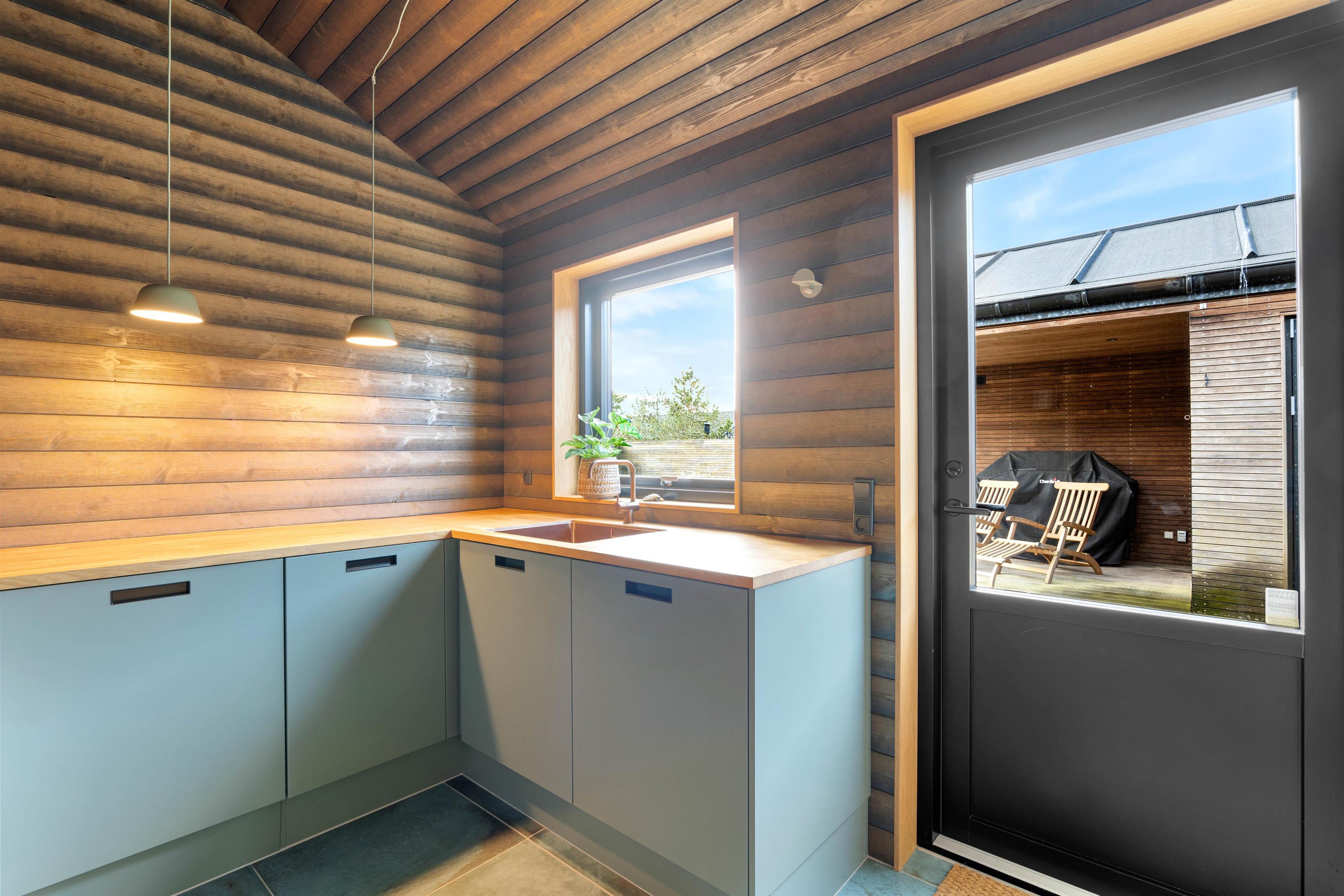 Feriehuset indeholder alle de moderne faciliteter, der skal til for at lette hverdagens gøremål på ferien, såsom vaskemaskine, tørretumbler og opvaskemaskine. Der er ventilationsanlæg og luft-til-vand varmepumpe med vandbåren gulvvarme i alle rum, som altsammen er med til at holde energiforbruget på et lavt niveau.