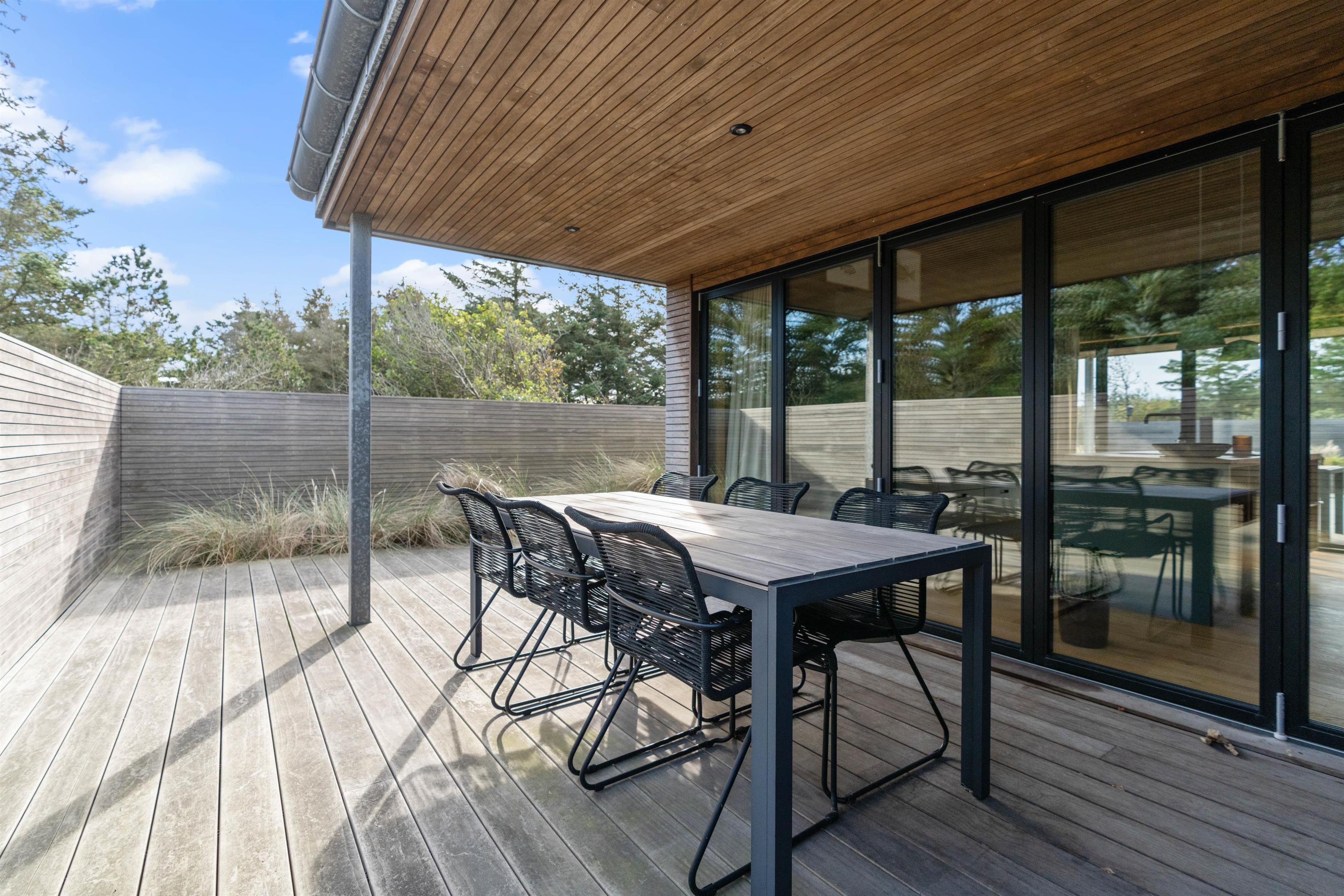 Lige fra ankomsten på adressen Skovdalen 14 fornemmer I et fantastisk og helt igennem specielt sommerhus, opført i kvalitetsmaterialer fra top til bund. Sommerhuset er fordelt på 120 m2 og rummer plads til 6 personer. Det skønne køkken med loft til kip og de store glaspartier mod den overdækkede terrasse gør, at terrassen nærmest trækkes ind i rummet.