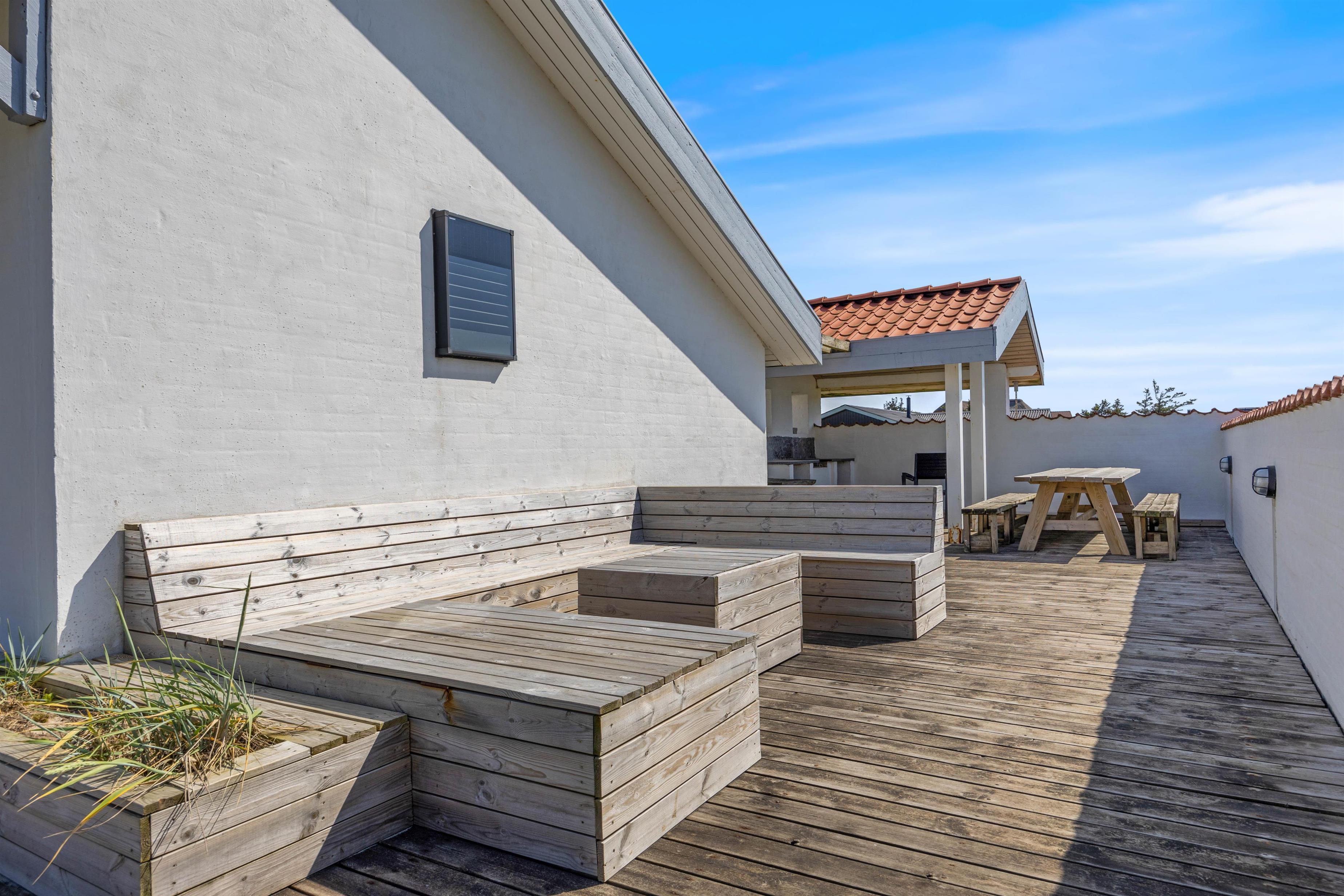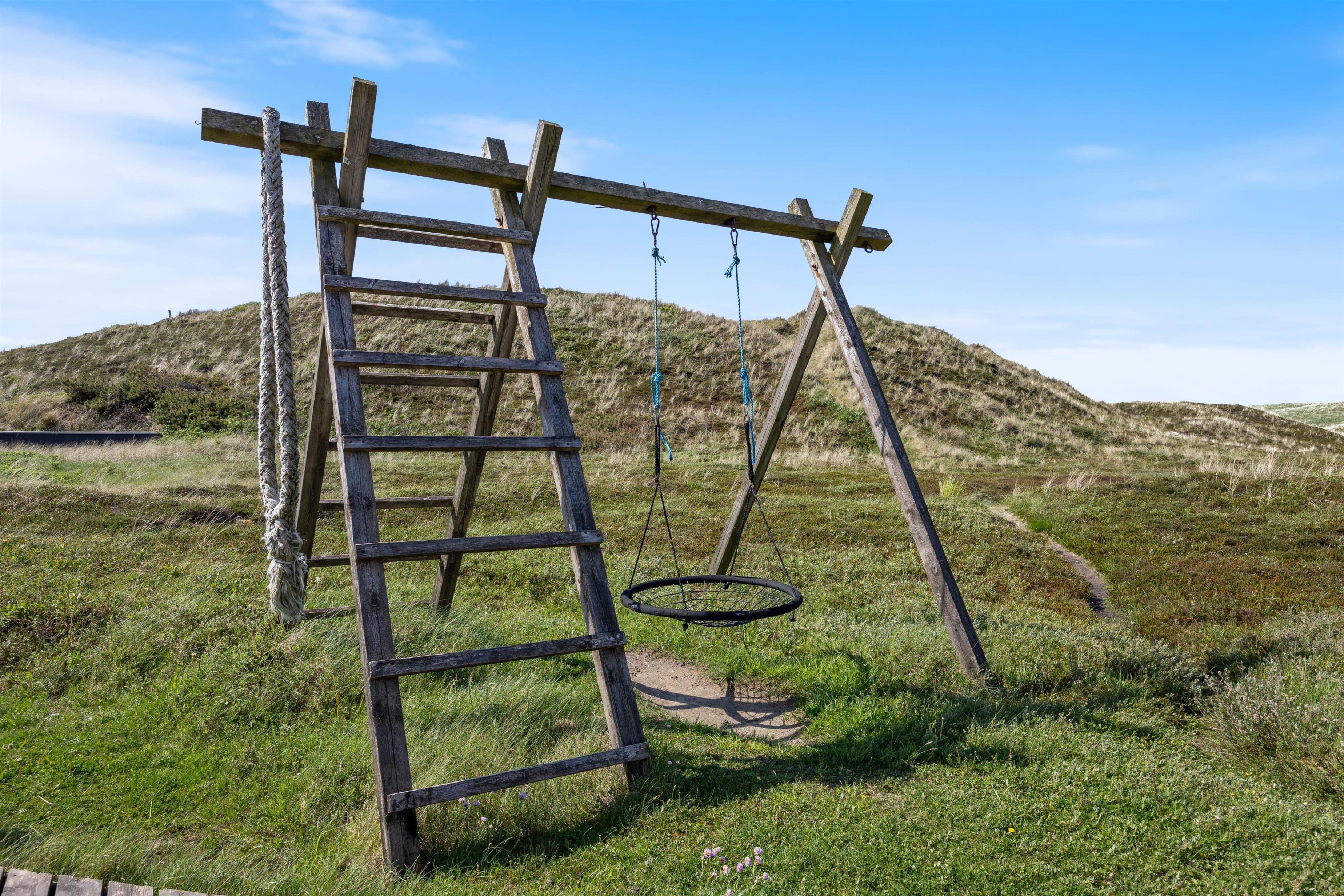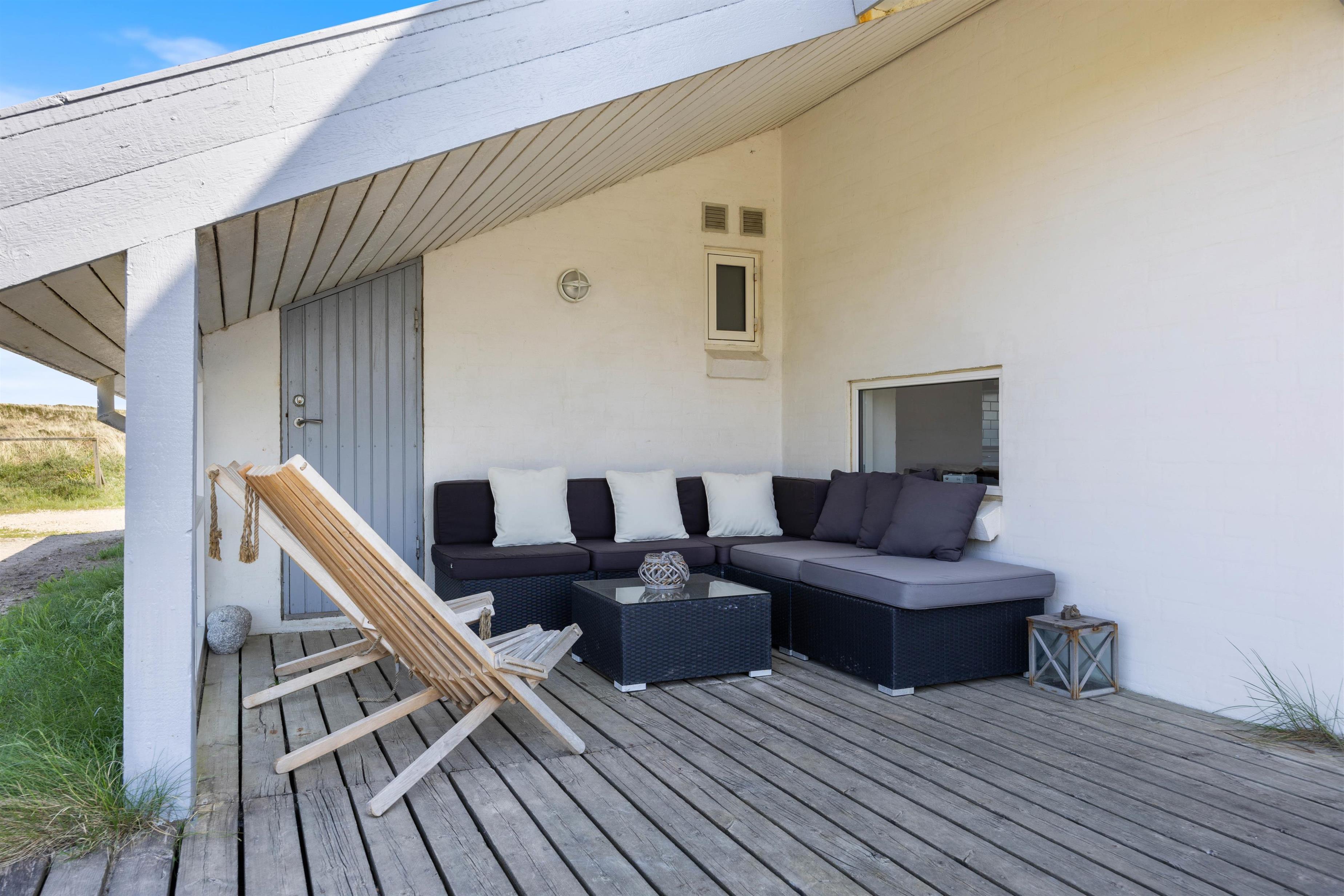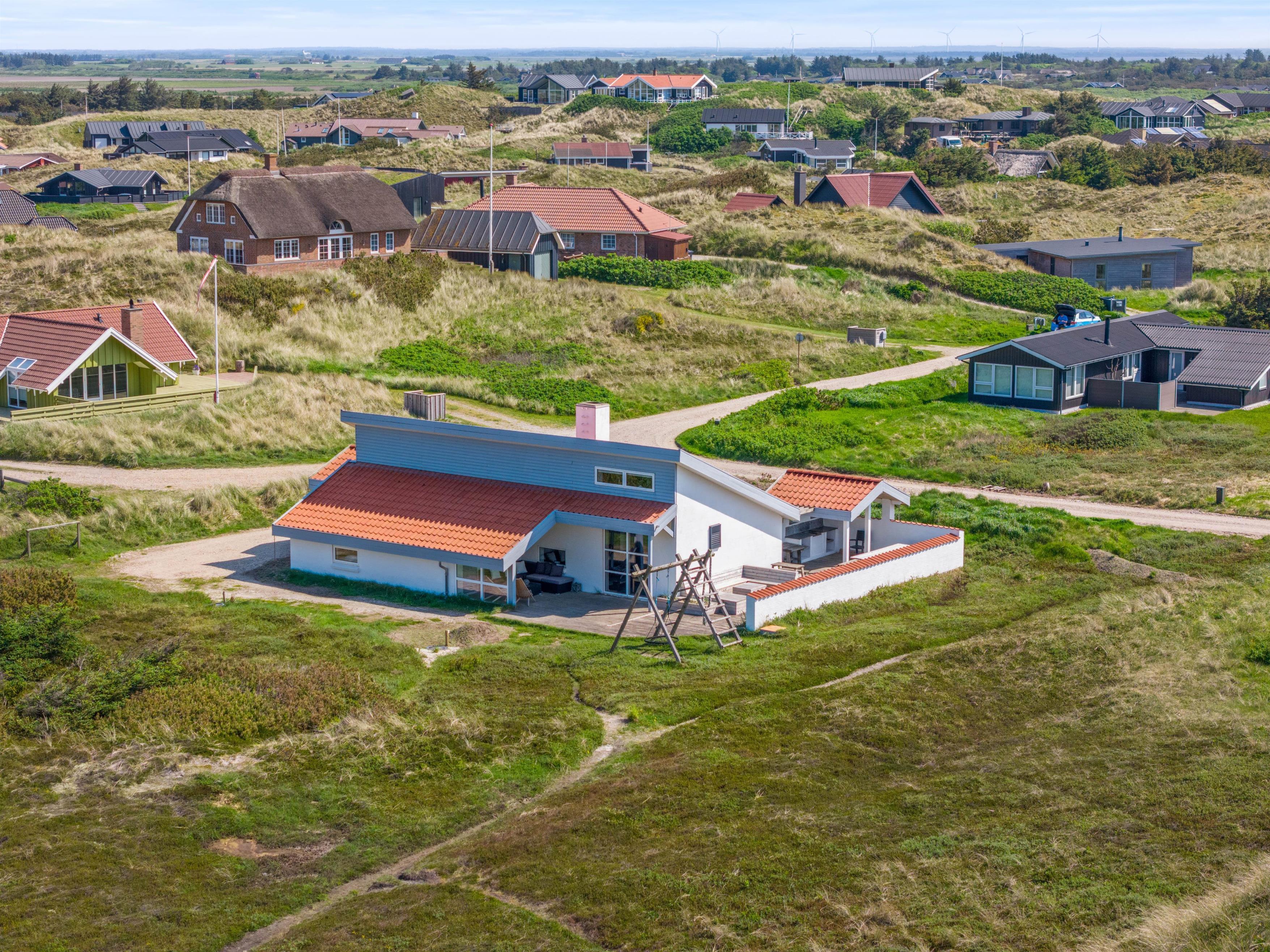 Feriehuset på Mågedalen 77 i Houvig ligger på en 2500 m2 stor klitgrund og giver derfor jeres børn masser af plads til at gå på opdagelse. Der er masser af terrasseplads ved feriehuset, hvoraf to dele af terrassen er overdækket, så alle kan finde deres yndlingsplads. Mens I slapper af i solen med en god bog, kan jeres børn boltre sig på gyngen. Om aftenen kan I runde en lun sommeraften af med et lækkert måltid fra grillen.