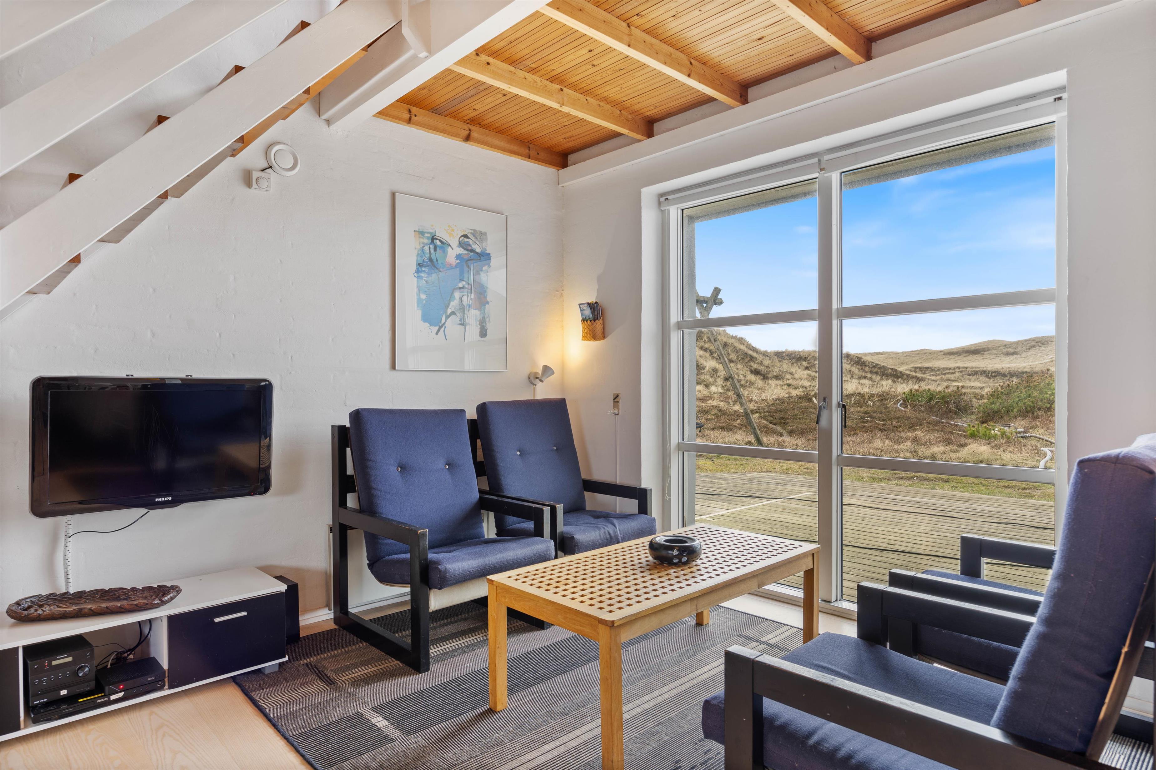 Feriehuset ligger kun ca. 150 meter fra den kilometerlange sandstrand på den danske vestkyst, så en gåtur på stranden er næsten en fast del af dagen i dette feriehus. Det er særligt smukt at se solnedgangen fra klitterne. Fra ferieområdet i Houvig er der kun en kort køretur til den livlige badeby Søndervig, hvor I finder forskellige restauranter, caféer og butikker.