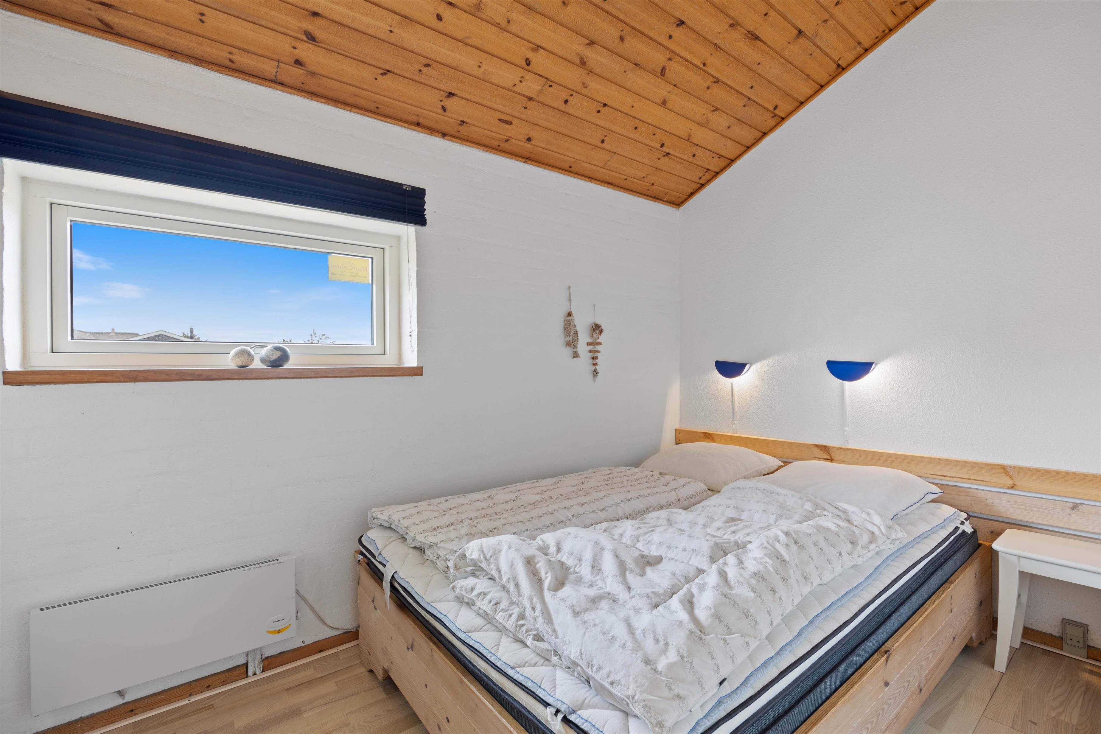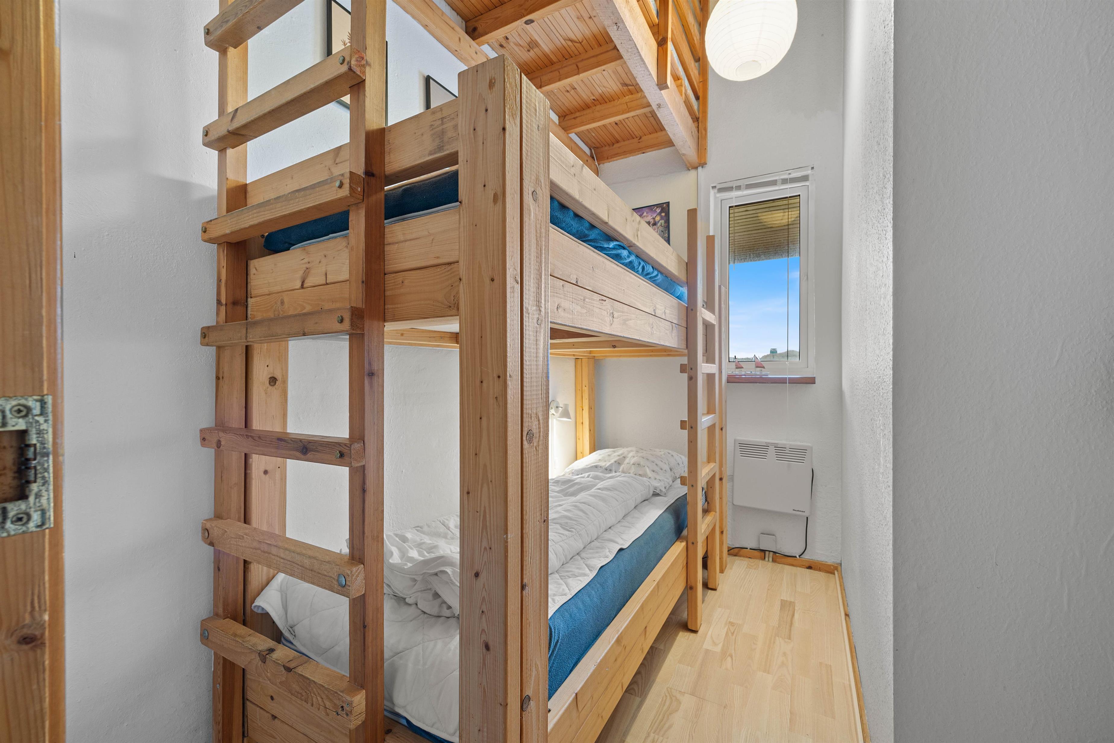 Om aftenen kan I sprede jer ud over de 3 soveværelser i feriehuset. Det ene soveværelse er indrettet med en dobbeltseng og en køjeseng, mens I finder en køjeseng i det andet soveværelse. Det 3. soveværelse har en dobbeltseng. Hvis man ikke ønsker at sove 4 personer i et soveværelse, er der også 2 madrasser på hemsen, som er tilgængelig fra opholdsstuen.