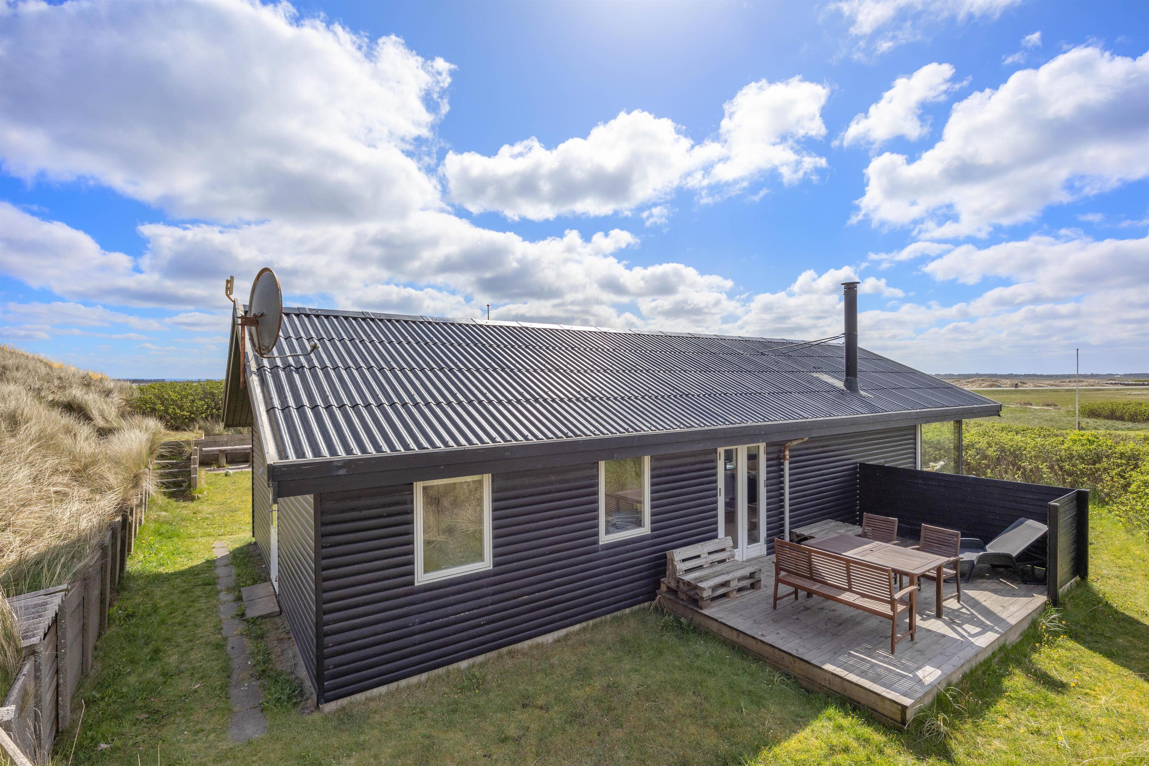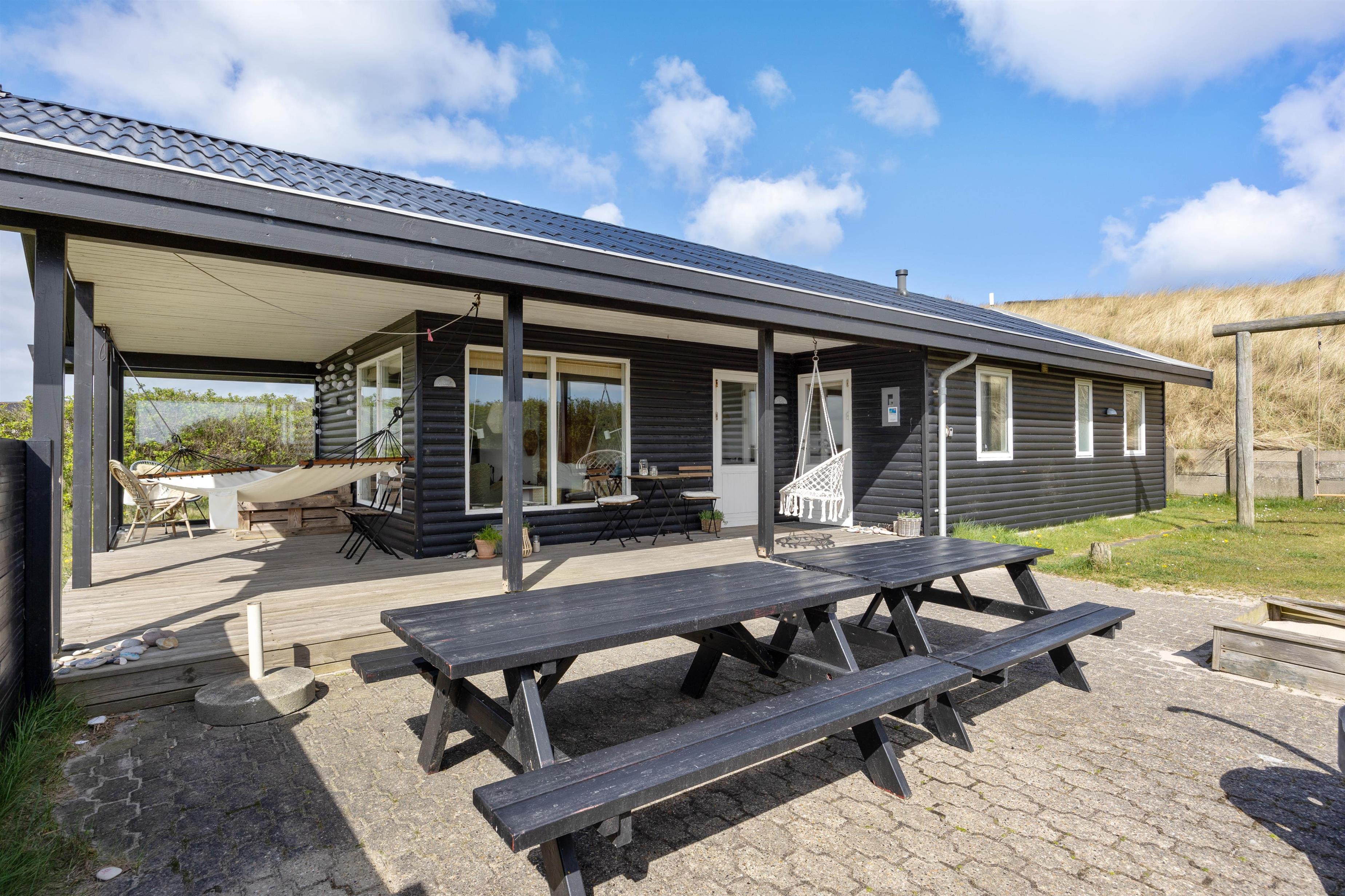 Dette hyggelige sommerhus ligger tæt på klitterne og Vesterhavet. Det er løbende blevet renoveret for at kunne tilbyde gode faciliteter såsom brændeovn, opvaskemaskine, lækkert badeværelse og gode terrasser – altsammen vigtigt for en god ferie med familien.