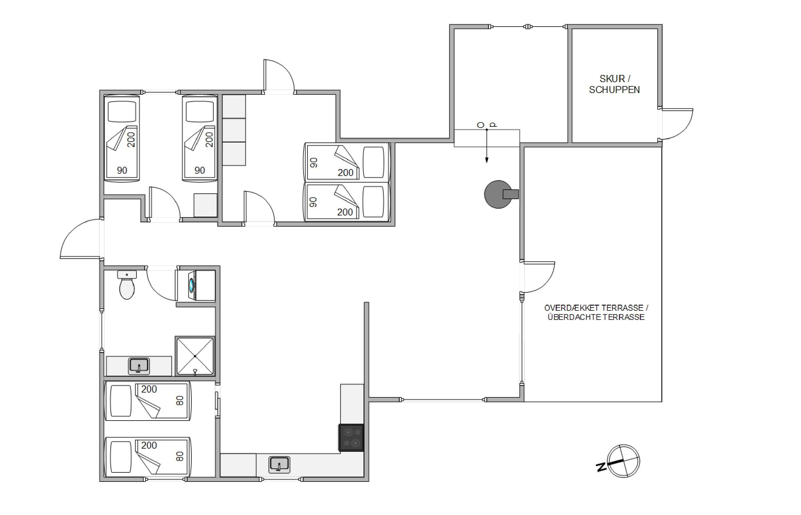 For at sikre jer et behageligt indeklima har sommerhuset desuden en varmepumpe tilknyttet, der kan tilpasses efter jeres ønsker og behov. Uanset om det er varmt eller koldt udenfor, kan I altid nyde en komfortabel og behagelig temperatur inde i sommerhuset.
