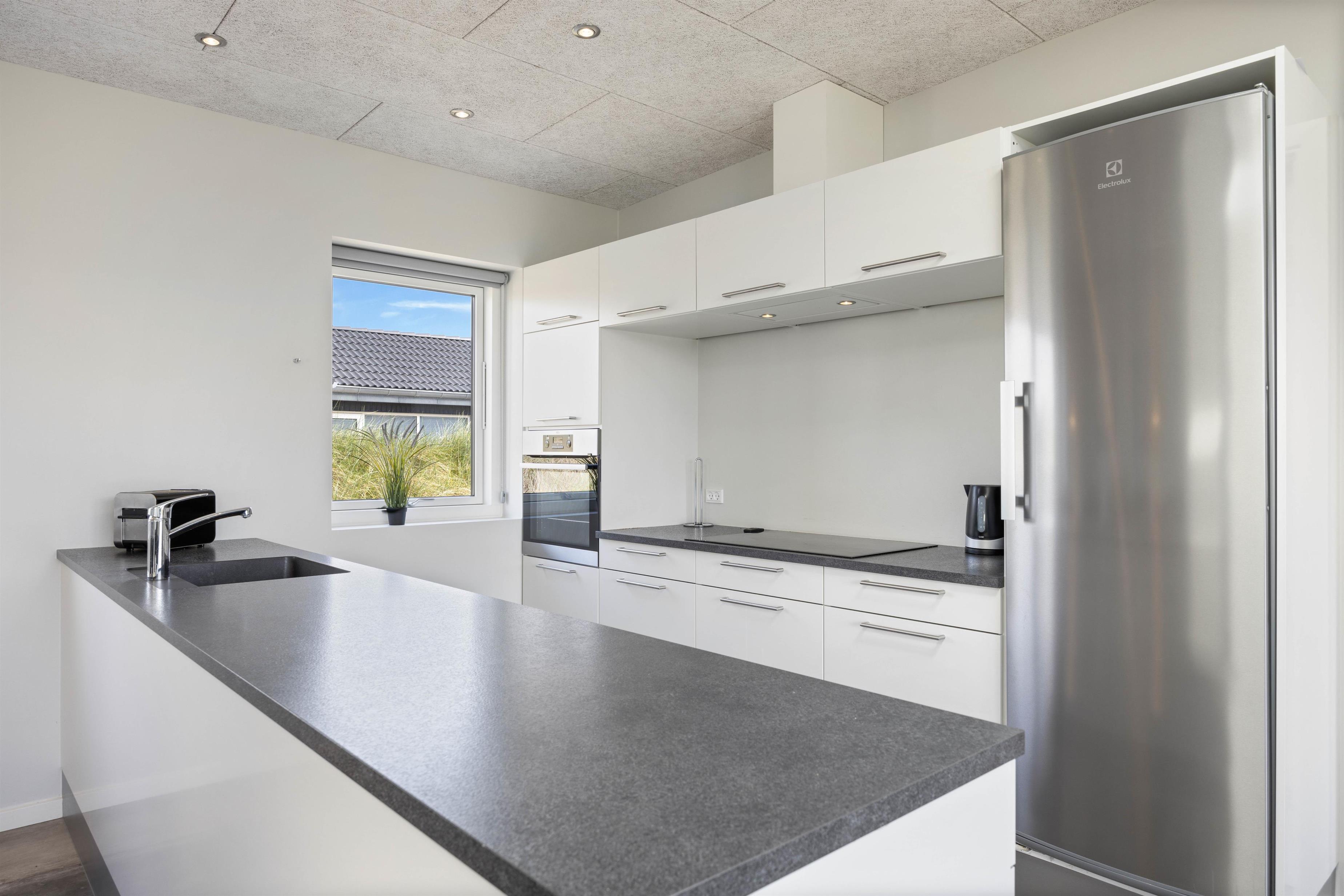 Der er ingen tvivl om, at huset i Houvig er noget ganske specielt. Og I vil helt sikkert føle jer hjemme, så snart I træder ind over dørtærsklen. De store, lyse rum virker nemlig indbydende og imødekommende på sine gæster. Det store opholdsrum rummer både køkken, spiseafdeling og stue og er sirligt indrettet i sort-hvide kontrastfarver. Det åbne køkken er veludstyret og er den perfekte ramme, når middagen skal tilberedes.