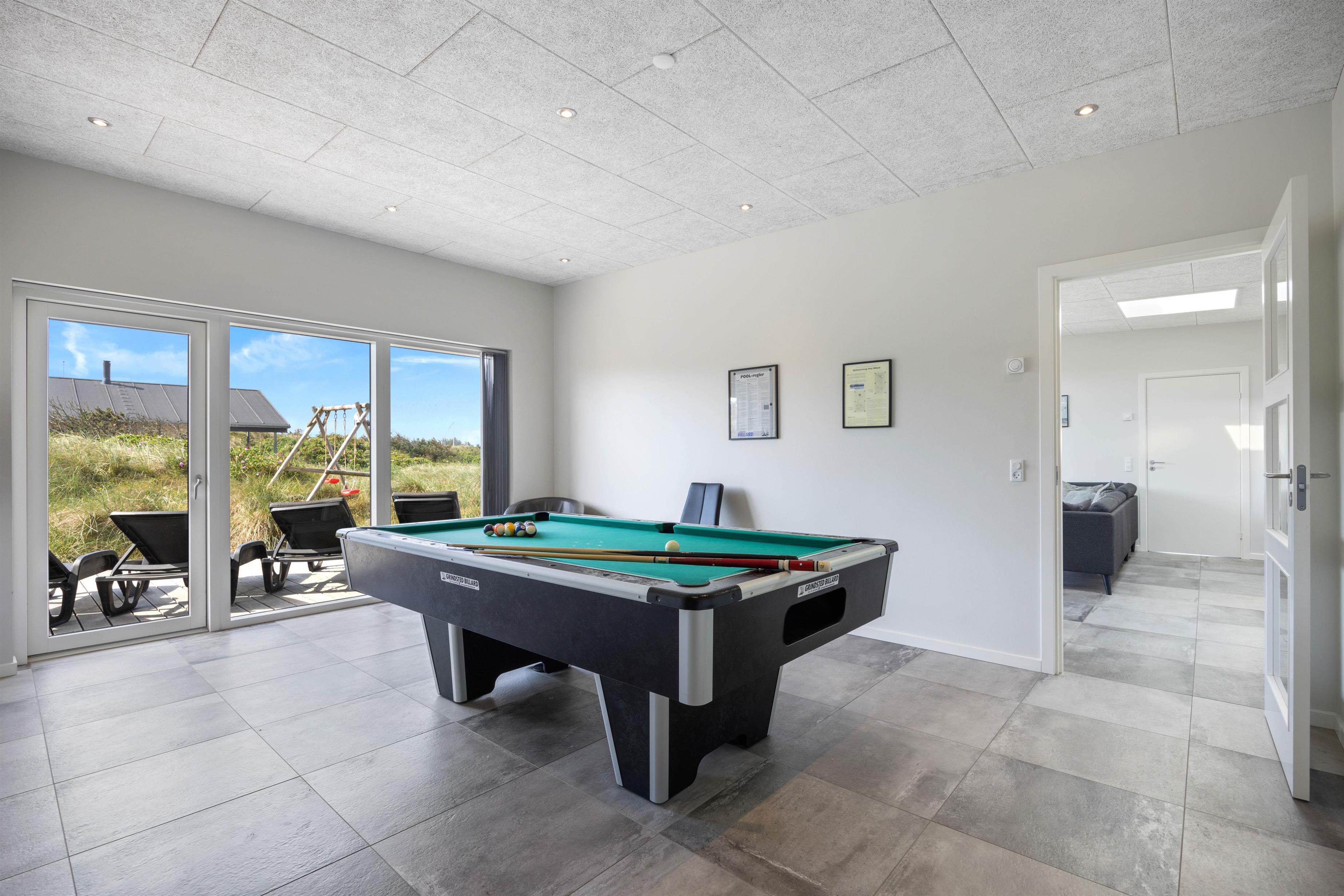 Drømmer I derimod om at sætte lidt fut i dagene med aktiviteter, er der også rig mulighed for det i huset. Og her vil aktivitetsrummet med poolbord med garanti vække konkurrencementaliteten. Måske I skal vædde om, hvem der skal tømme opvaskemaskinen? Mindre børn vil med sikkerhed elske den dejlige naturgrund, hvor der både er sandkasse og gyngestativ. Her kan de fordrive tiden med at bygge sandslotte og køre racebiler i sandet.