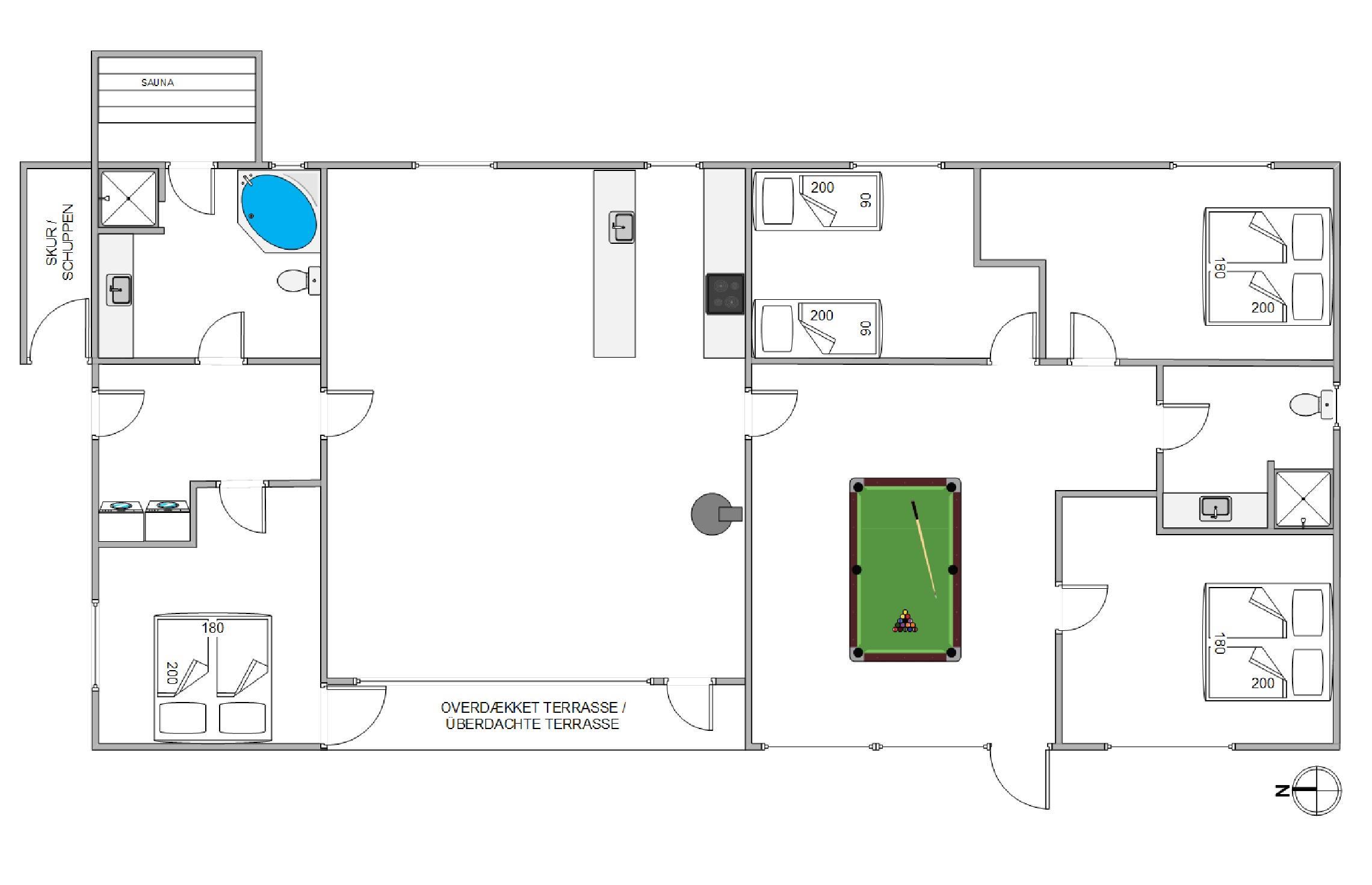 Sommerhus med spa, sauna og poolbord