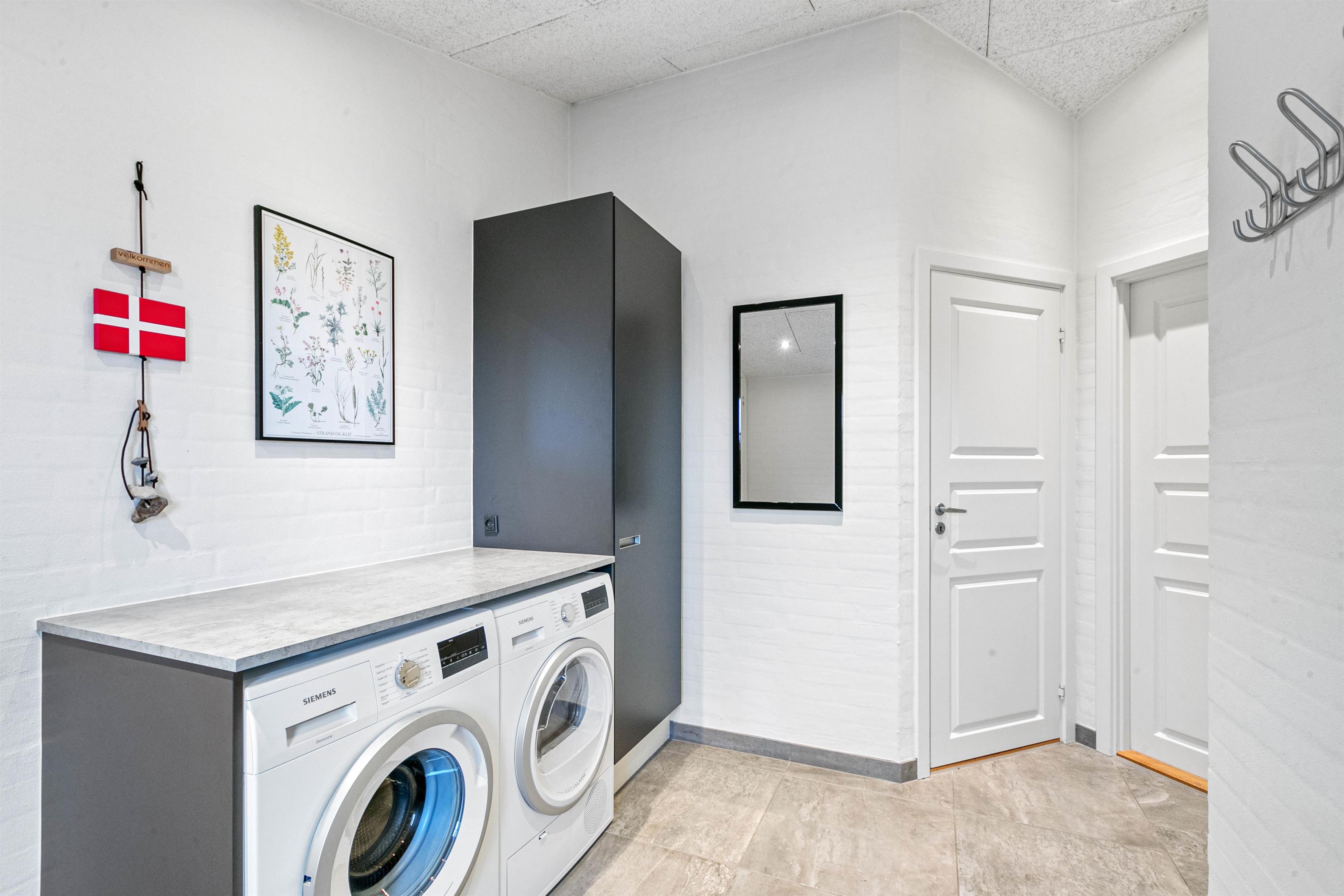 Spisestuen og køkkenet er slået sammen, så hele familien kan følge med og hjælpe til med dagens hjemmelavede middag, og i sofaområdet er der god mulighed for at slappe af med en spændende bog, eller streame en film på Netflix over det lynhurtige internet, som sagtens kan kobles til flere enheder ad gangen.