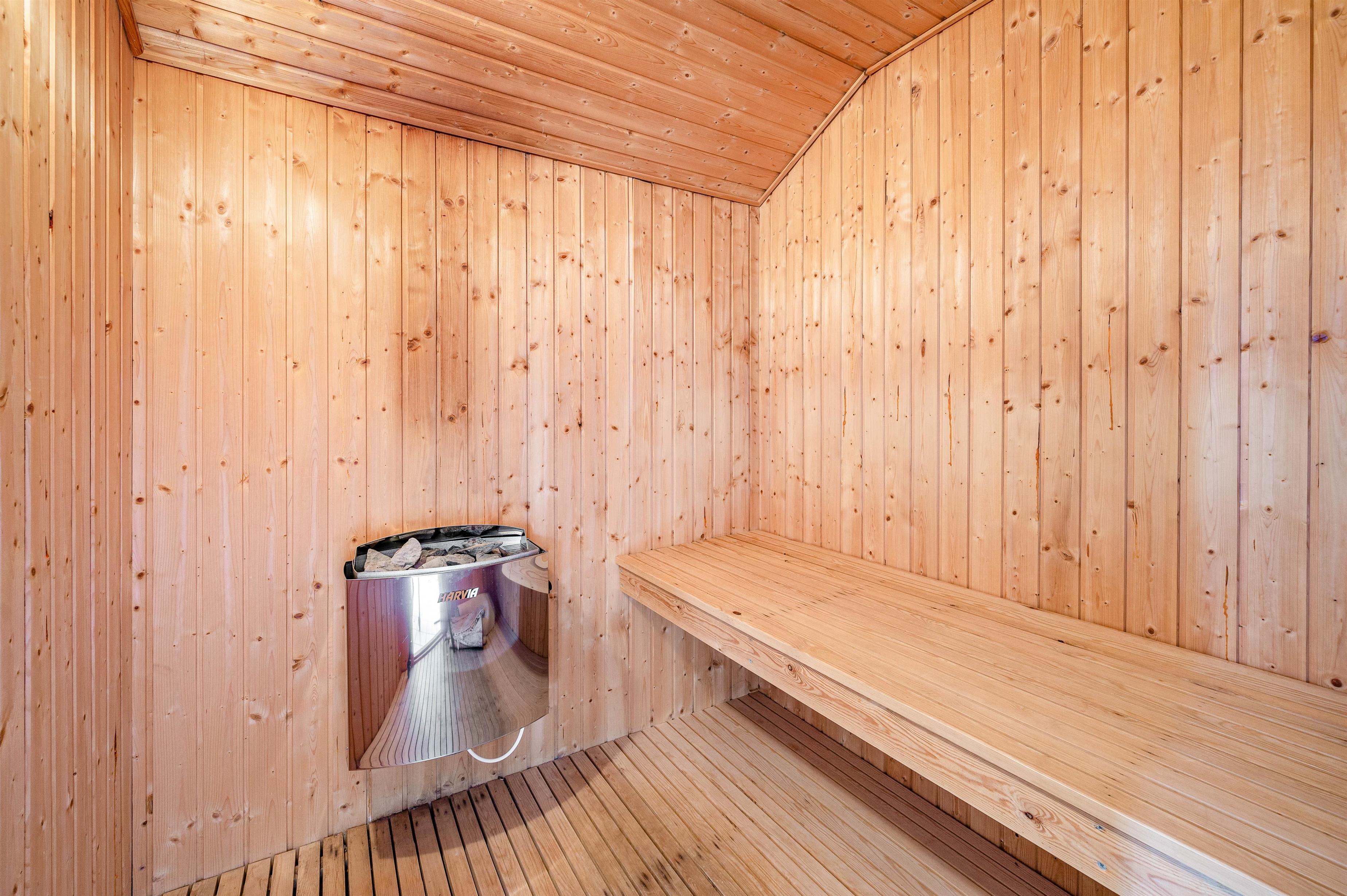 Herudover er der et stort og lækkert badeværelse, hvor I virkelig kan komme til at slappe af. Det er nemlig udstyret med både sauna og et stort spabad, der uden tvivl vil vække begejstring hos alle familiens medlemmer. Dertil kommer endnu et mindre badeværelse med bruseniche og gulvvarme.